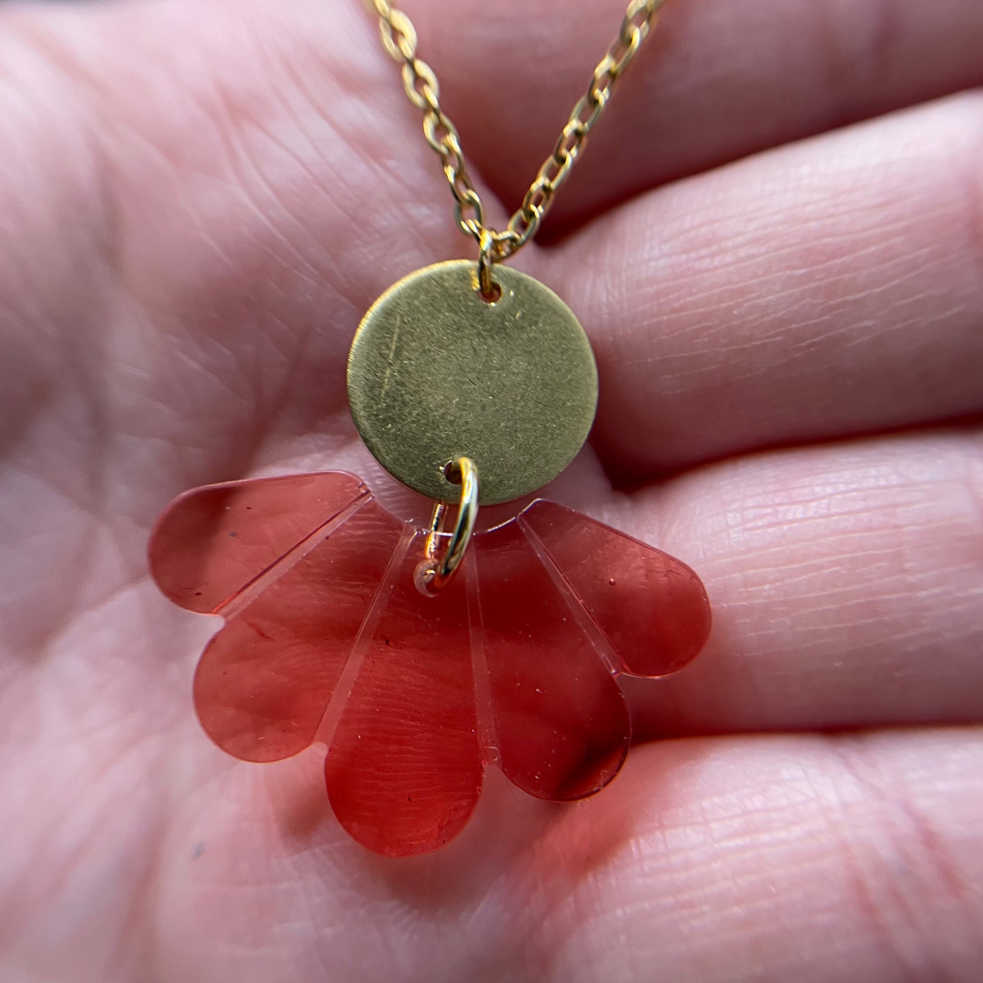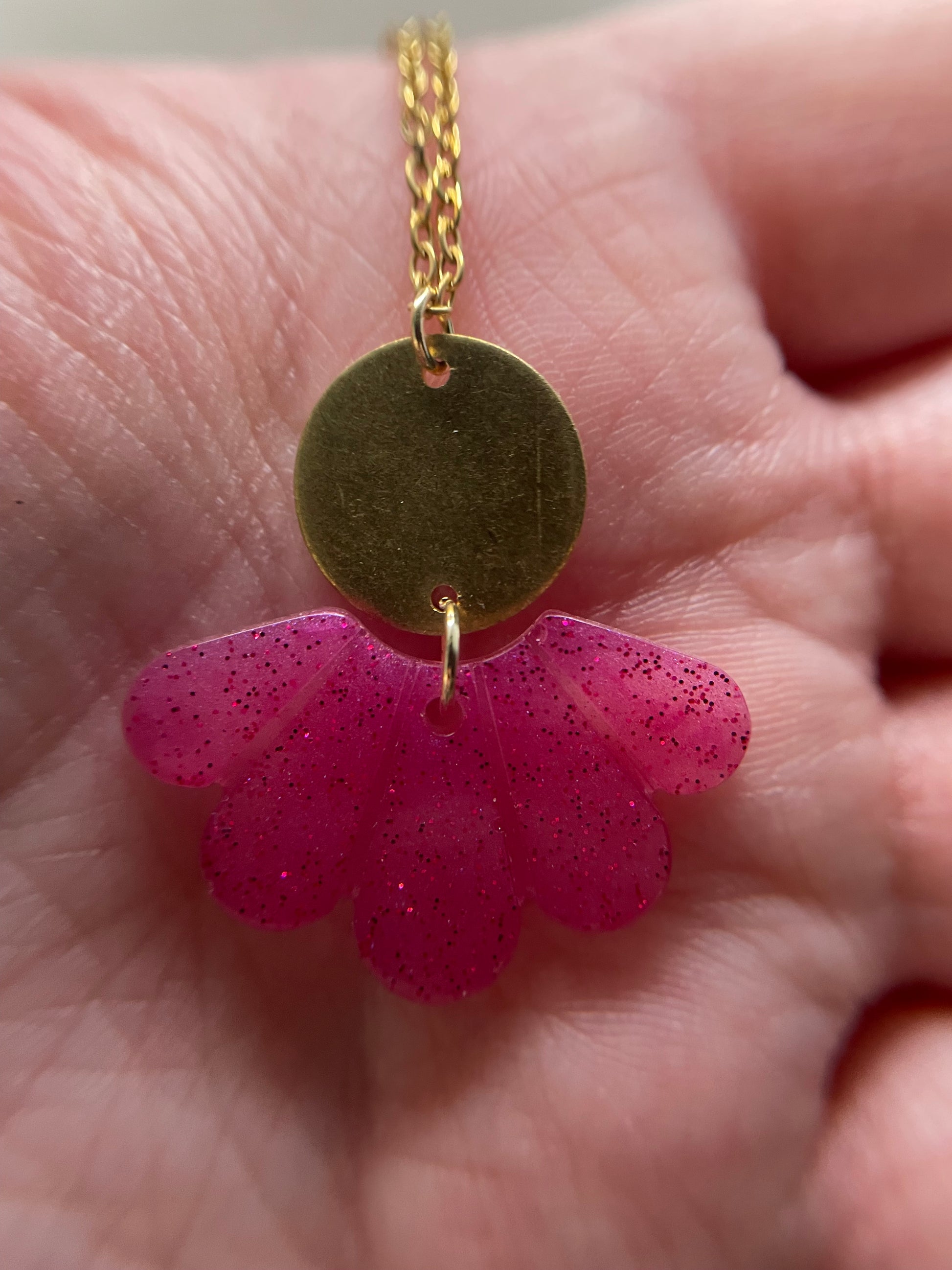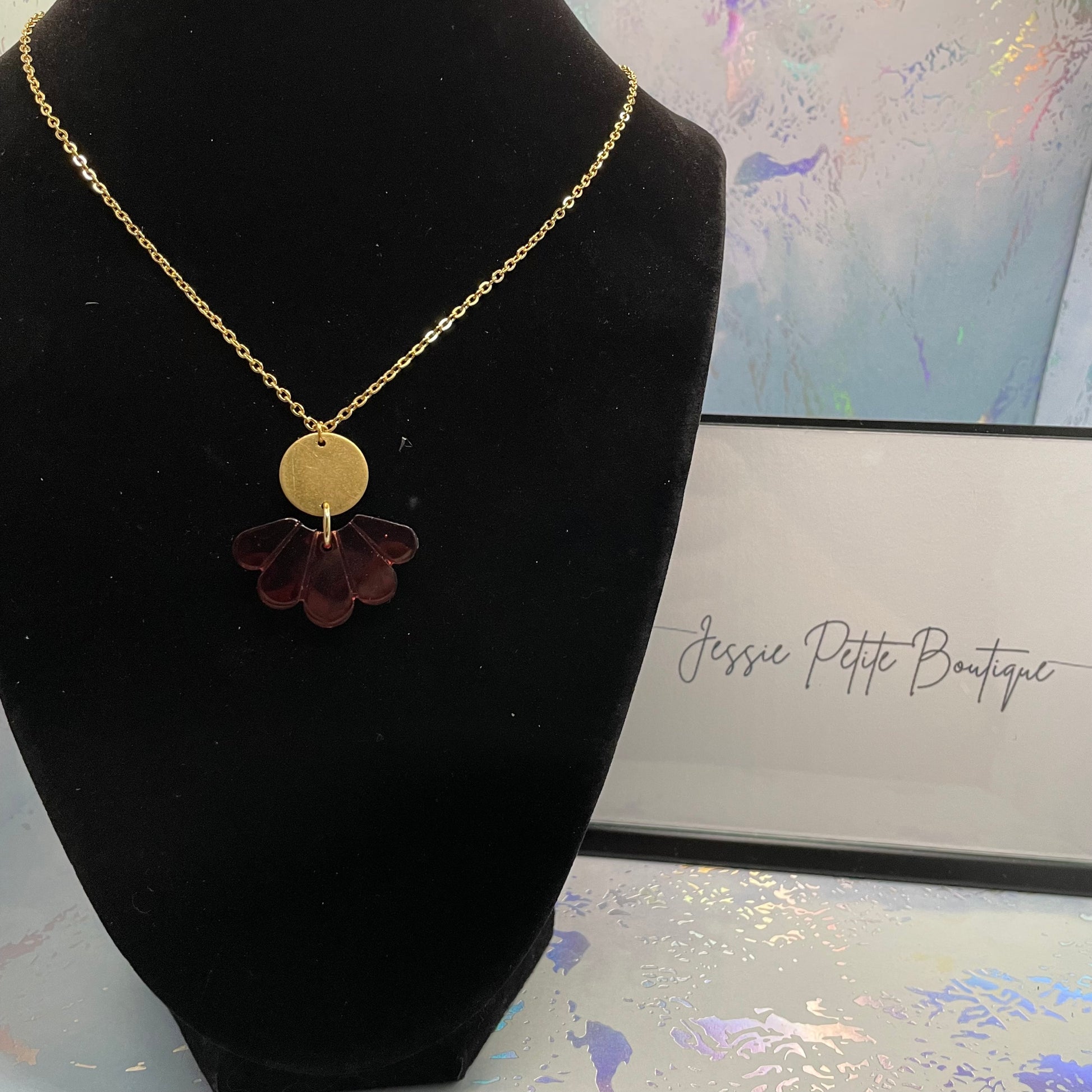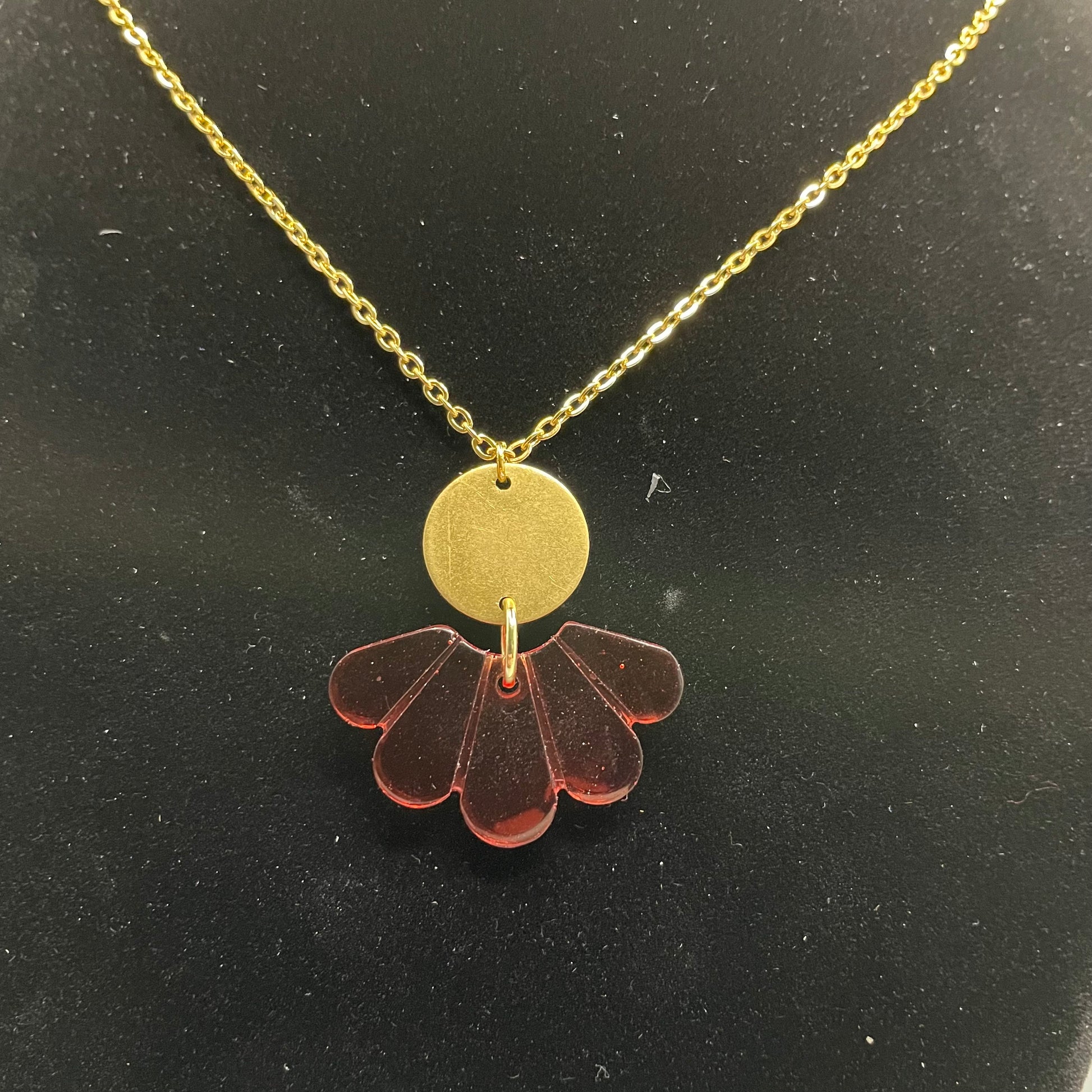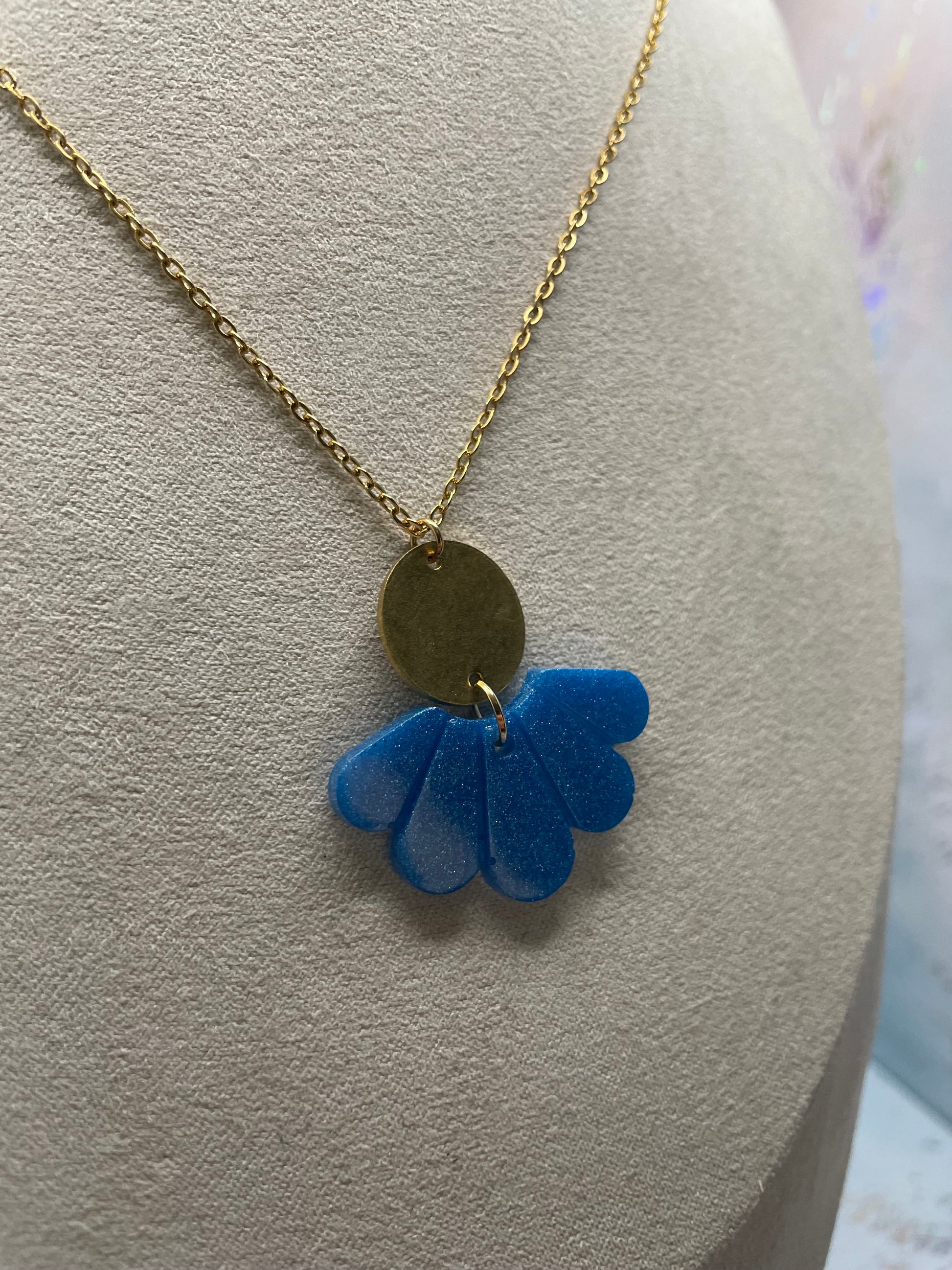 Ce superbe collier arbore un pendentif en résine, rehaussé d'un cercle doré créant un contraste unique et élégant. Le pendentif en résine et le cercle doré apportera une touche raffinée à toutes vos tenues.
