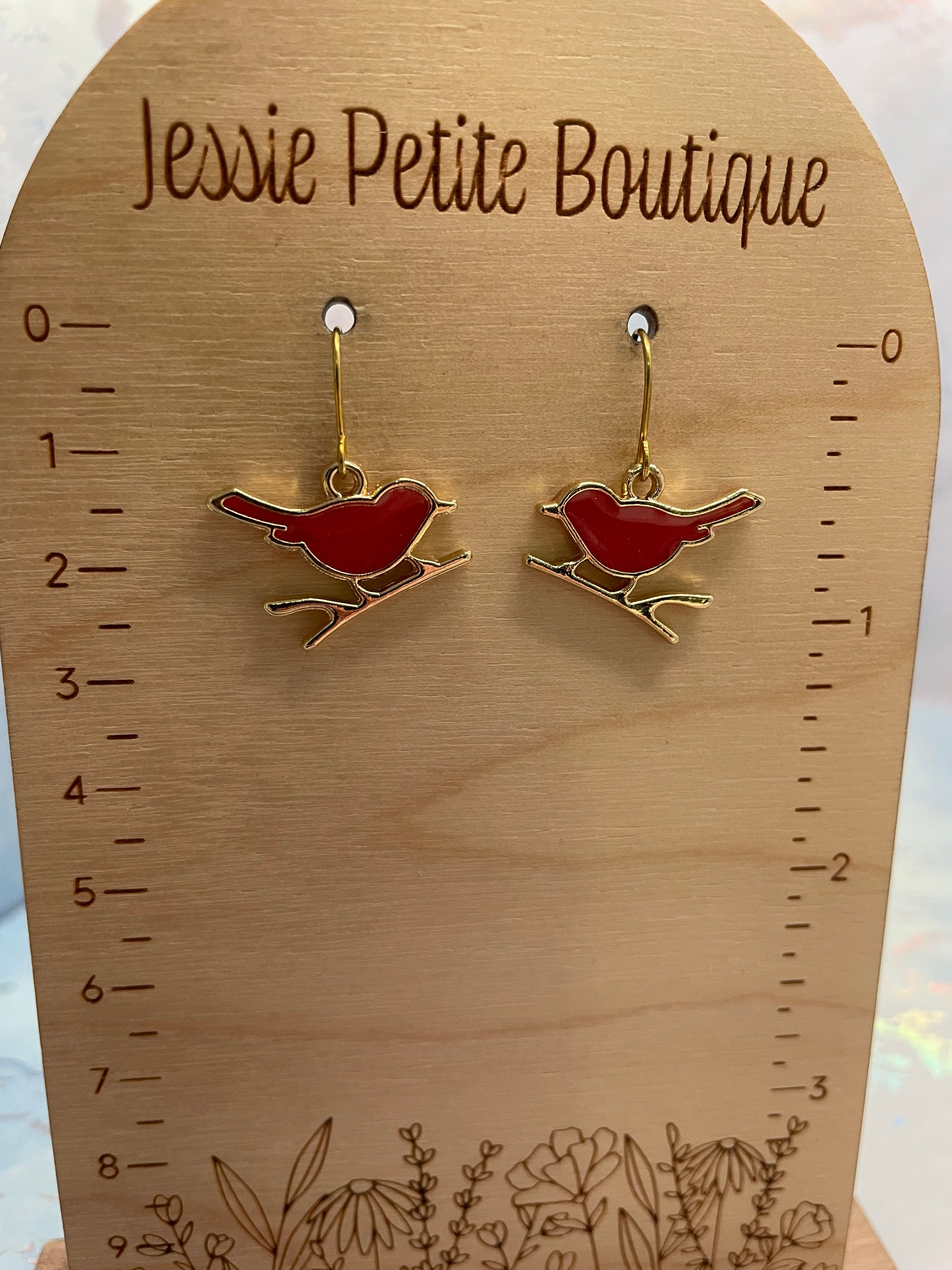 Boucles d’oreilles Oiseau Rouge sur Branche