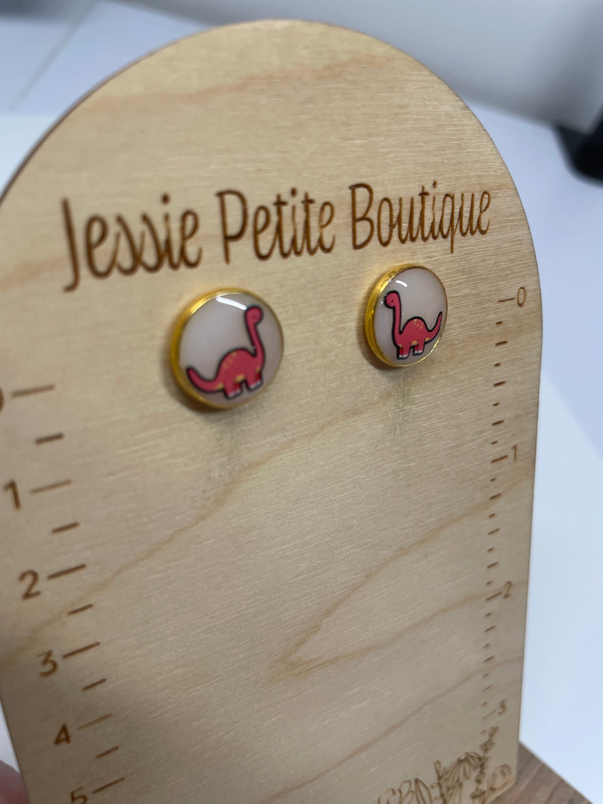 Ajoutez une touche ludique et charmante à votre quotidien avec ces adorables boutons d’oreille en forme de dinosaure. Le motif illustré est mis en valeur sur un fond doux et protégé par une résine brillante offrant une finition lisse et durable. Légers et confortables, ils sont parfaits pour un port quotidien et plairont aux amateurs de dinosaures, petits et grands.