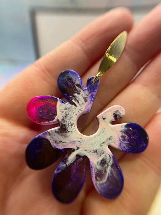 Ajoutez une touche d'élégance et de beauté inspirée de la nature à votre look avec ces magnifiques boucles d'oreilles en forme de fleur style Petri. Les boucles d'oreilles sont réalisées en résine de haute qualité et en encre à l'alcool, créant ainsi une magnifique paire. La forme complexe de la fleur est sublimée par un bouton d'oreille en laiton plaqué or 18 carats, apportant une touche luxueuse et sophistiquée. Sans nickel, ces boucles d'oreilles confortables sont dotées d'un fermoir papillon sécurisé.