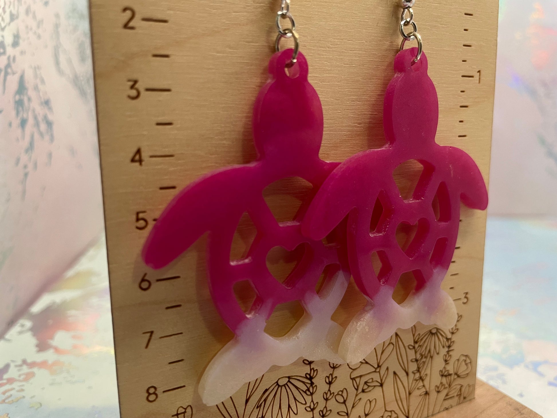 Boucles d’oreilles tortue en résine avec cœur ajouré-Sans Nickel