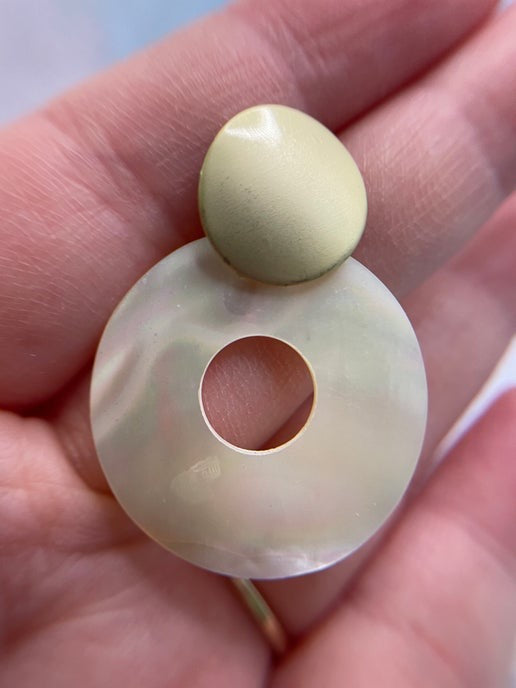 - Détail du bouton d'oreille en laiton : Le bouton en laiton apporte un contraste métallique chaleureux au coquillage doux et léger pour un look élégant.