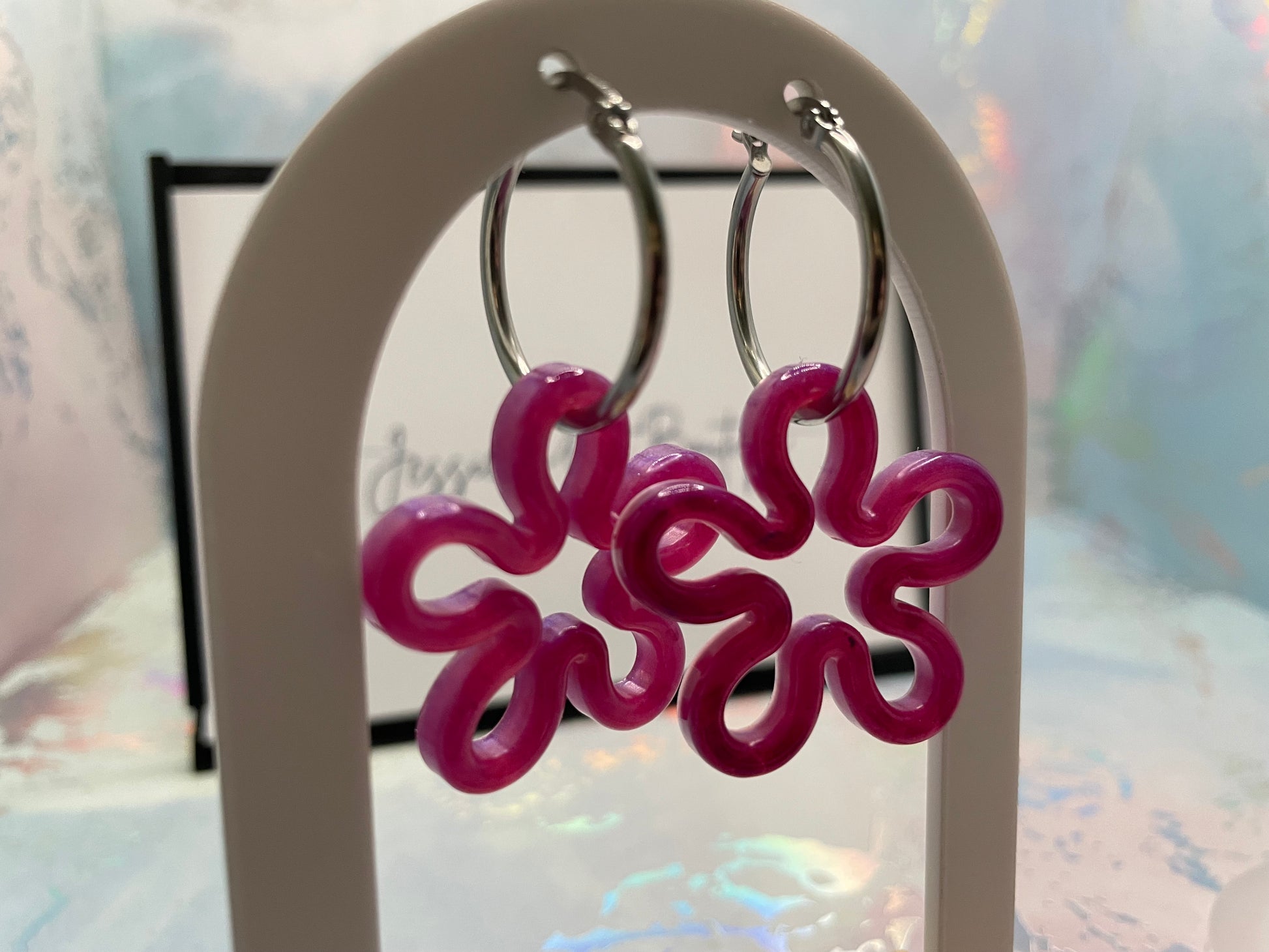Audacieuses et élégantes, ces boucles d’oreilles présentent une fleur sculptée à la finition mauve brillante. Les courbes fluides et l’éclat subtil de la poudre de mica apportent profondeur et caractère à ce modèle, tout en conservant une allure soignée.