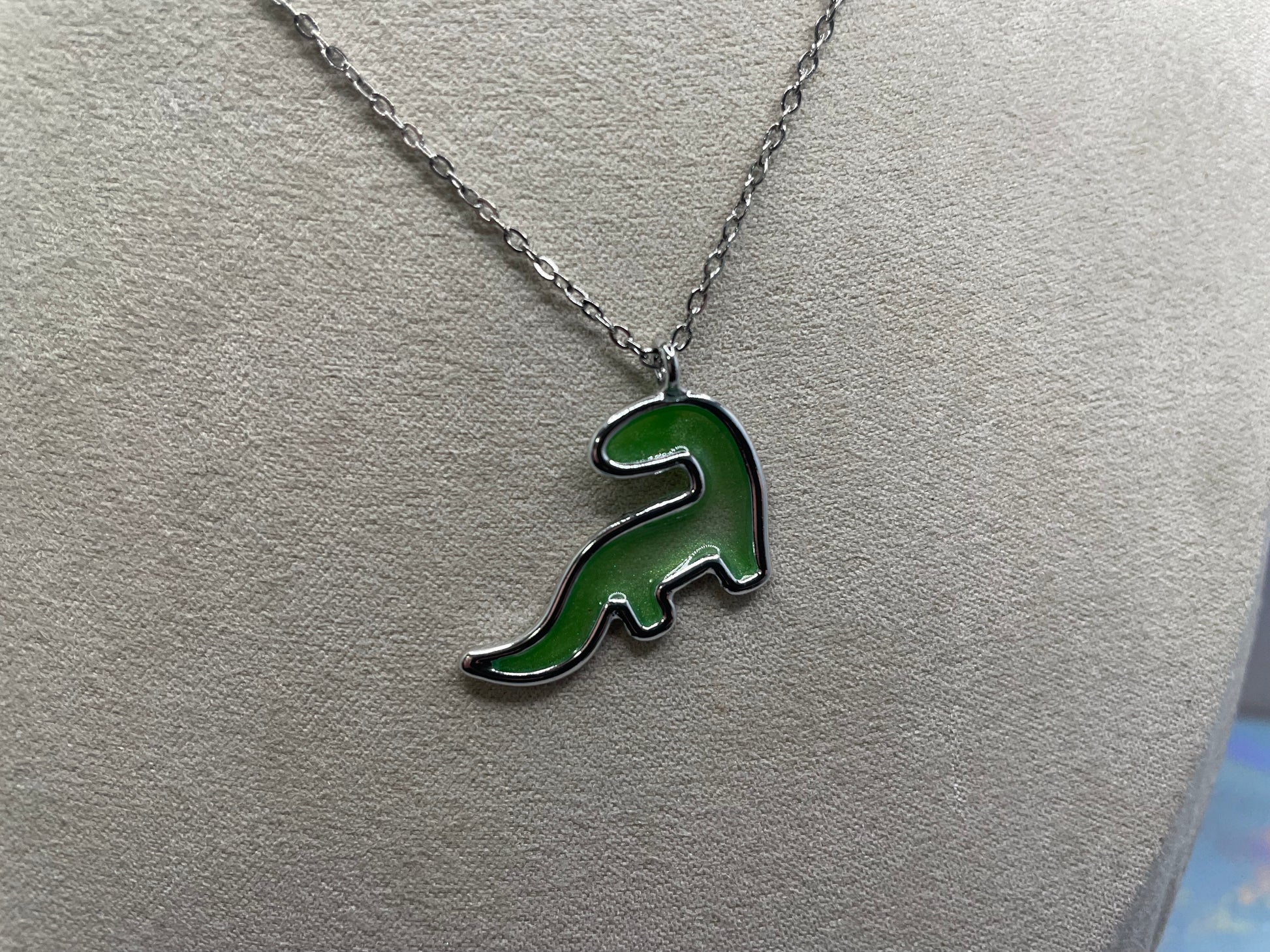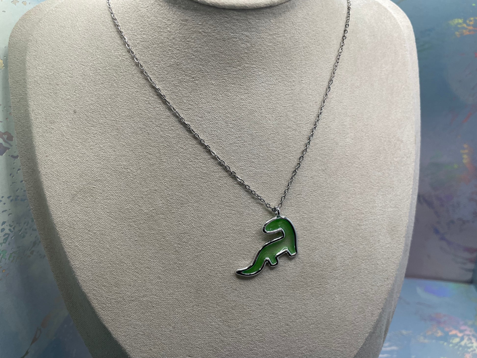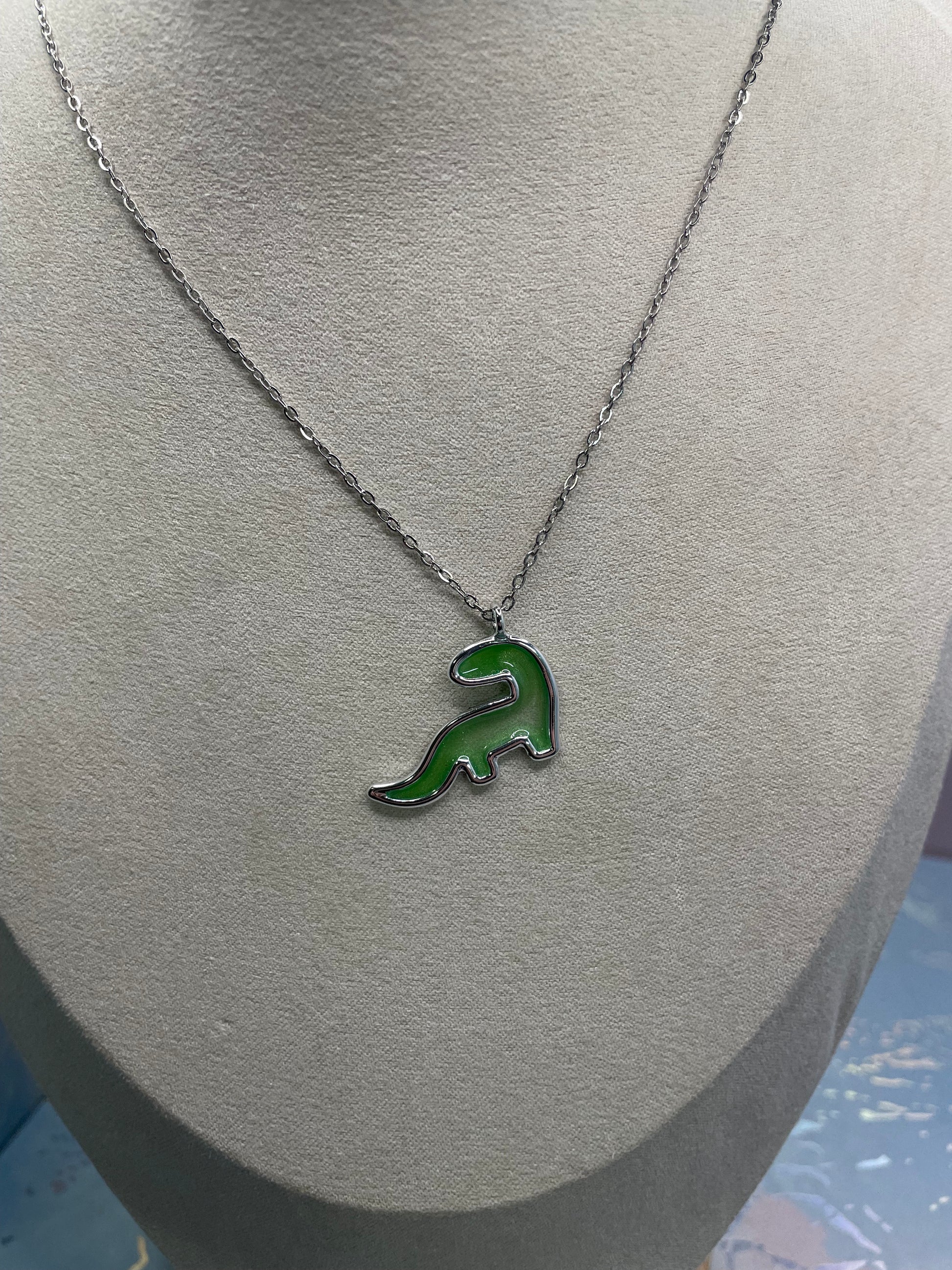 Collier dinosaure vert argenté |20'' Sans Nickel+Acier Inoxydable