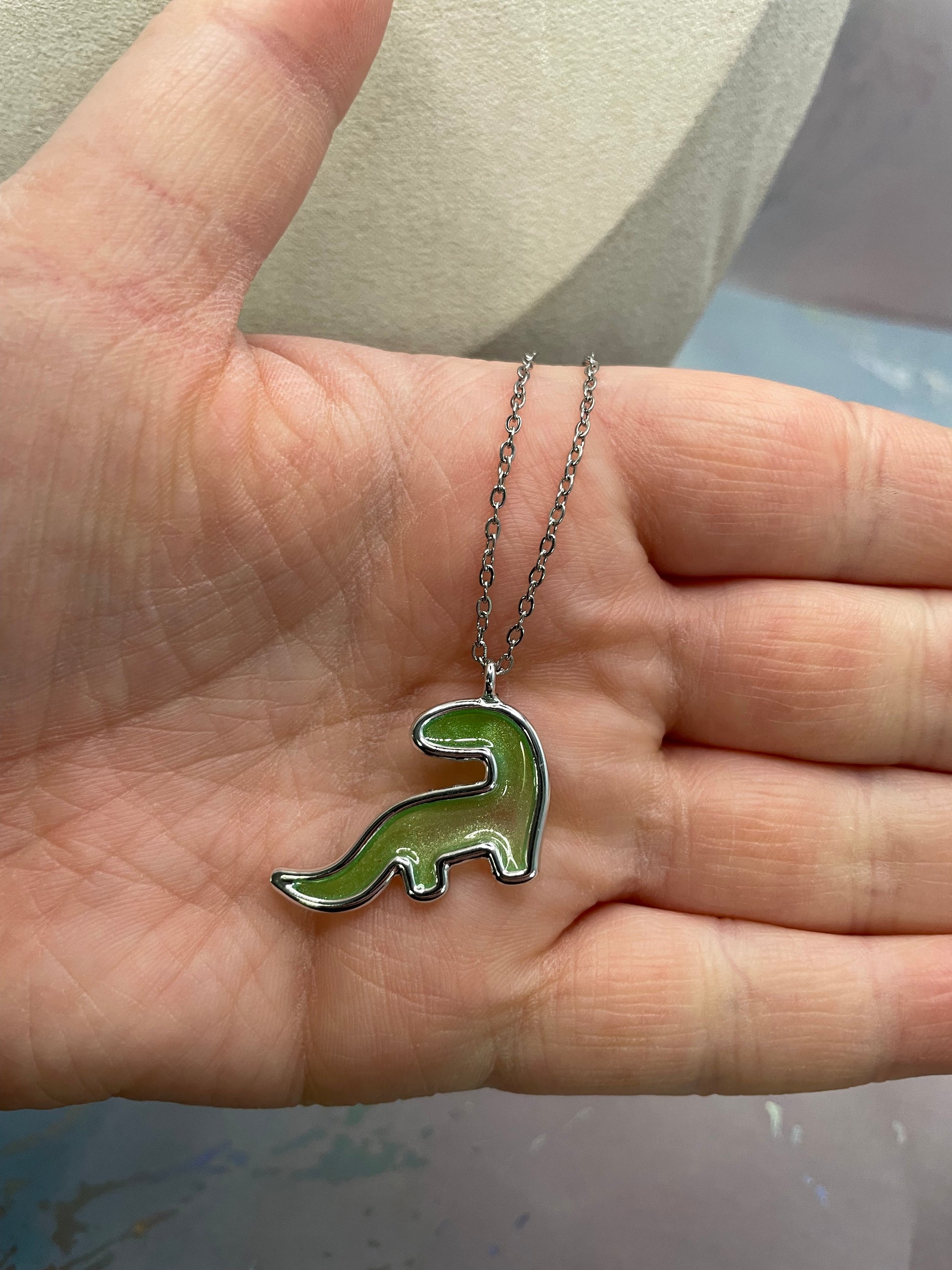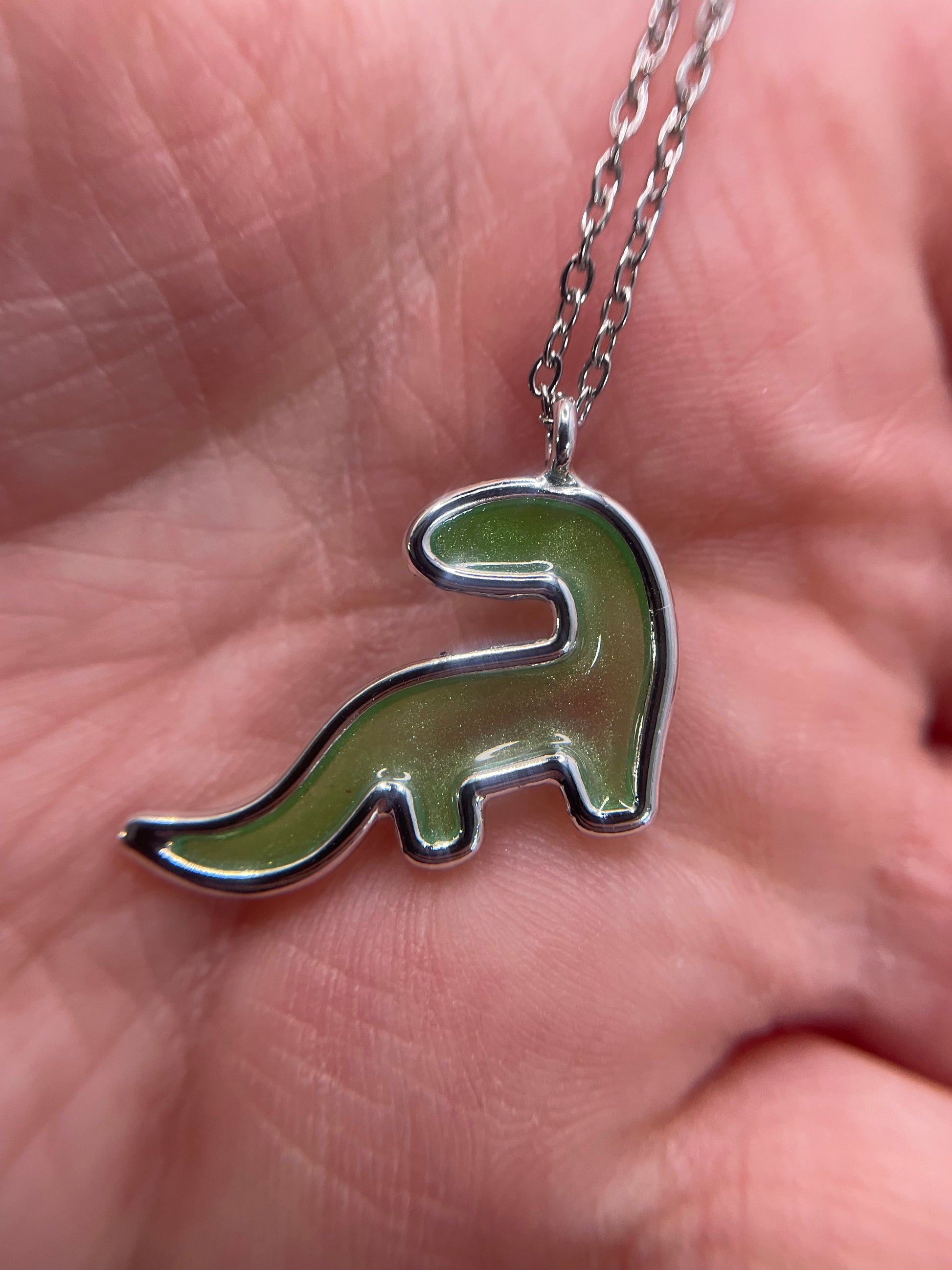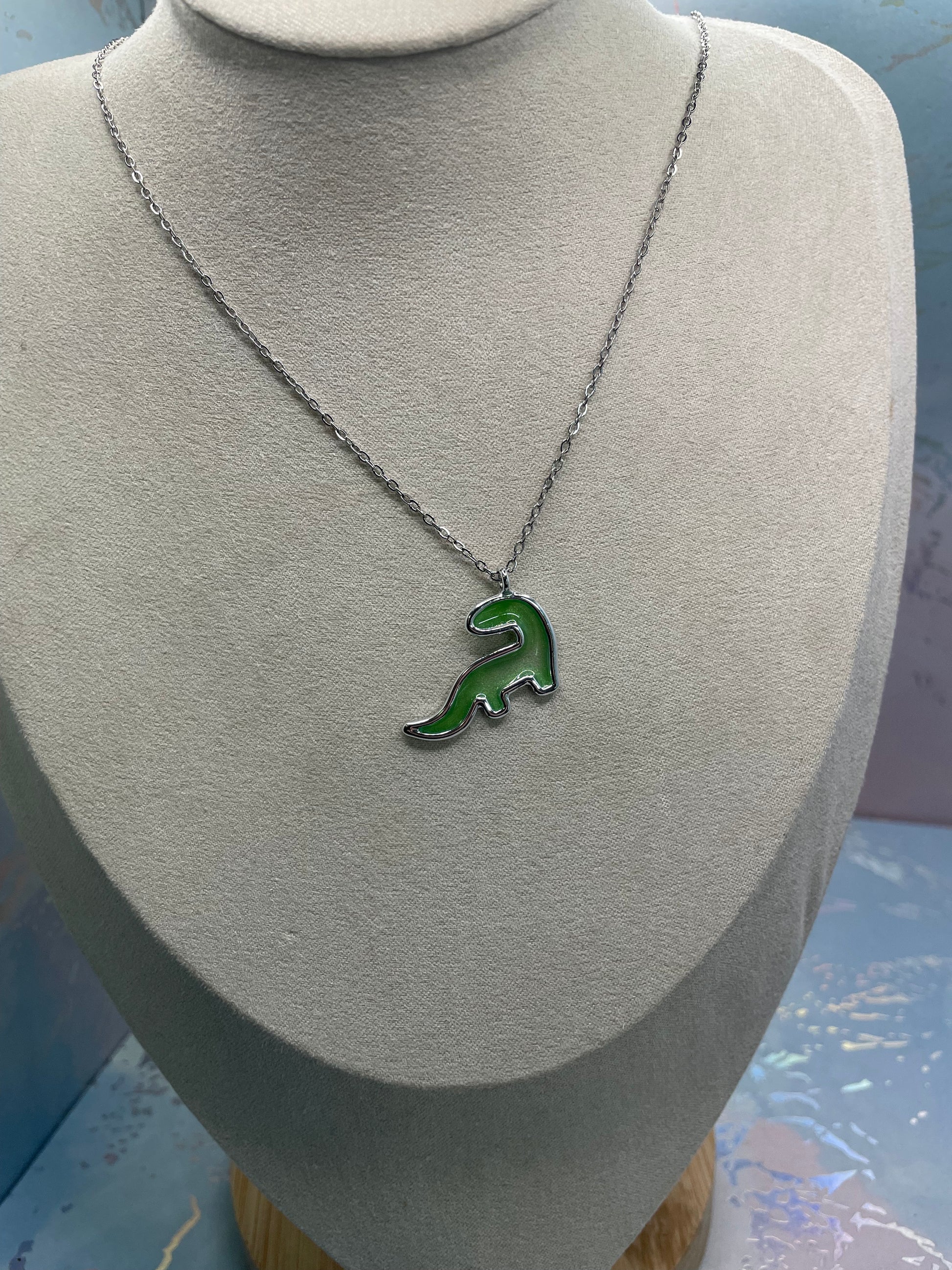 Collier dinosaure vert argenté |20'' Sans Nickel+Acier Inoxydable