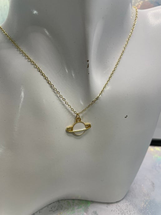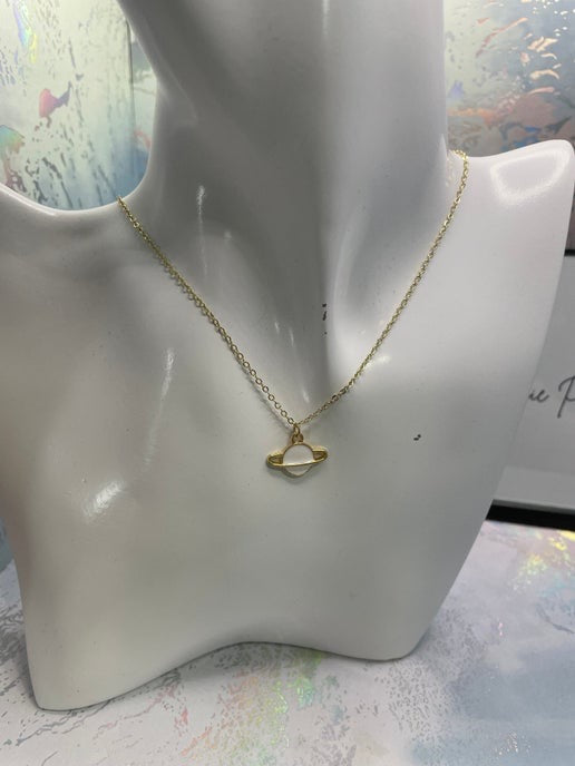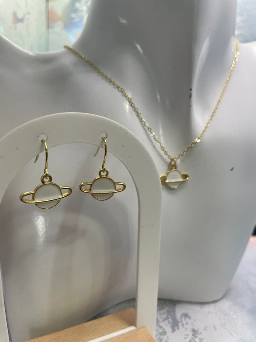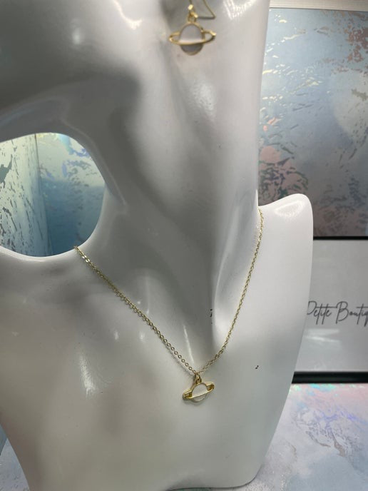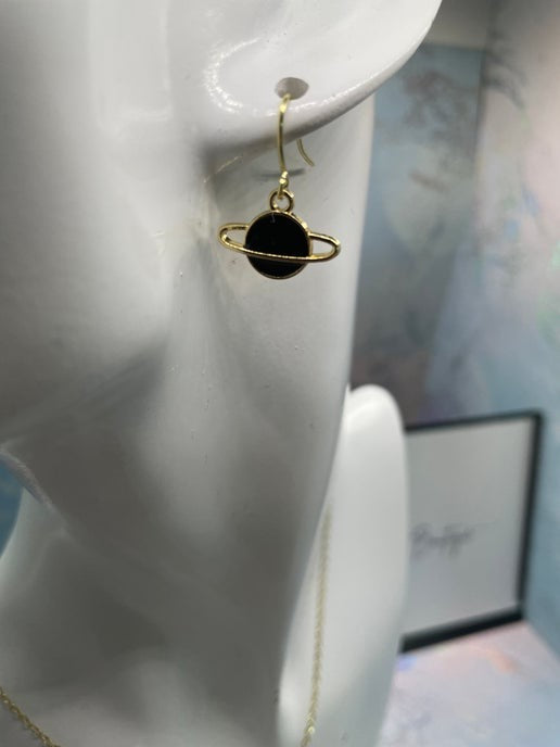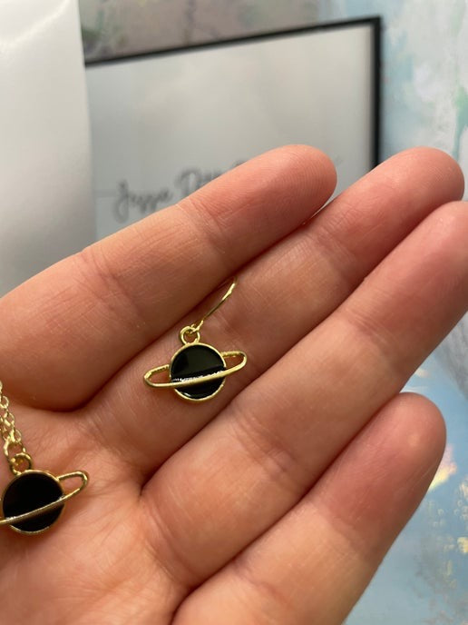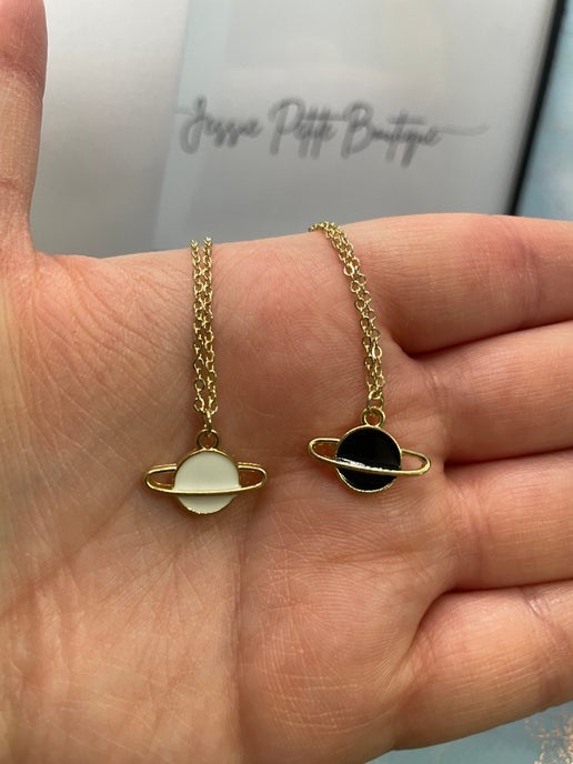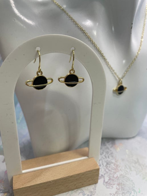 Cet ensemble de petite planète avec anneau dorée offre un design élégant d'inspiration cosmique, avec un pendentif d'une planète en émail noir ou blanc. L'anneau plaqué or apporte une touche élégance et modernité, idéale pour les passionnés d'espace et les créateurs de tendances.