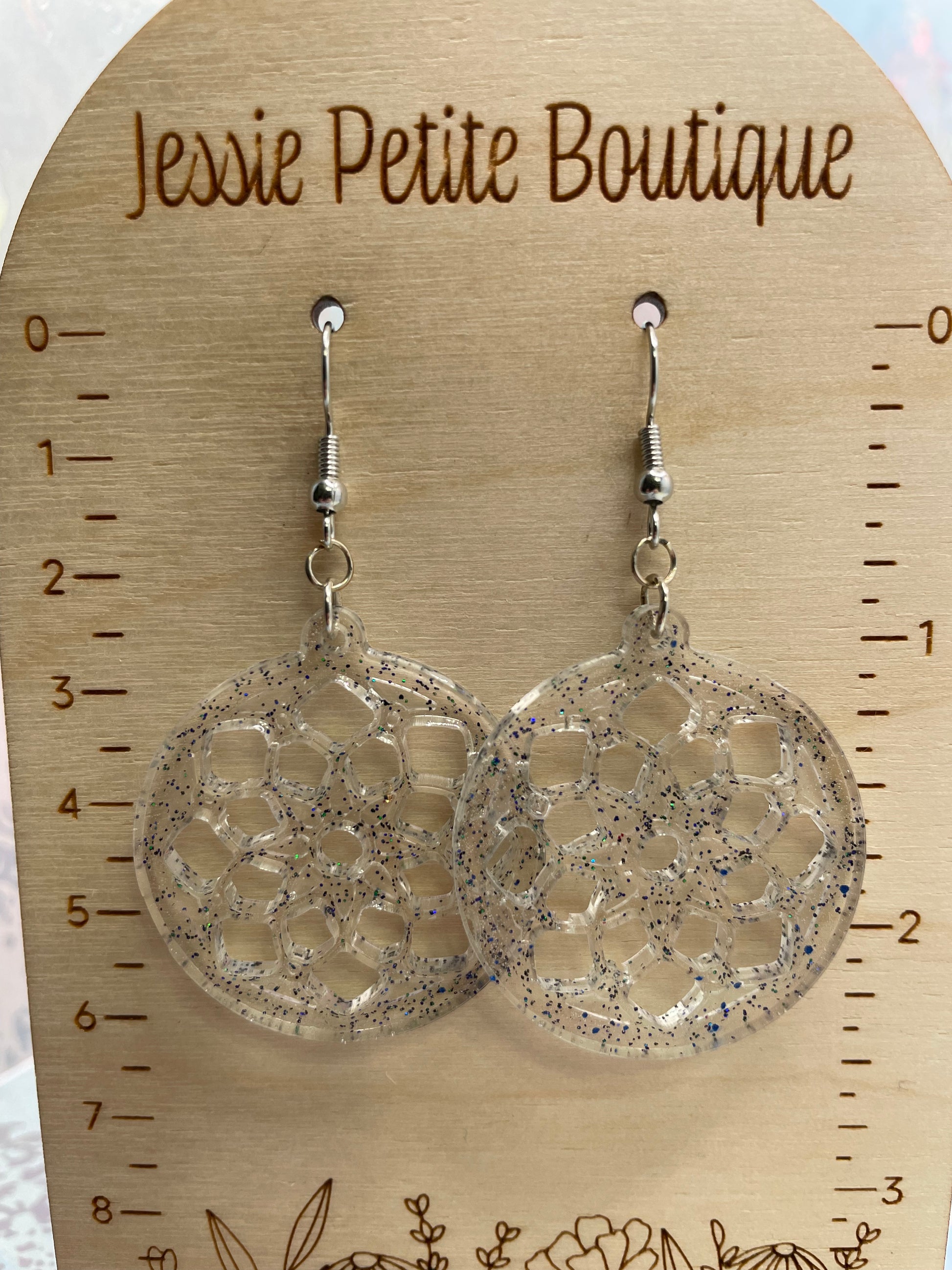 Apportez une touche de beauté raffinée à votre look avec ces boucles d'oreilles Mandala Scintillantes. Ornées d'un motif mandala envoûtant en résine transparente scintillante, ces boucles d'oreilles scintillent délicatement à chaque mouvement. Leur forme ronde leur confère une élégance intemporelle, tandis que leur légèreté assure un confort optimal tout au long de la journée. Elles apporteront une touche de sophistication et d'éclat à vos tenues décontractées comme habillées.