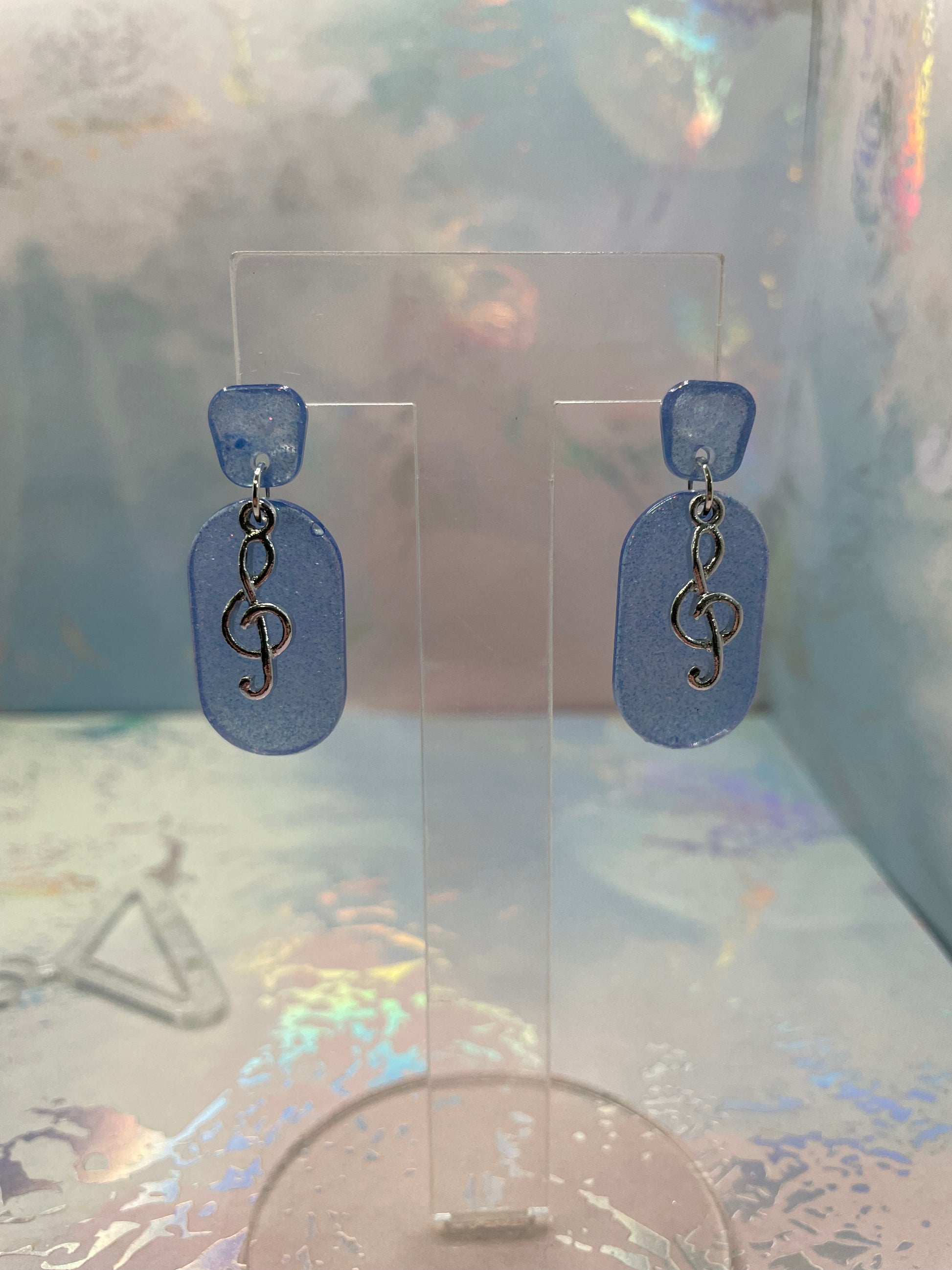 Boucle d'oreille ovale scintillante + clé de sol-Plastique/hypoallergénique