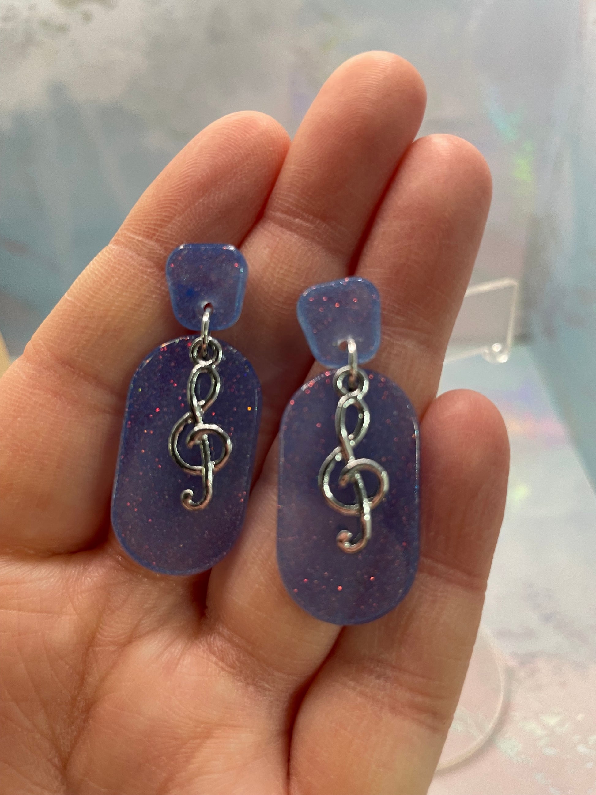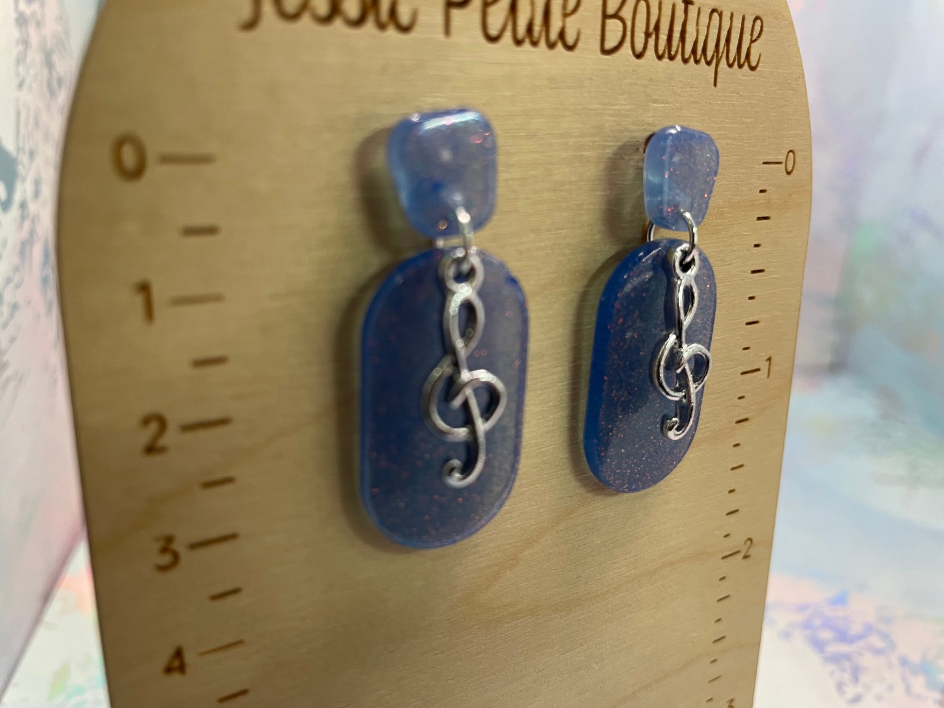 Ajoutez une note musicale à votre style avec ces boucles d'oreilles ovales scintillantes ornées d'une breloque clé de sol . Leurs paillettes bleu vif et violet se marient à merveille, conférant à ces boucles un charme chatoyant et accrocheur. La breloque clé de sol ludique ajoute une touche de mélodie et de personnalité à votre look, tandis que les embouts en plastique hypoallergénique garantissent un confort optimal tout au long de la journée.