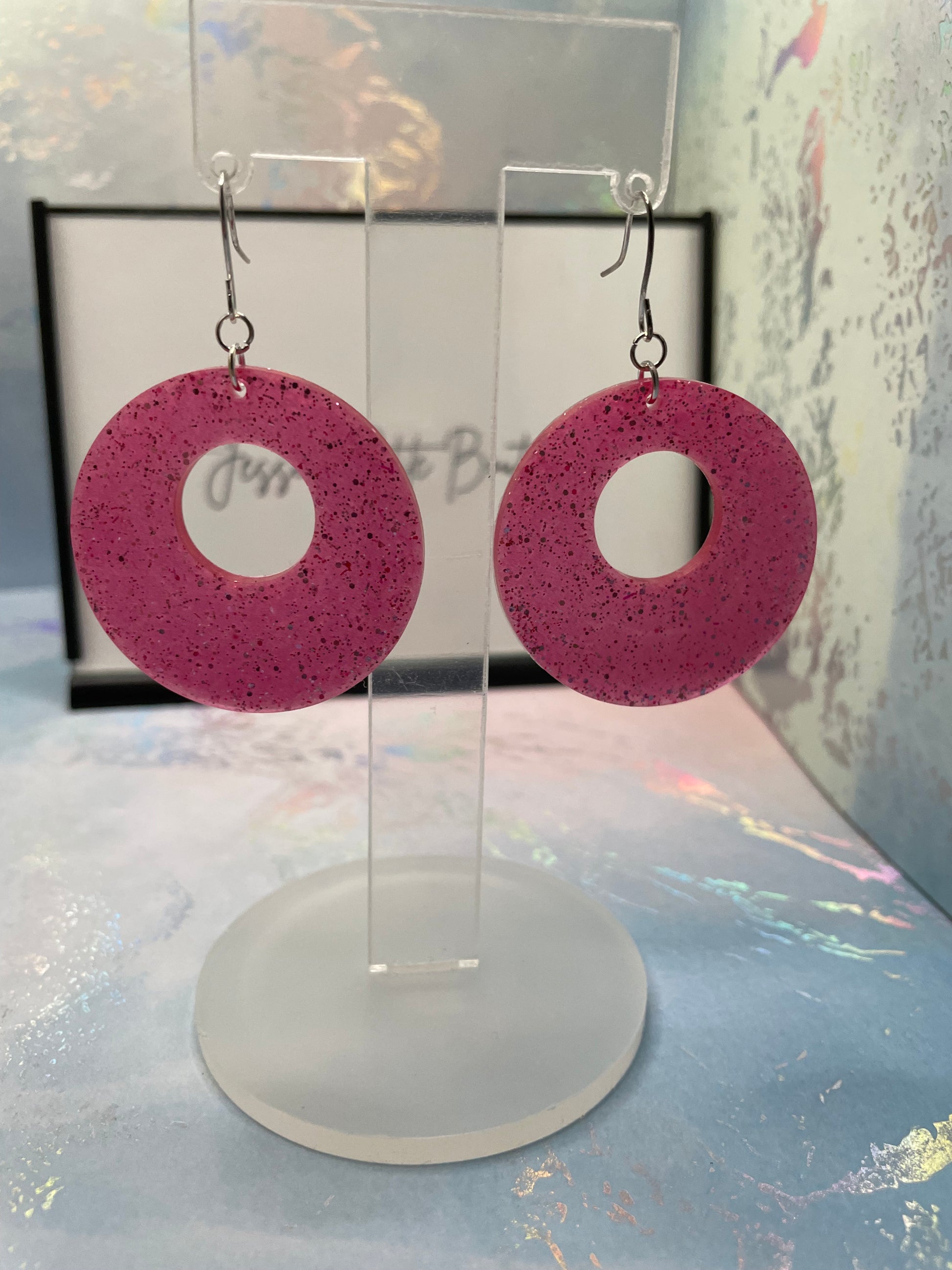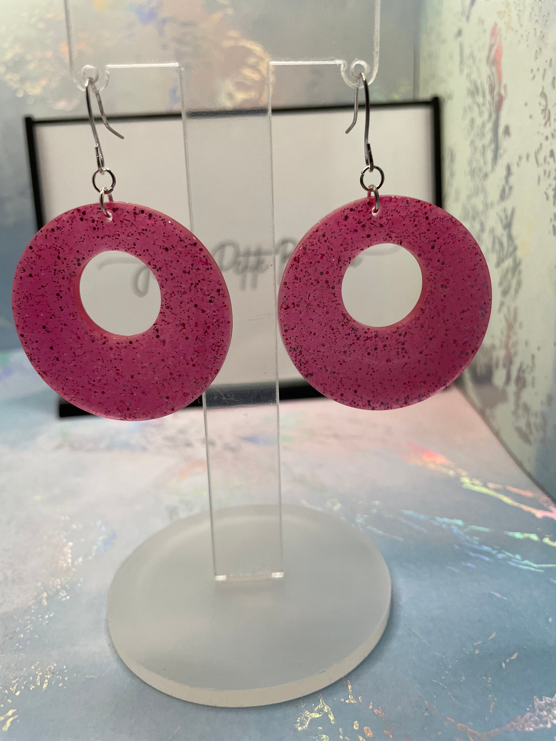 Ajoutez une touche de glamour à votre tenue avec nos boucles d'oreilles rondes roses scintillantes. Ces boucles d'oreilles éblouissantes arborent une teinte rose vibrante infusée de paillettes scintillantes et de poudre de mica, créant un effet scintillant qui capture magnifiquement la lumière.
