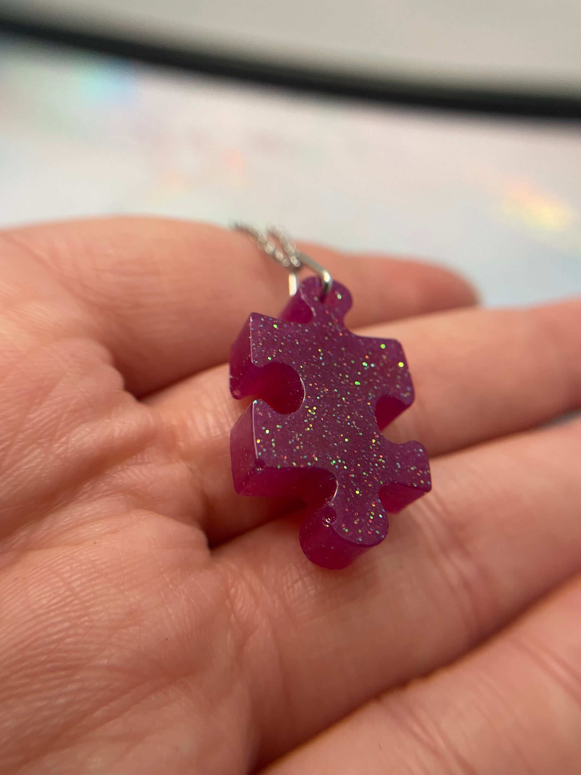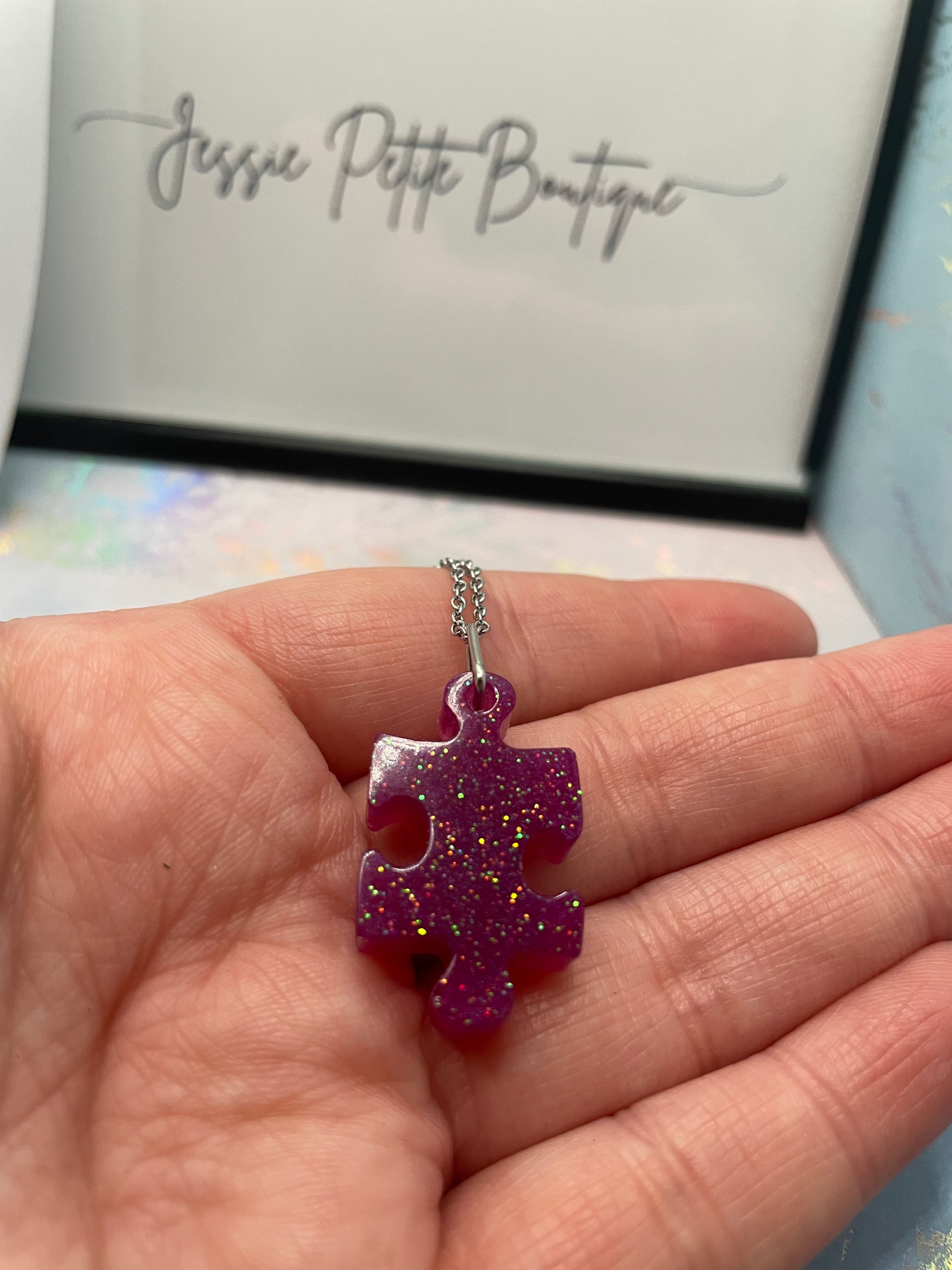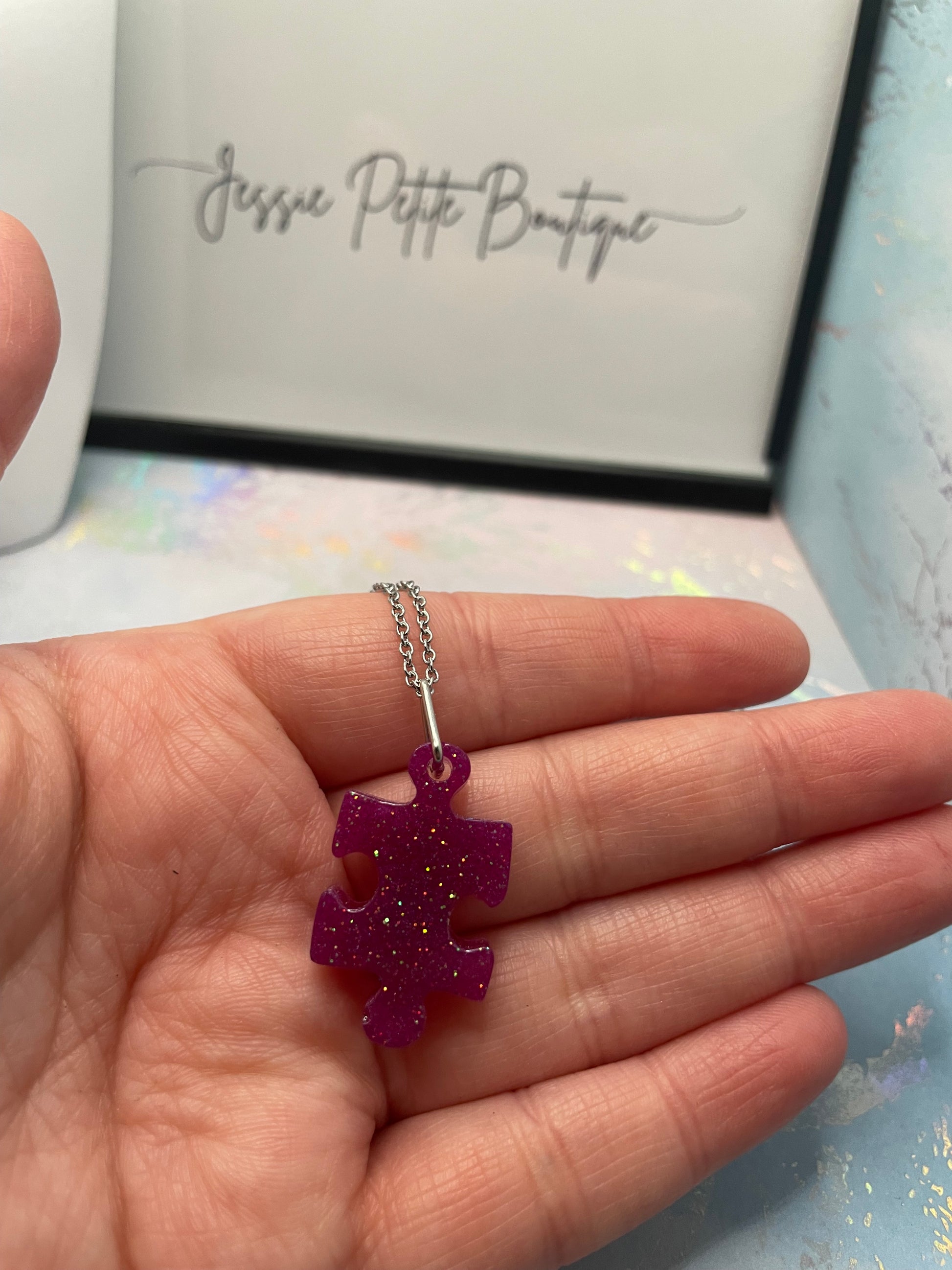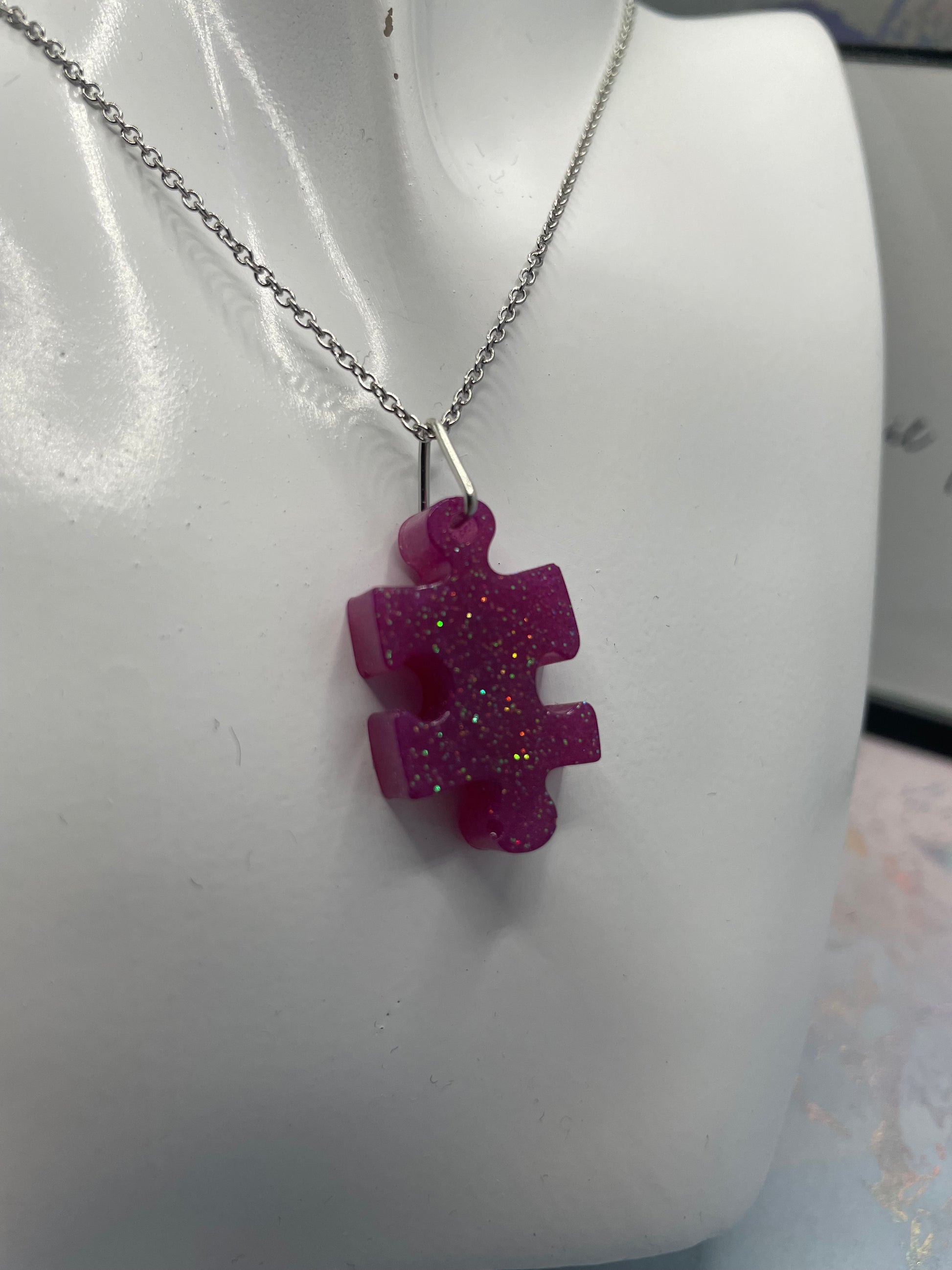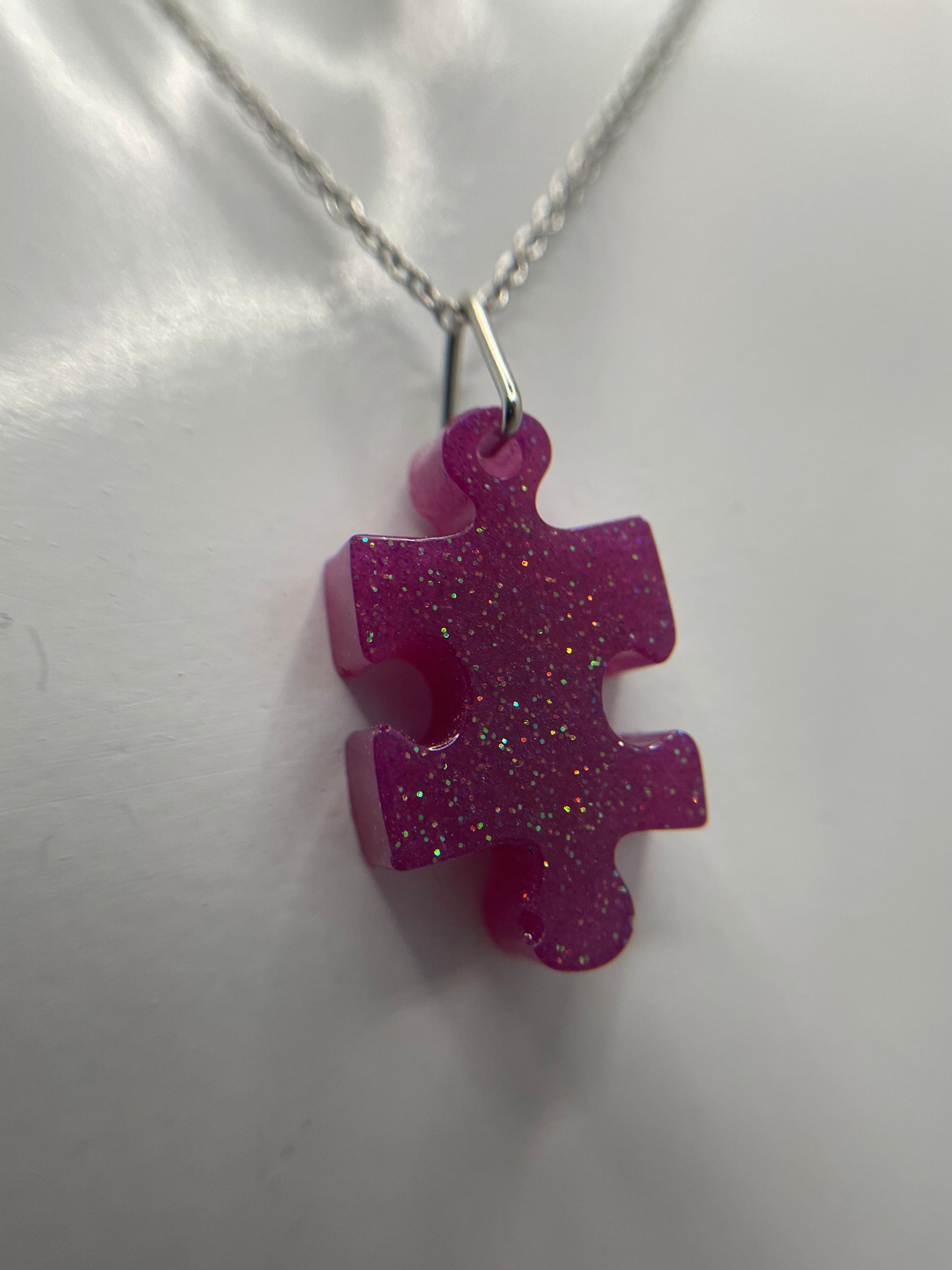 Ajoutez une touche d'originalité et élégante à votre collection de bijoux avec ce collier casse tête scintillant . Avec ses teintes mauve vibrantes et son design unique, ce collier est parfait pour celles qui apprécient les accessoires amusants et significatifs.