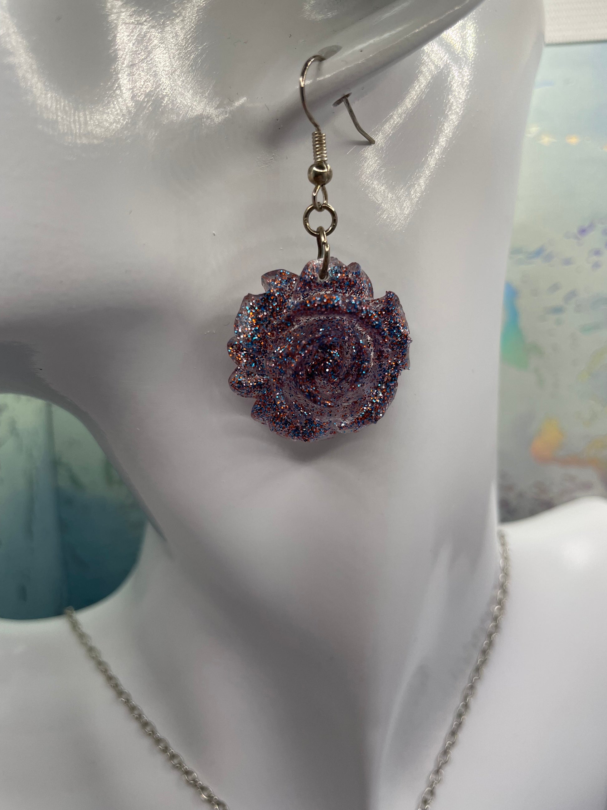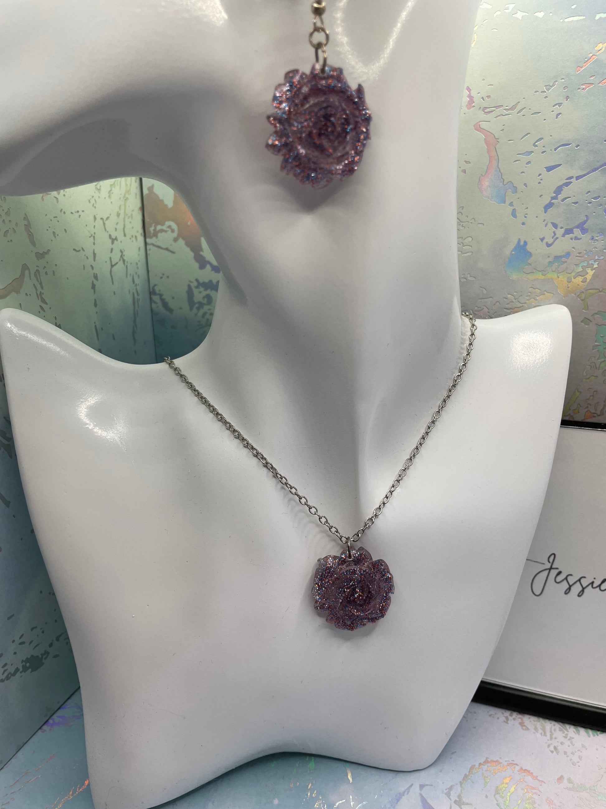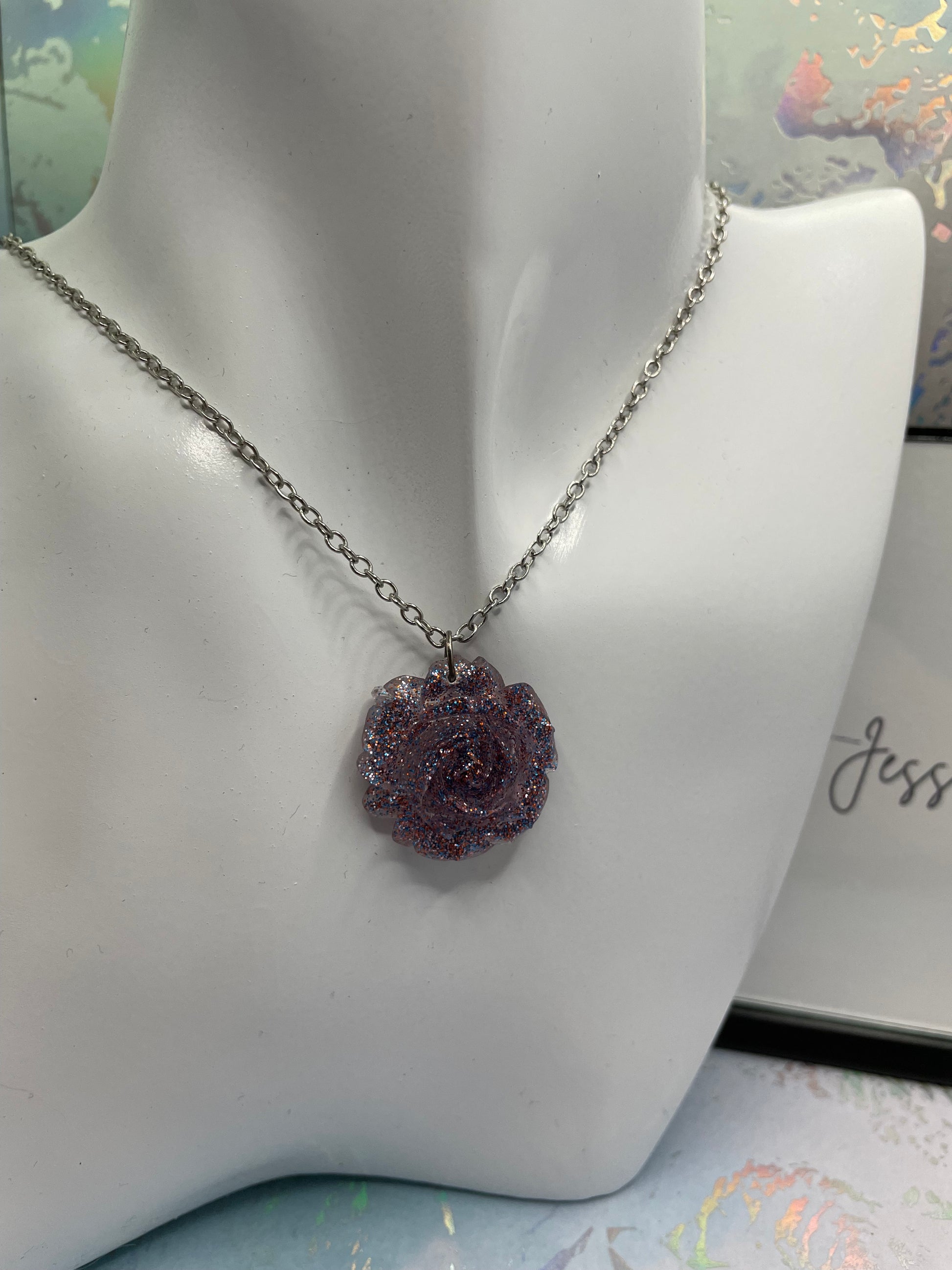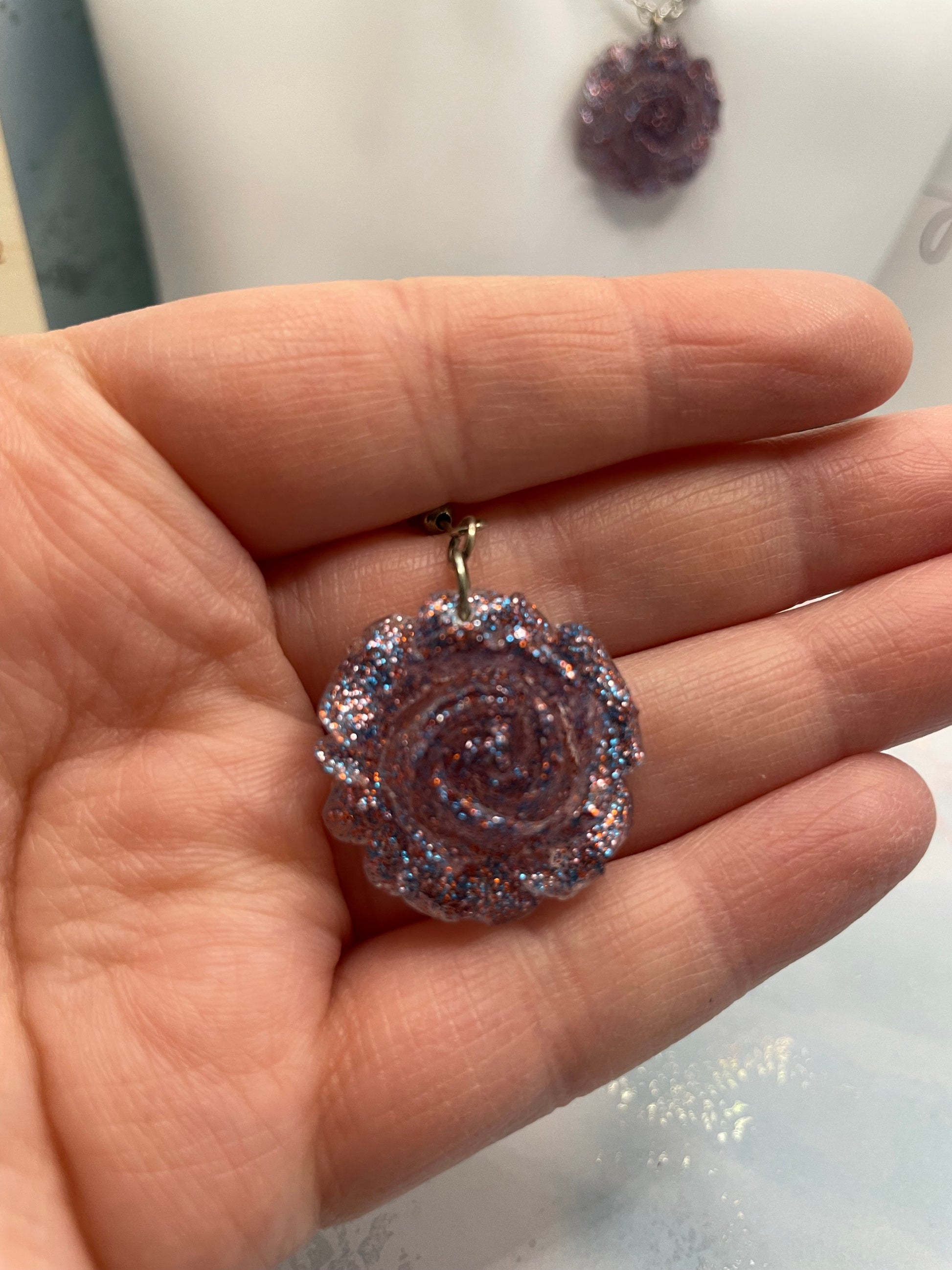 Matière : Résine, paillettes, chaîne en argent