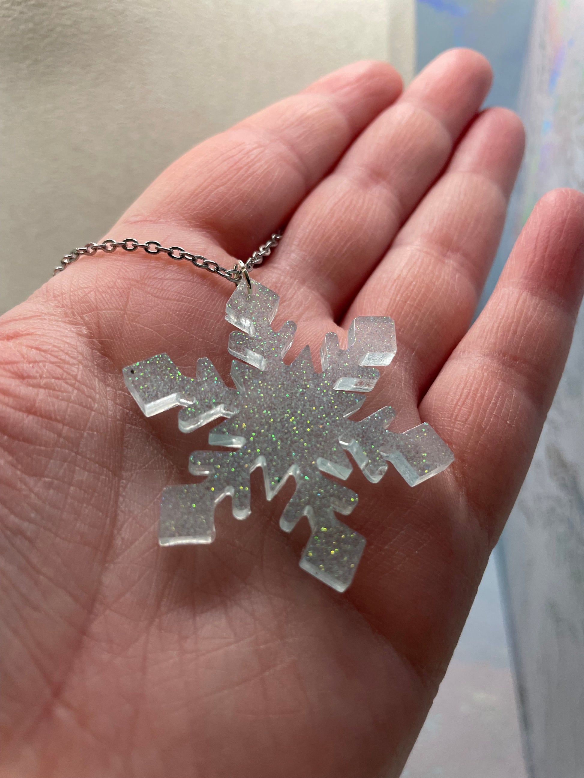 Fabriqué à la main avec soin, ce collier est léger et agréable à porter. Il est complété par une chaîne en acier inoxydable et un fermoir mousqueton pour une utilisation facile au quotidien. Chaque création étant faite à la main, chaque flocon est unique.