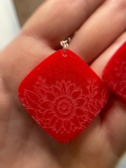 Laissez-vous séduire par le charme de la nature avec ces superbes boucles d'oreilles carrées avec tournesol , disponibles en noir ou en rouge vif . Ornées d'un magnifique motif de tournesol, ces boucles d'oreilles allient l'élégance de la résine, la forme carrée ajoute une touche artisanal et rustique.