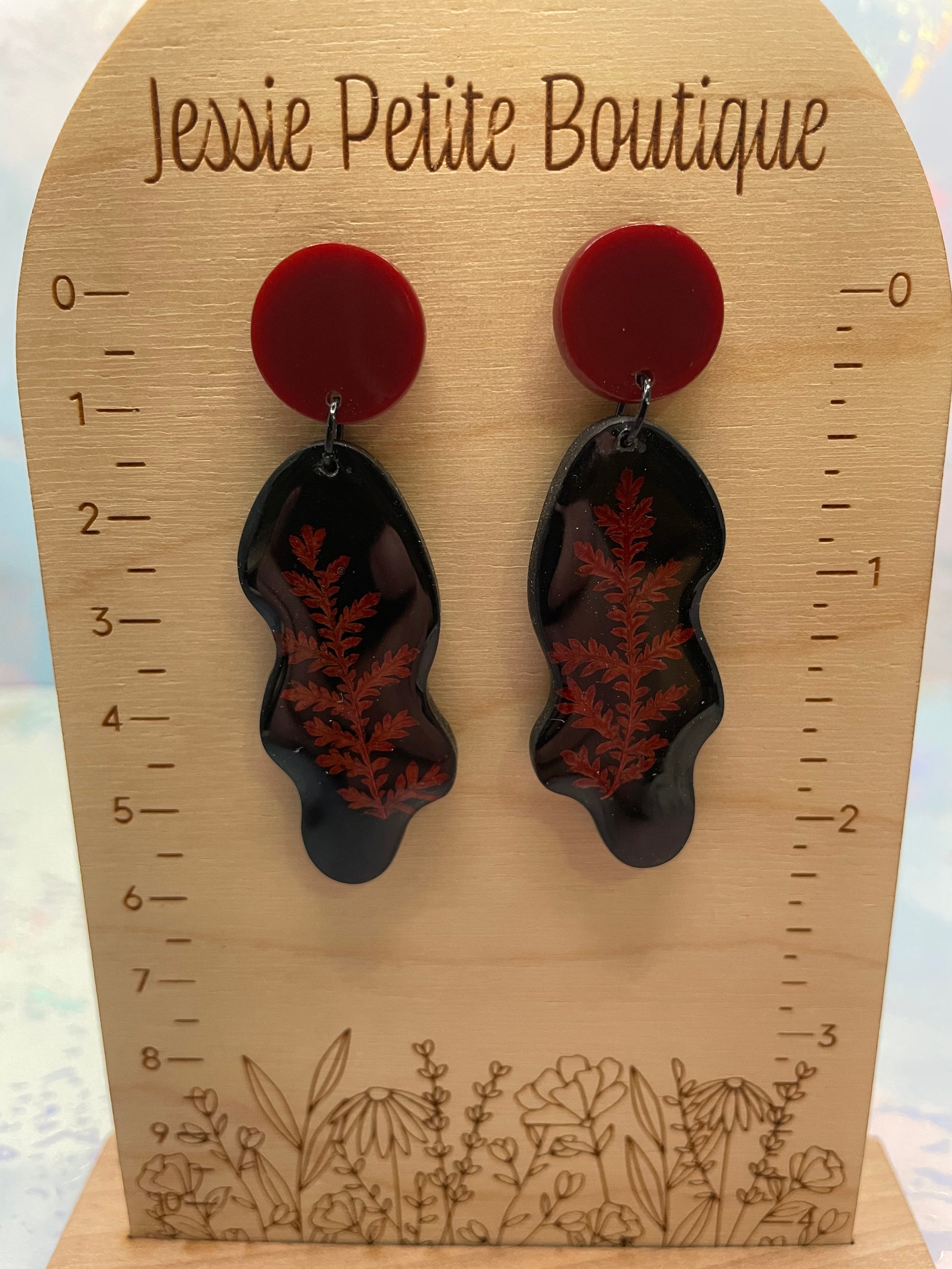 Stacey – Boucles d’oreilles botaniques noir et rouge-Sans Nickel