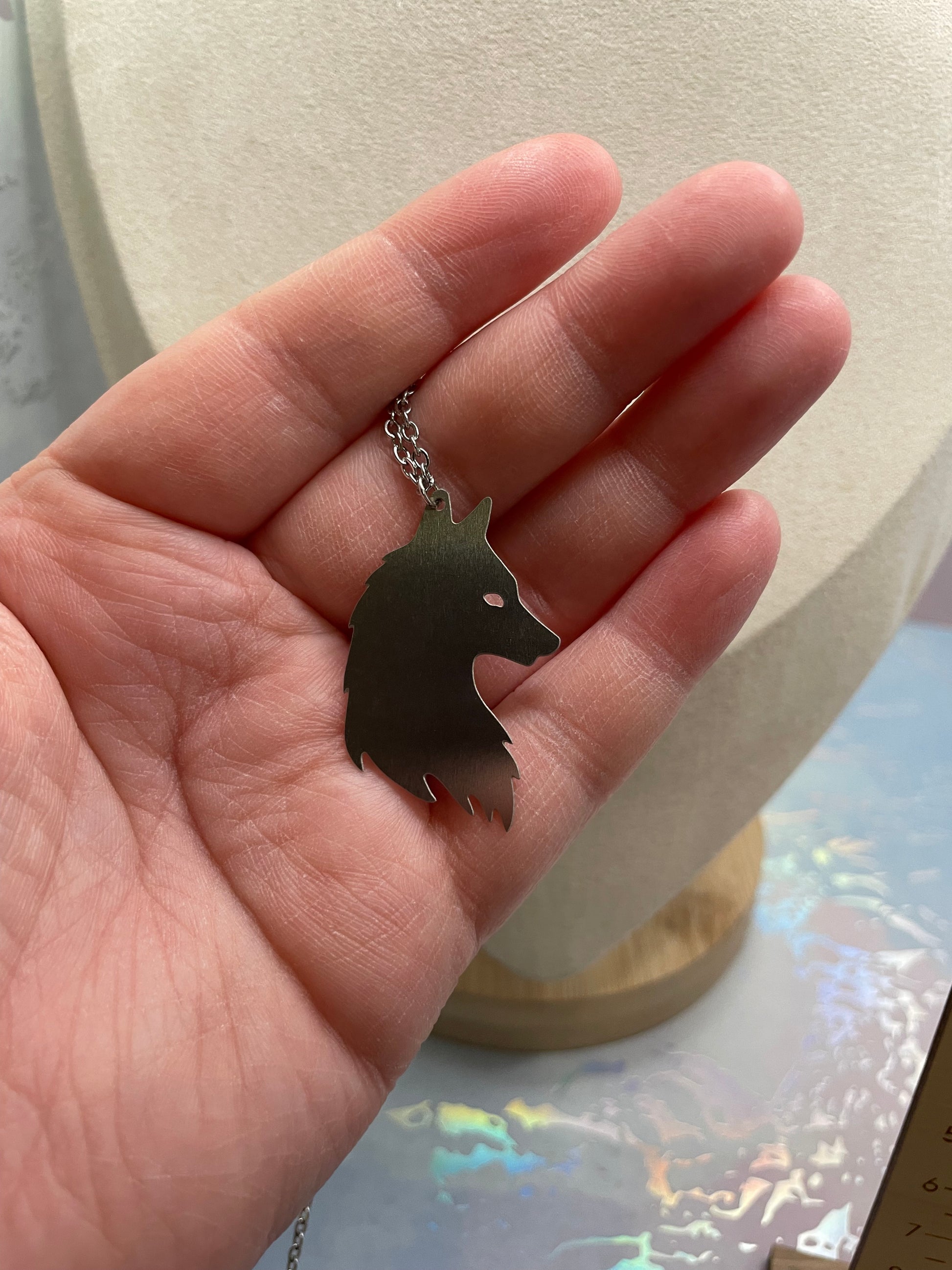 Ce bijou au design épuré met en valeur une silhouette de loup en acier inoxydable au fini moderne et net. Le pendentif se distingue par ses lignes franches tout en restant léger et agréable à porter. Les boucles d’oreilles assorties complètent parfaitement l’ensemble pour un style affirmé et harmonieux.