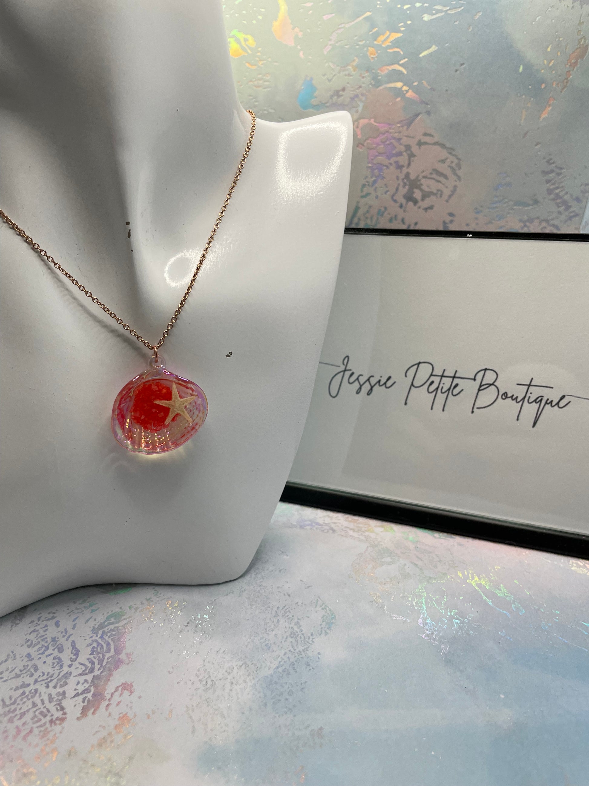 Intégrez la beauté de l'océan à votre garde-robe avec ce superbe collier pendentif étoile de mer en acrylique. Son design unique, orné d'une étoile de mer incrustée dans un coquillage acrylique rose/rouge vif, capture l'essence même de l'élégance côtière.