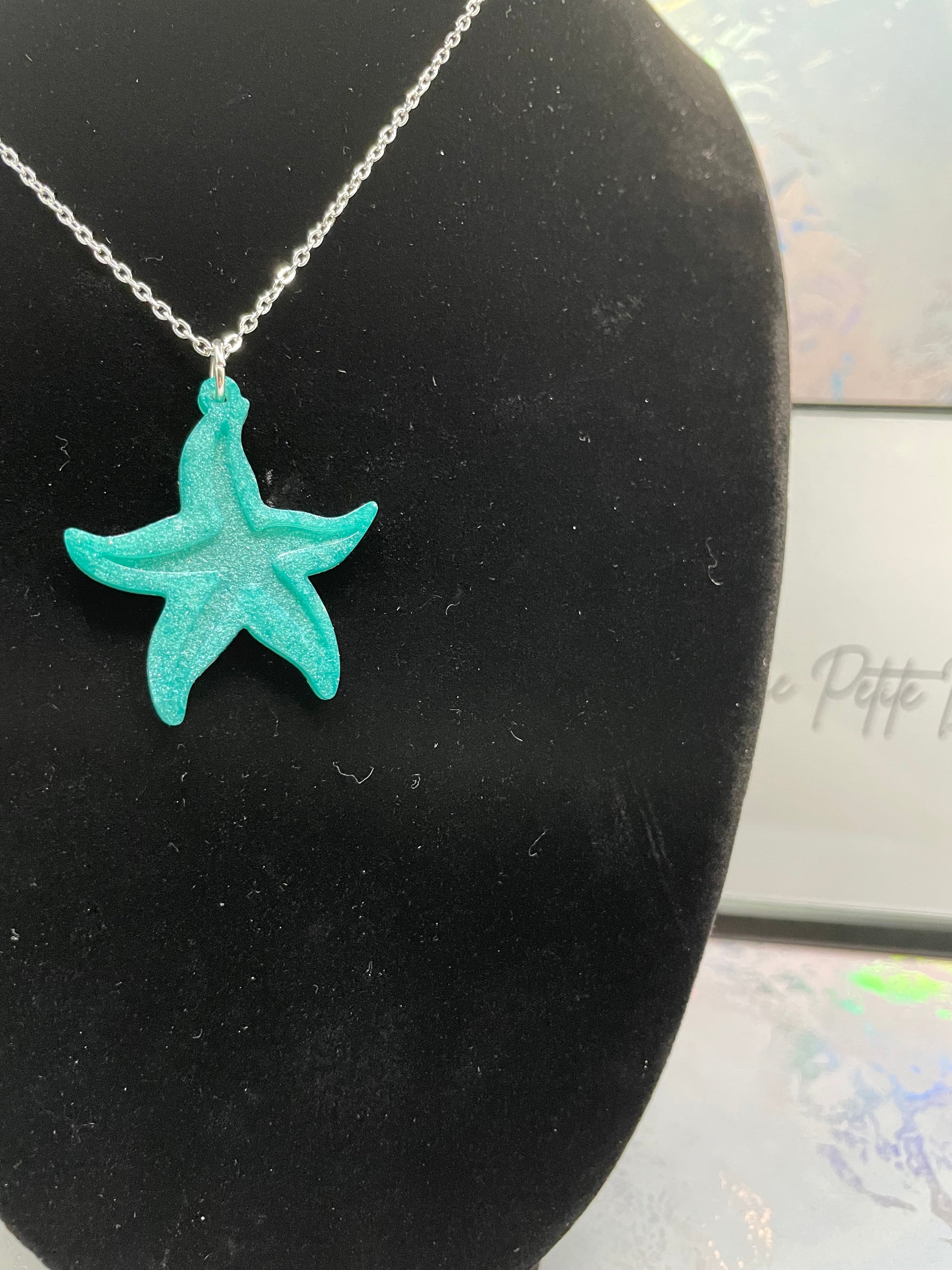 Plongez dans l'élégance côtière avec ce collier étoile de mer turquoise, orné d'un pendentif en forme d'étoile de mer magnifiquement détaillé, réalisé en résine et poudre de mica pour un éclat éclatant. Suspendu à une chaîne en argent de 24 pouces (61 cm) avec rallonge et sécurisé par un fermoir mousqueton , ce collier allie style et confort.