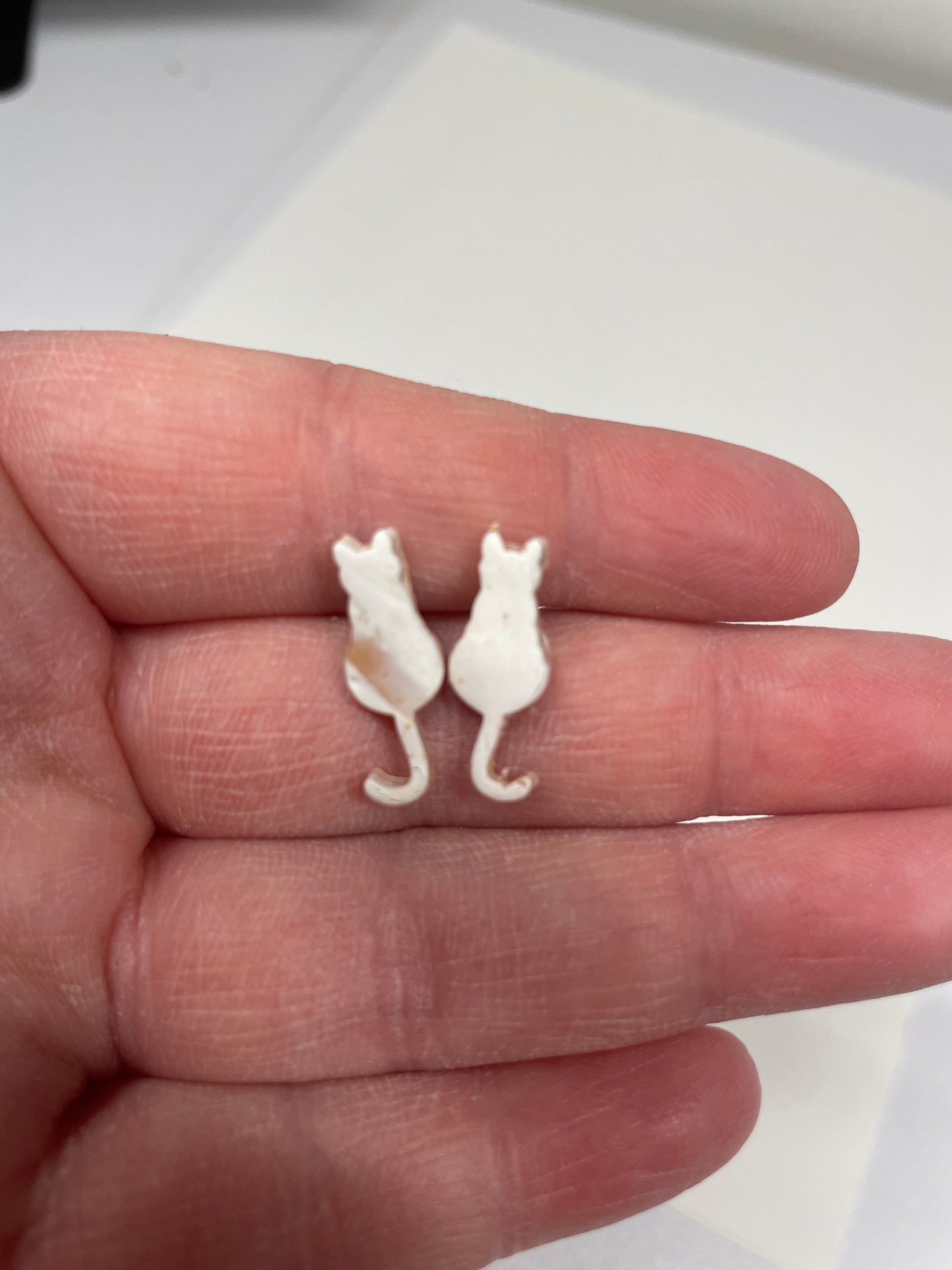 Ces délicates boucles d’oreilles en forme de chat sont entièrement façonnées à la main en argile polymère. Leur silhouette épurée et allongée apporte une touche discrète et charmante, parfaite pour un look doux, minimaliste et intemporel.
