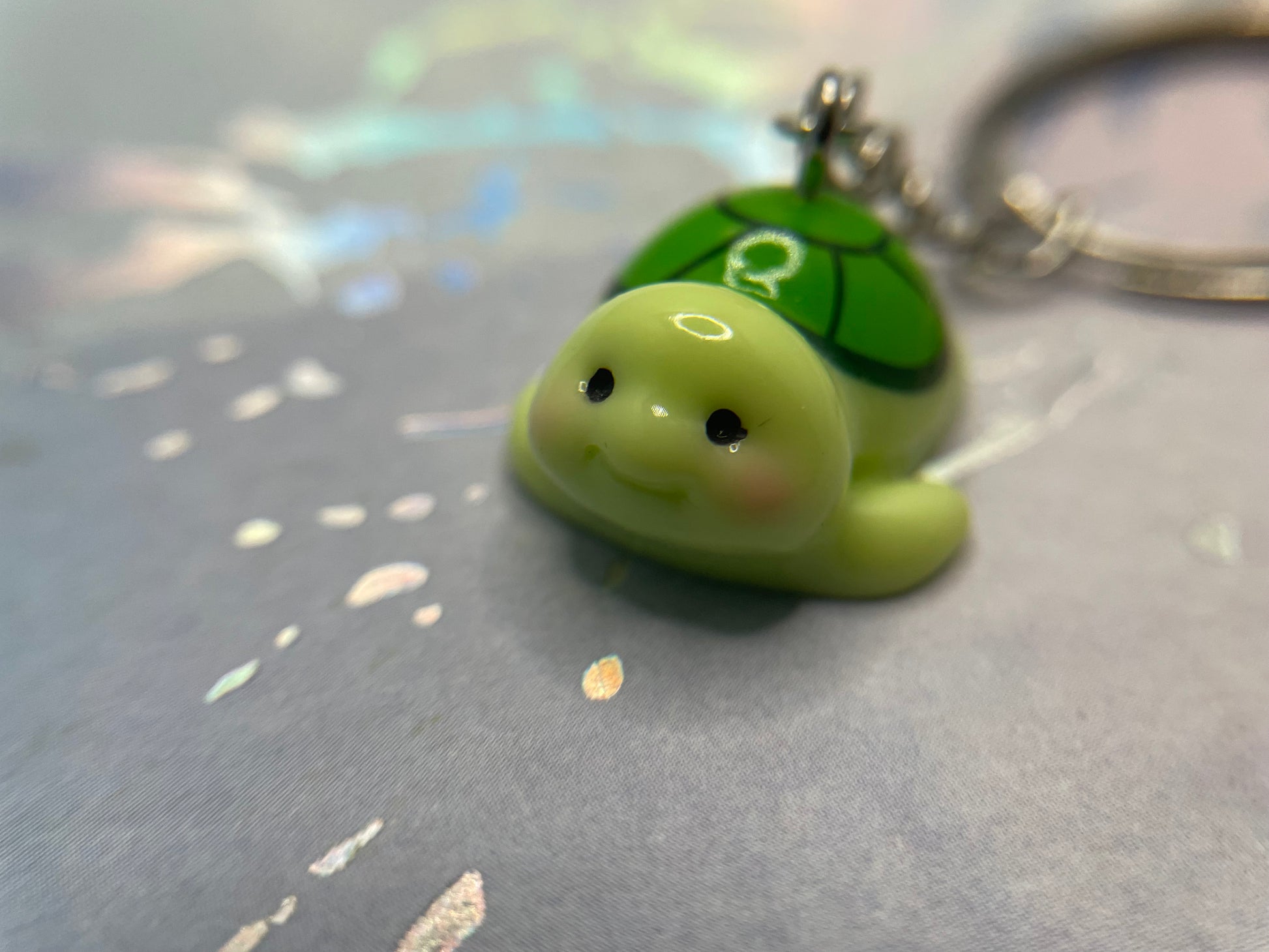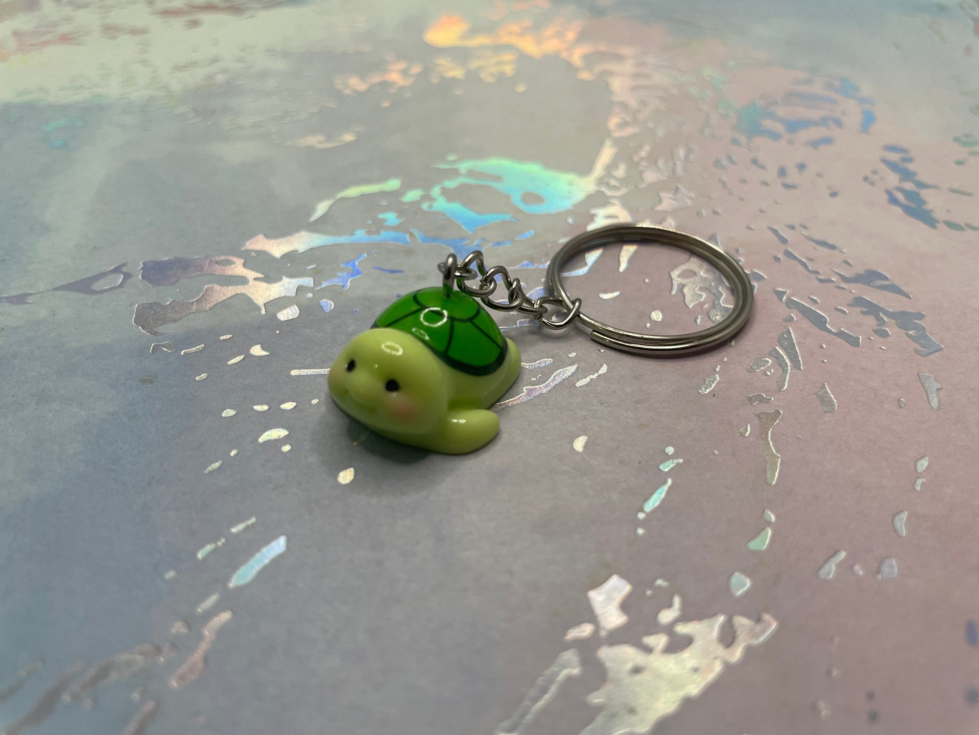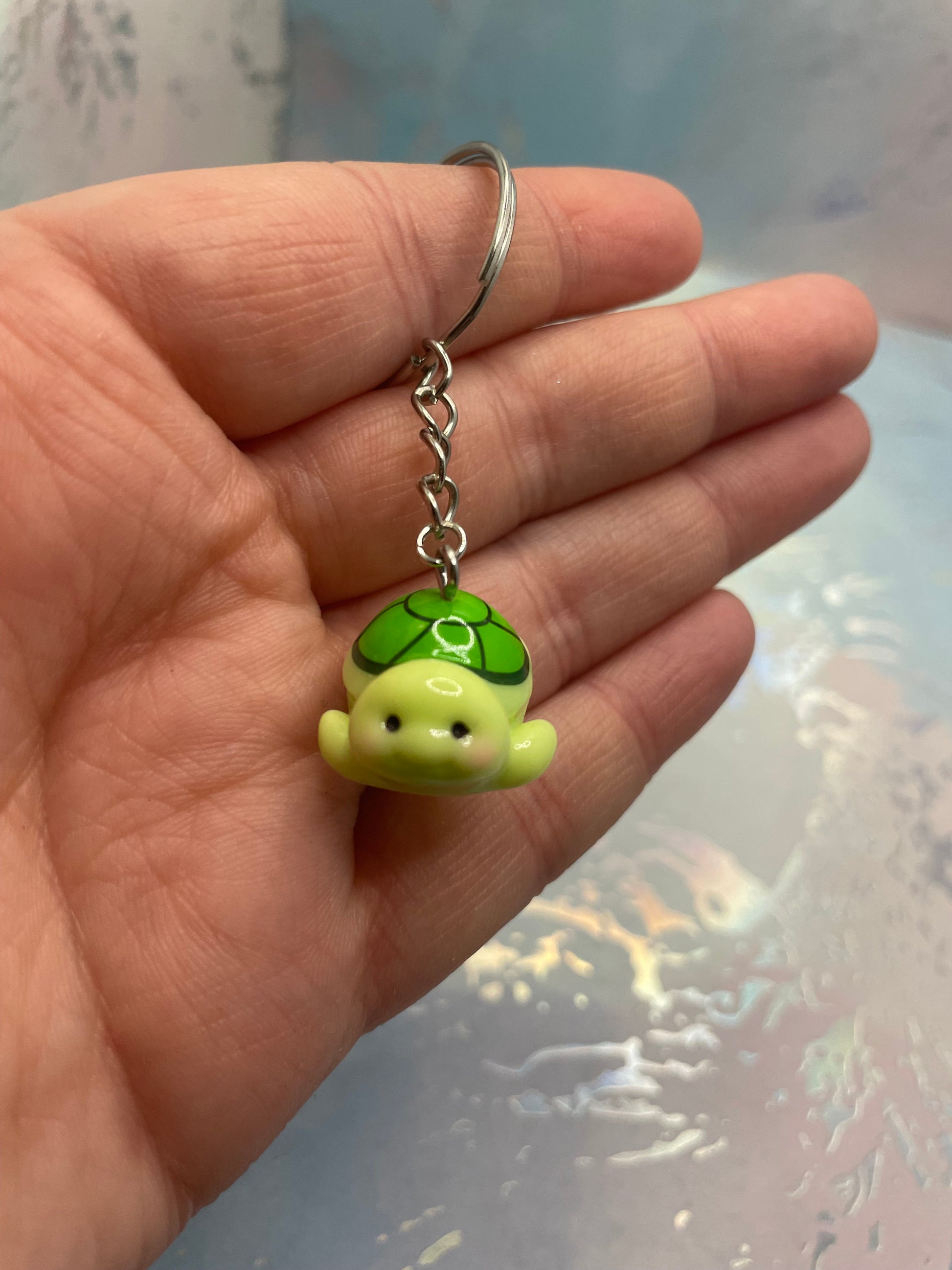 Ajoutez une touche douce et attendrissante à vos clés, sacs ou sacs à dos avec ce charmant porte-clés en forme de tortue. Son design arrondi et expressif met en valeur une petite tortue souriante, aux couleurs vert clair et vert foncé, avec une carapace joliment détaillée. La finition lisse et brillante lui donne un aspect soigné et agréable au toucher.