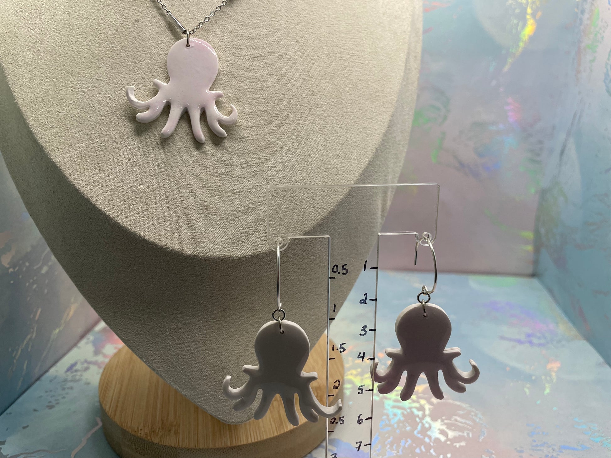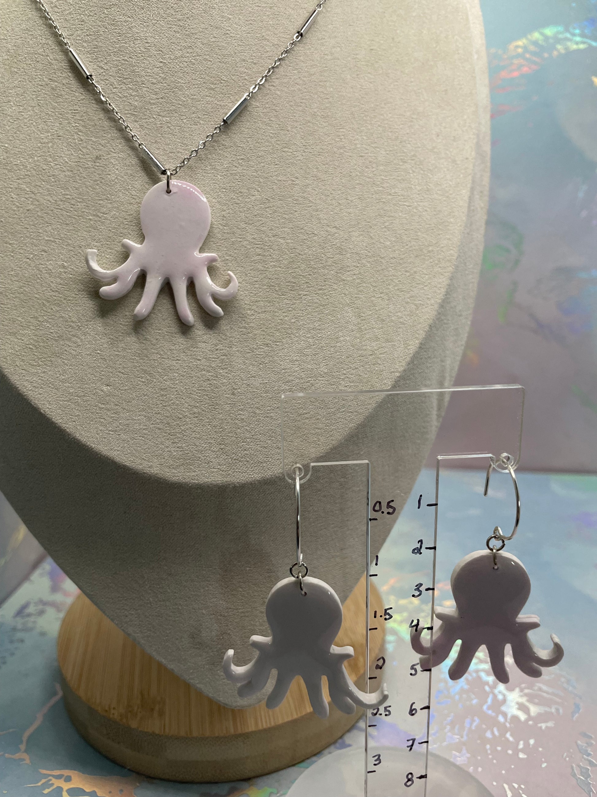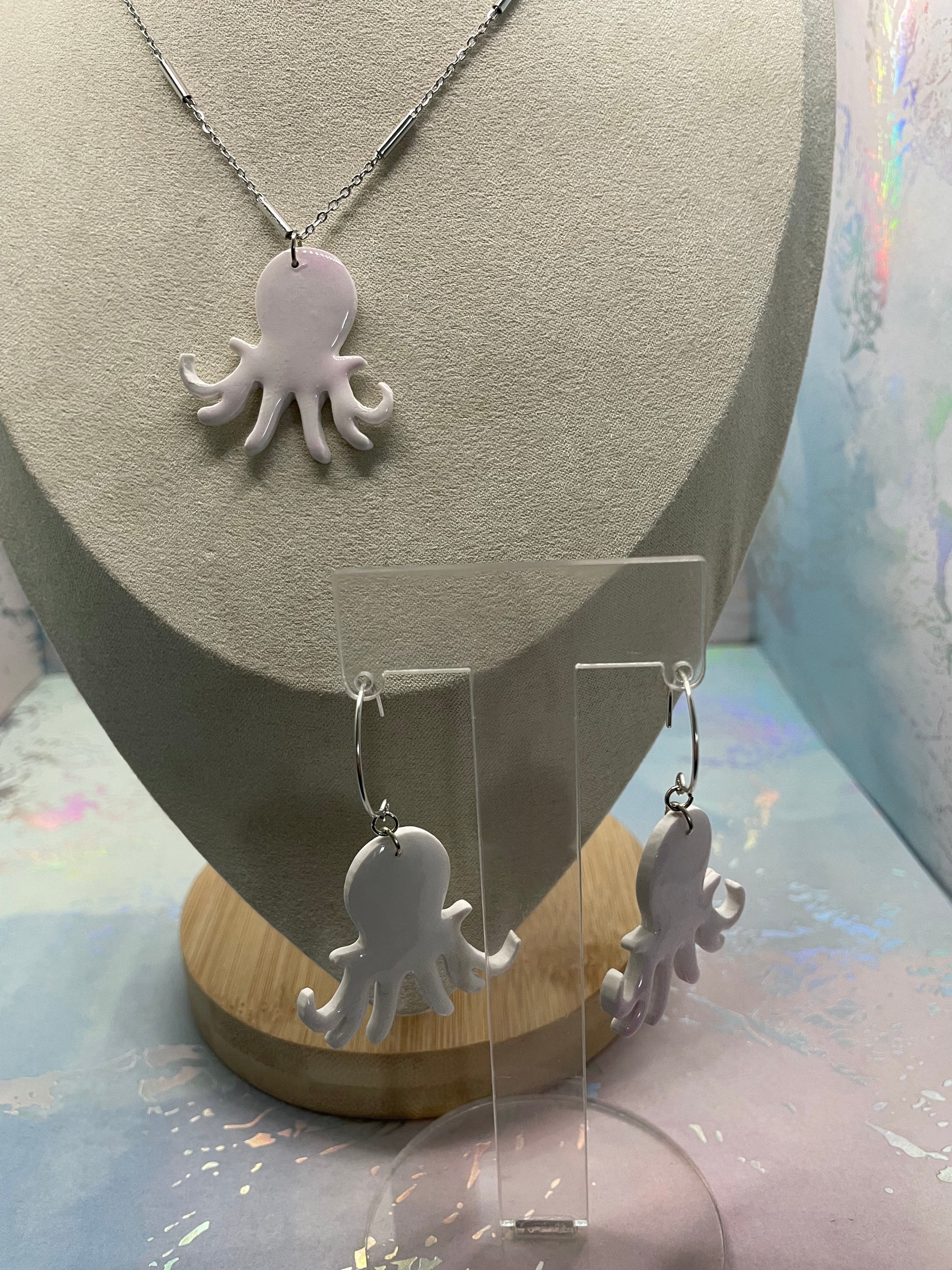 Avec son design délicat inspiré de l'océan, cet ensemble léger et confortable est un accessoire charmant en toute occasion. Sa forme de pieuvre, rehaussée d'encre à l'alcool et de résine, apporte une touche ludique et chic à votre collection.