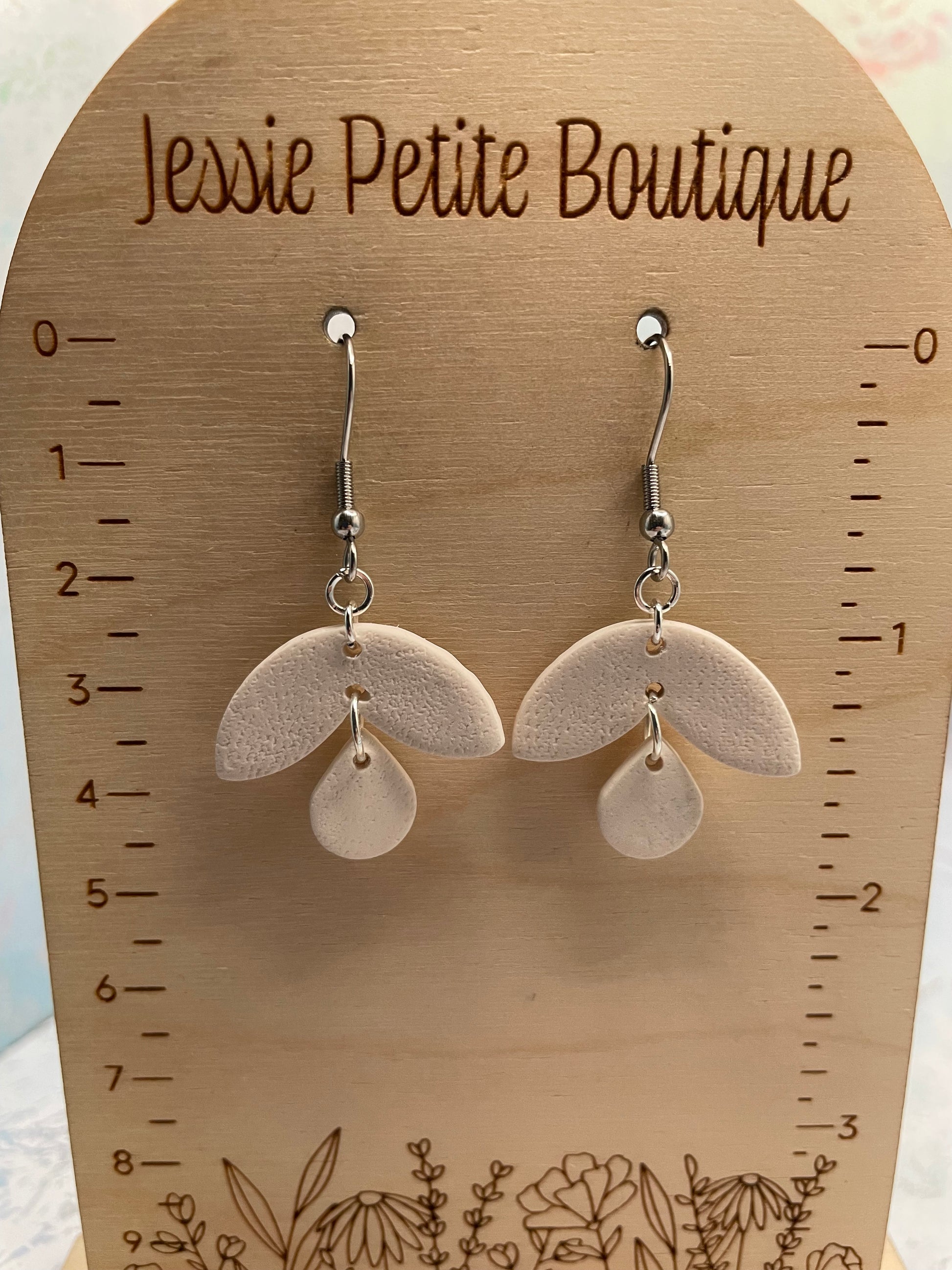 Ces élégantes boucles d'oreilles arborent un charmant motif de fleur se transformant gracieusement en goutte d'eau , le tout réalisé en argile polymère blanche. Leur légèreté les rend confortables au quotidien, tandis que leurs composants en acier inoxydable garantissent durabilité et hypoallergénique.