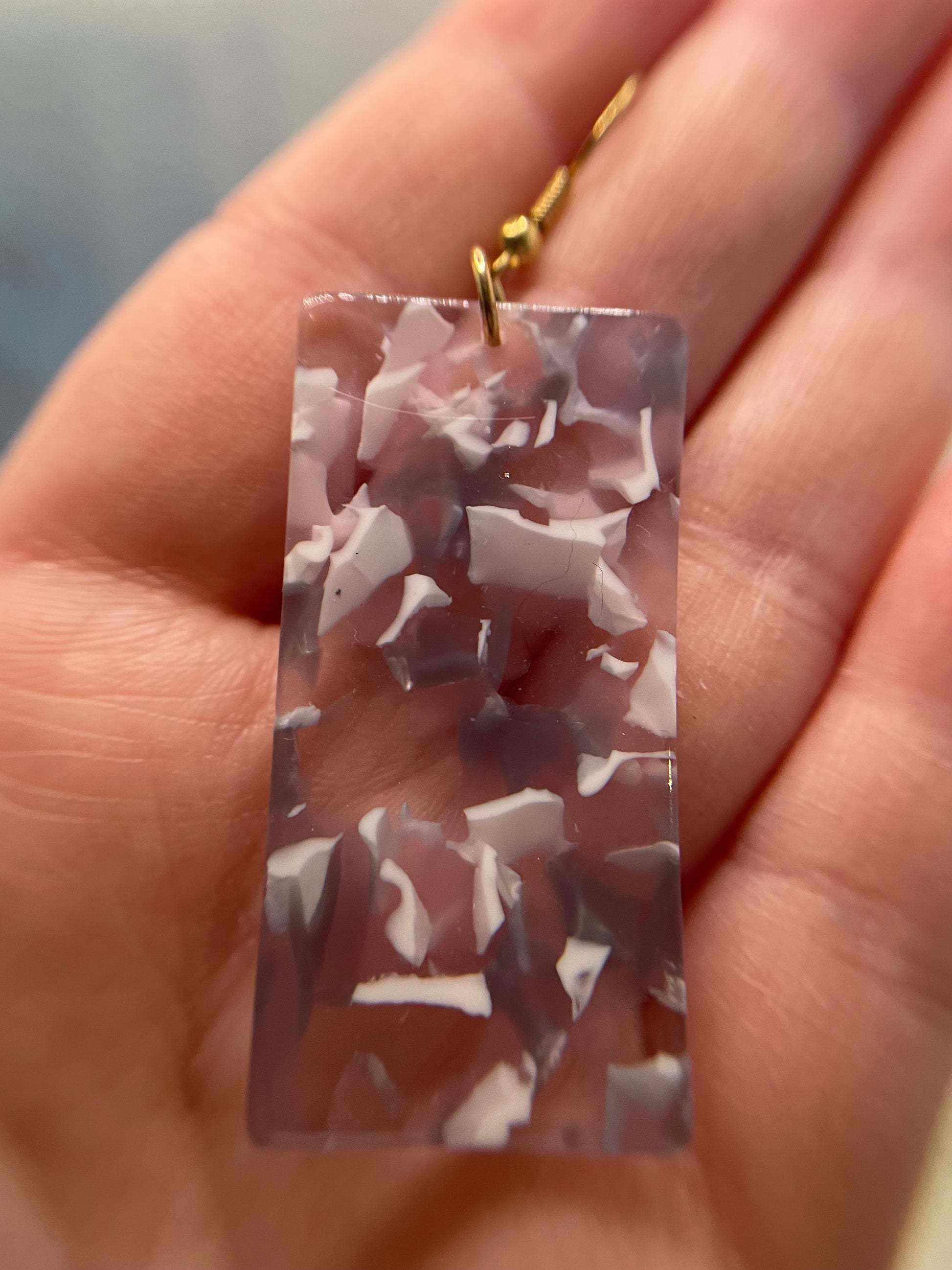 Boucles d'oreilles rectangulaires blanc, rose et mauve en acrylic