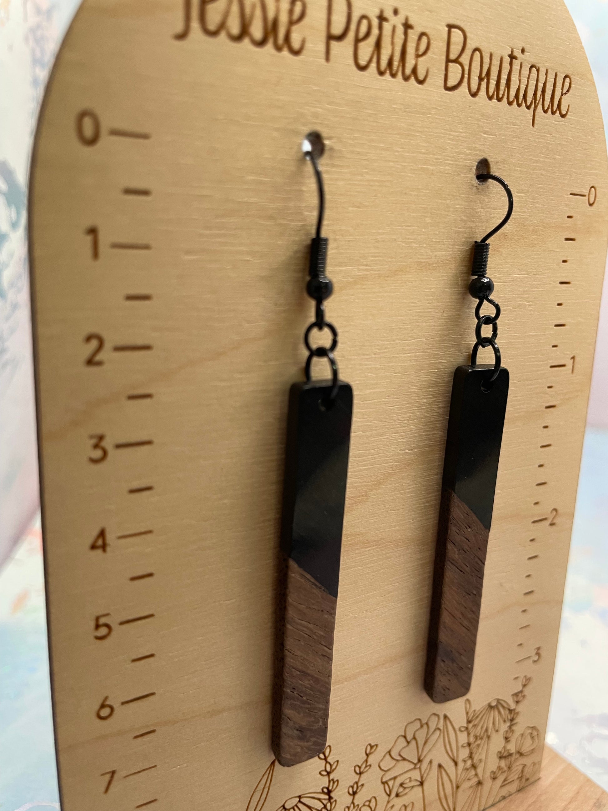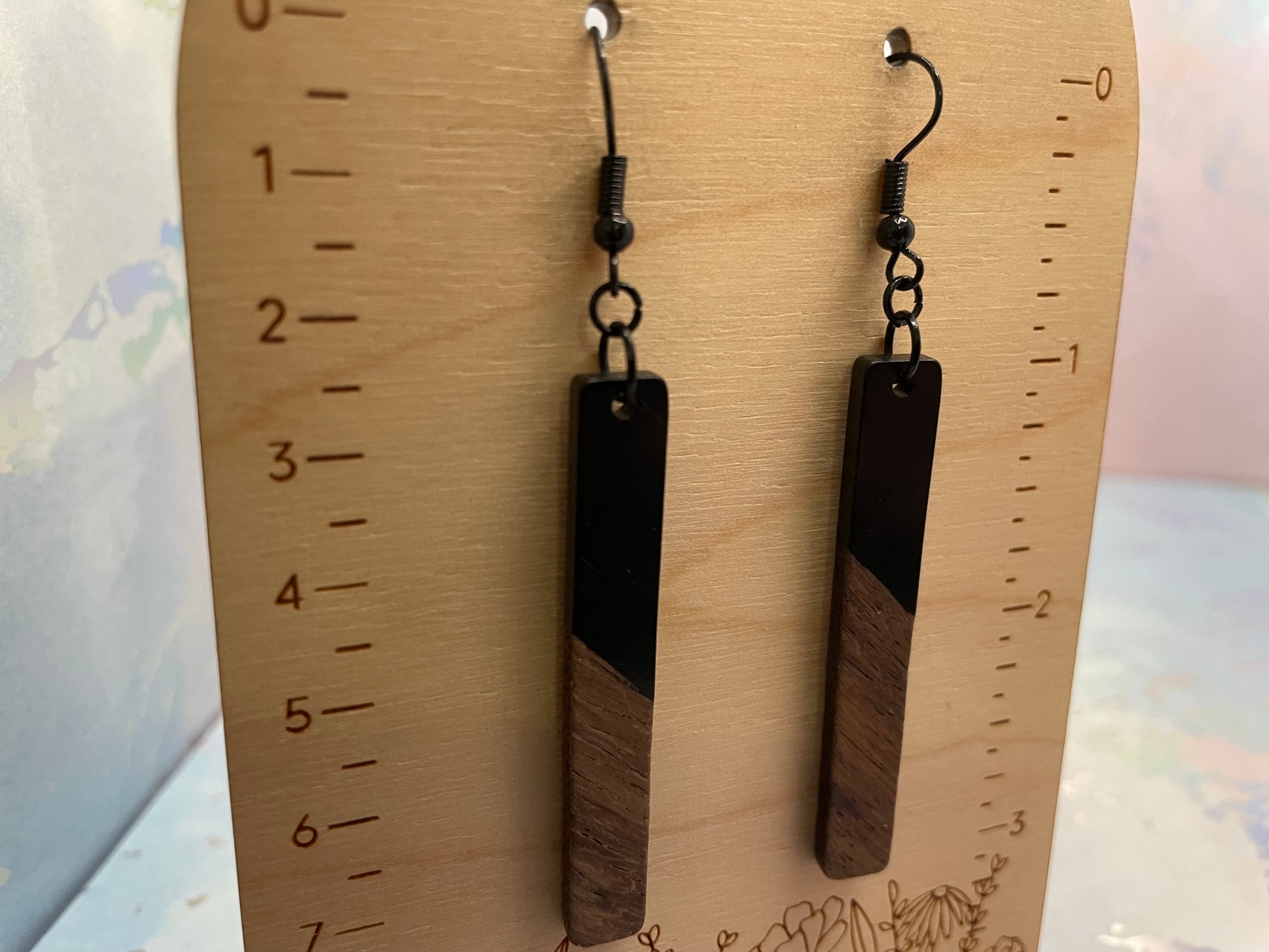 Boucles d’oreilles rectangulaires longues en bois et acrylique noir