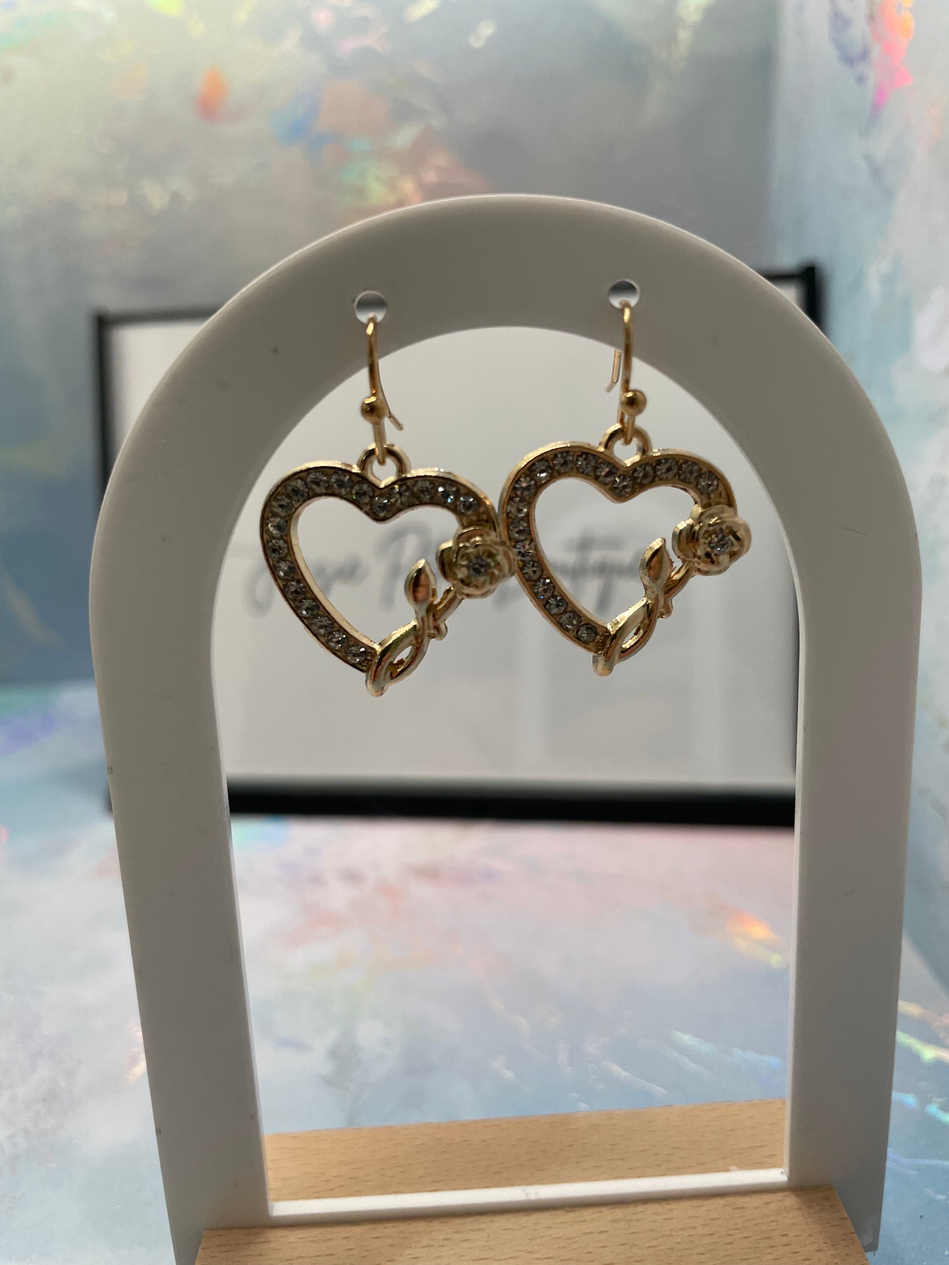 Boucles d'oreilles cœur en zircone avec rose dorée