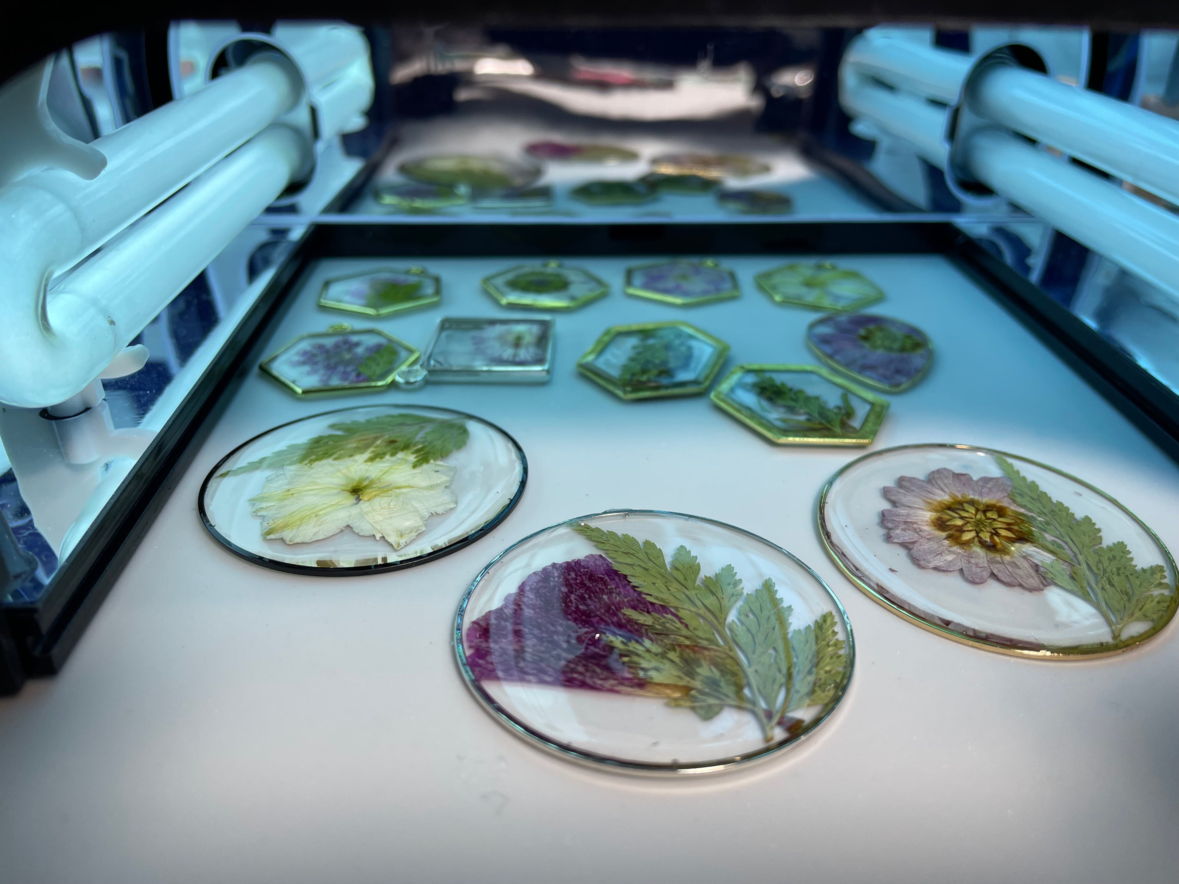 Wooden Coaster Set with Dried Flowers and Resin Finish (Set of 4)