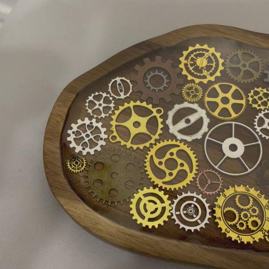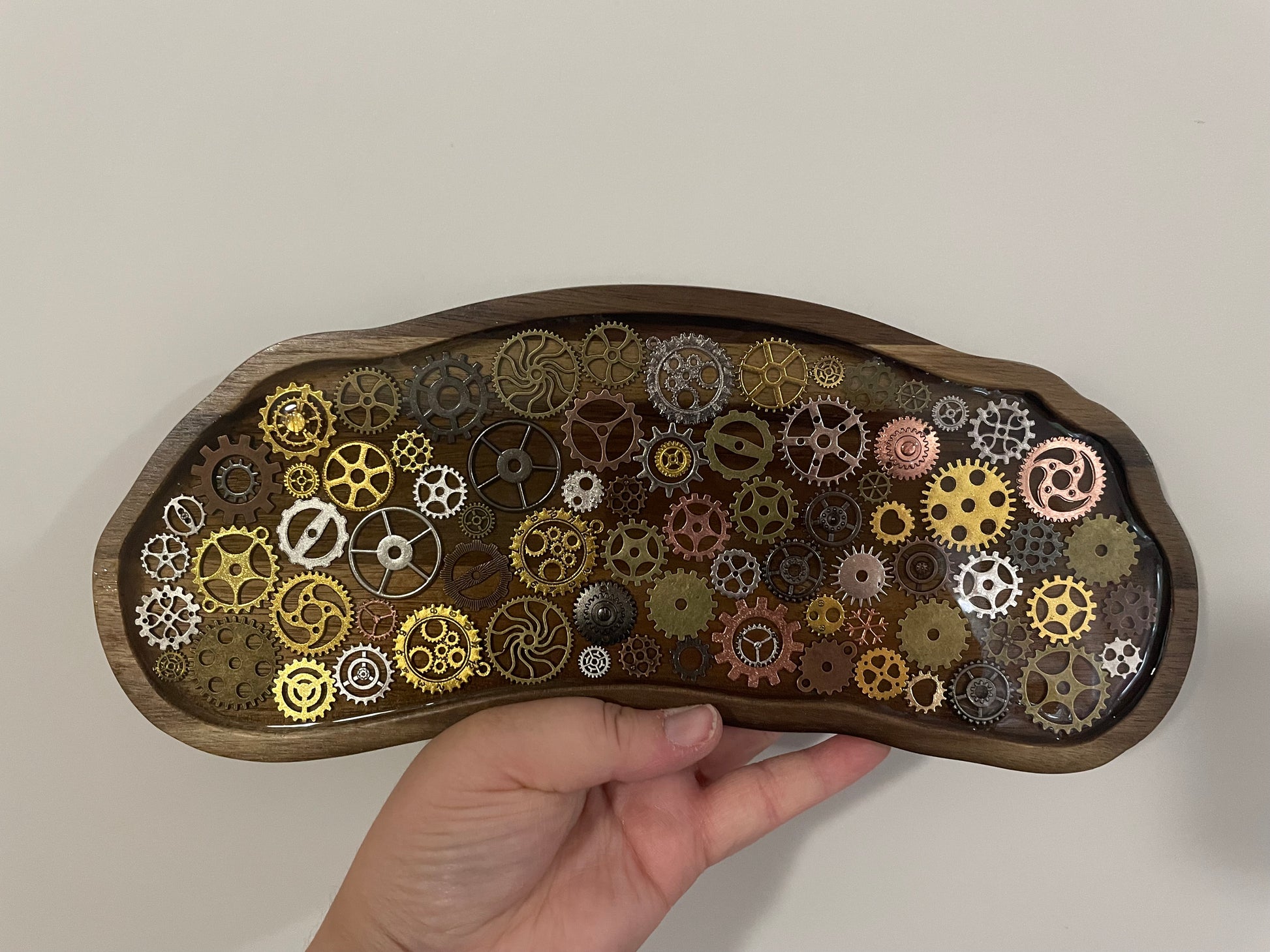 Pink Ocean-Round Wood and Resin Tray – Unique Handmade Art Piece