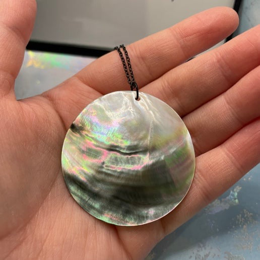 5 cm Dark Shell Necklace – 25" Black Chain-NICKEL FREE