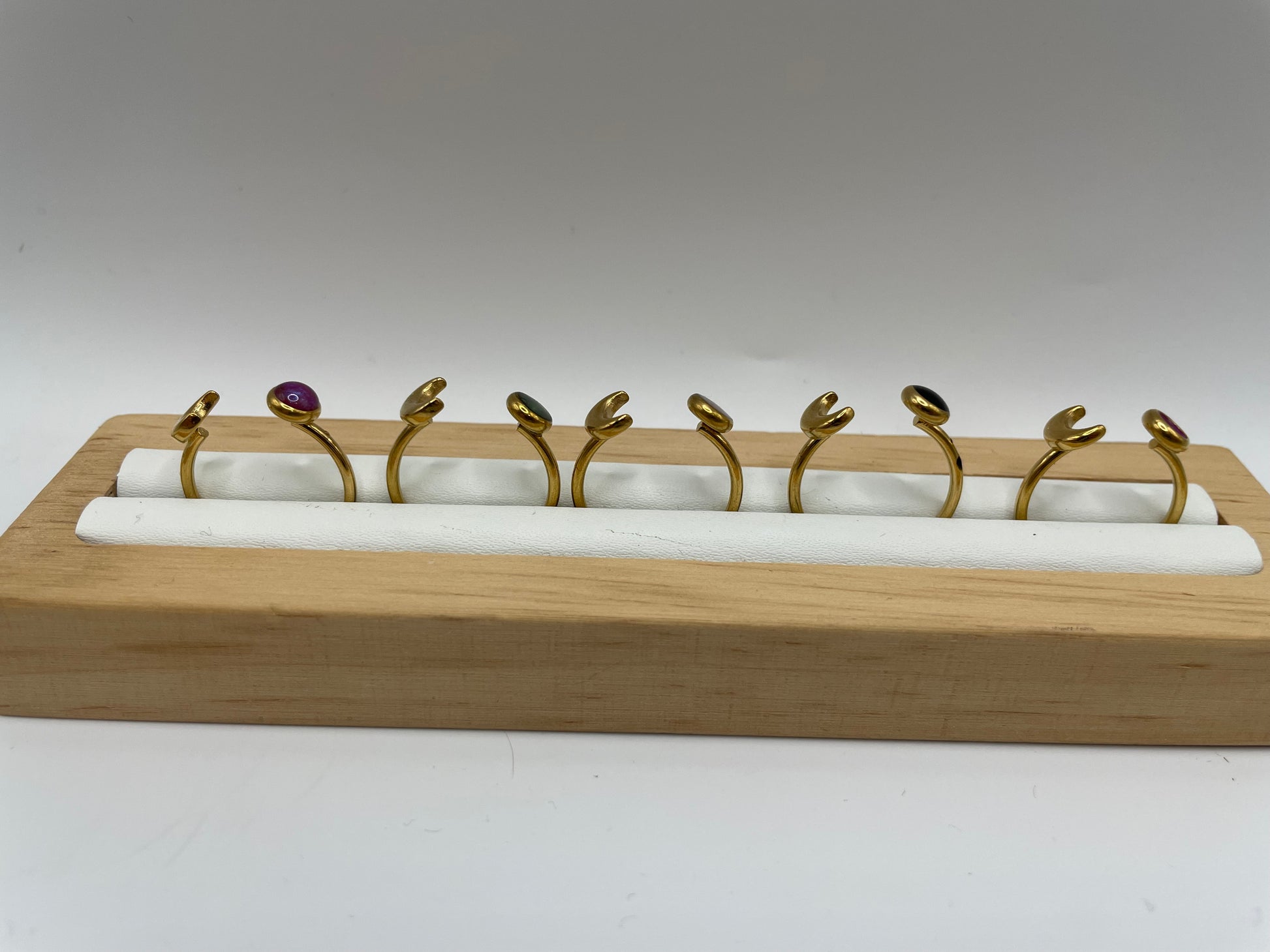Graceful and modern, this adjustable ring features a crescent moon paired with a small round bezel, creating a subtle and elegant design. Made from durable 18k gold-plated stainless steel, it’s lightweight, comfortable, and perfect for everyday wear. Available in several beautiful colors to match your personal style.