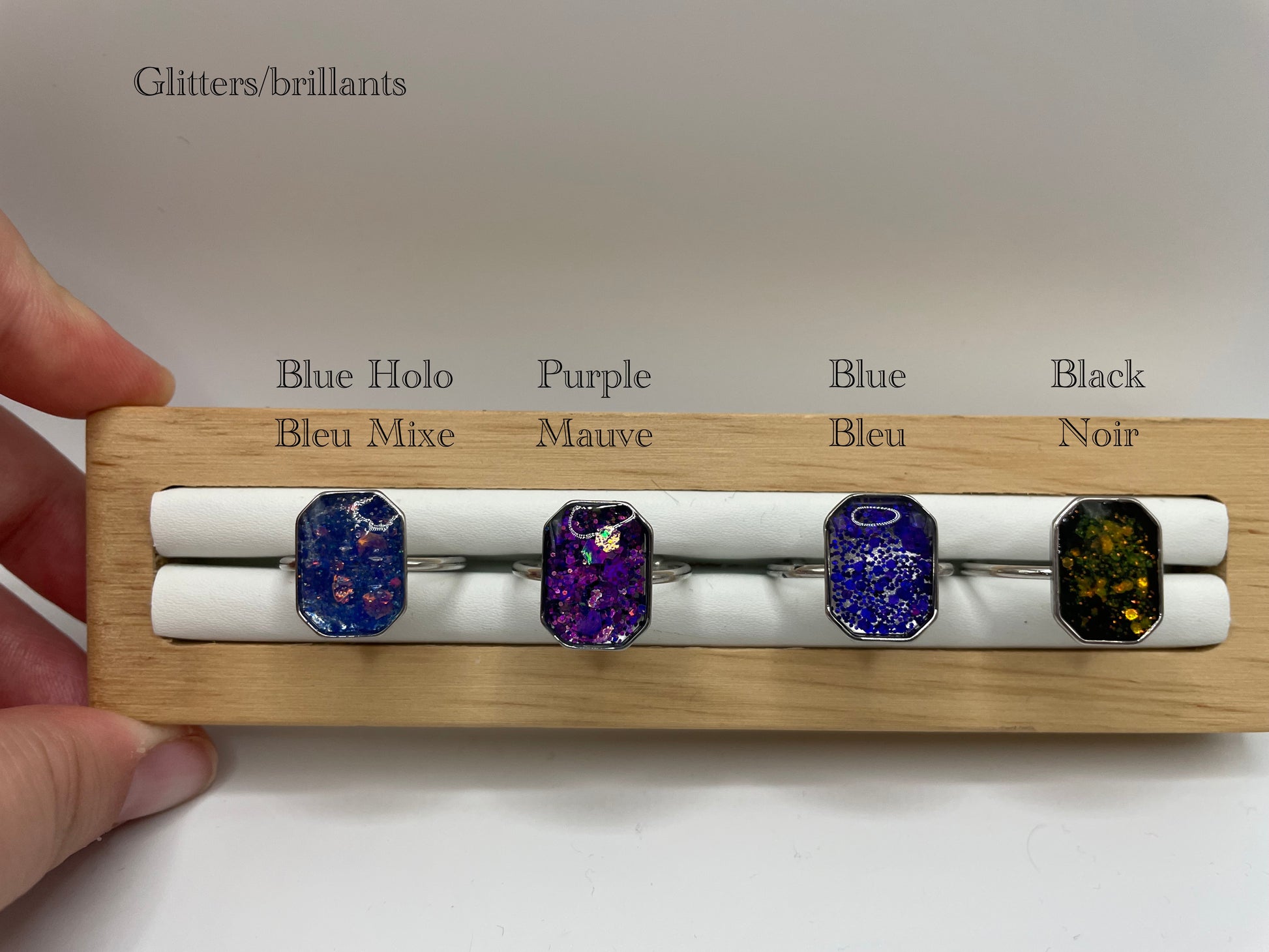 Refined and artistic, these adjustable stainless steel rings feature elegant octagon designs with a glossy resin finish. Each piece is uniquely detailed with mica powder, dried flowers, or intricate floral stickers — capturing light with beautiful dimension.