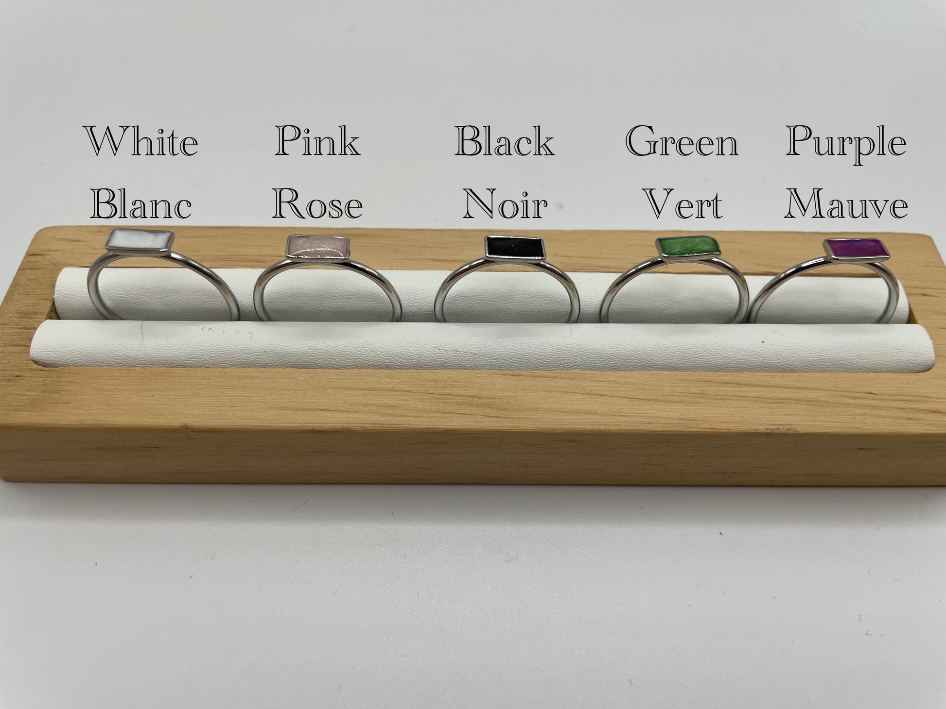 Sleek and versatile, this stainless steel adjustable ring features a minimalist rectangular bezel, available in five beautiful colors. Lightweight yet durable, it’s perfect for everyday wear or stacking with other rings. The adjustable band ensures a comfortable fit for any finger.