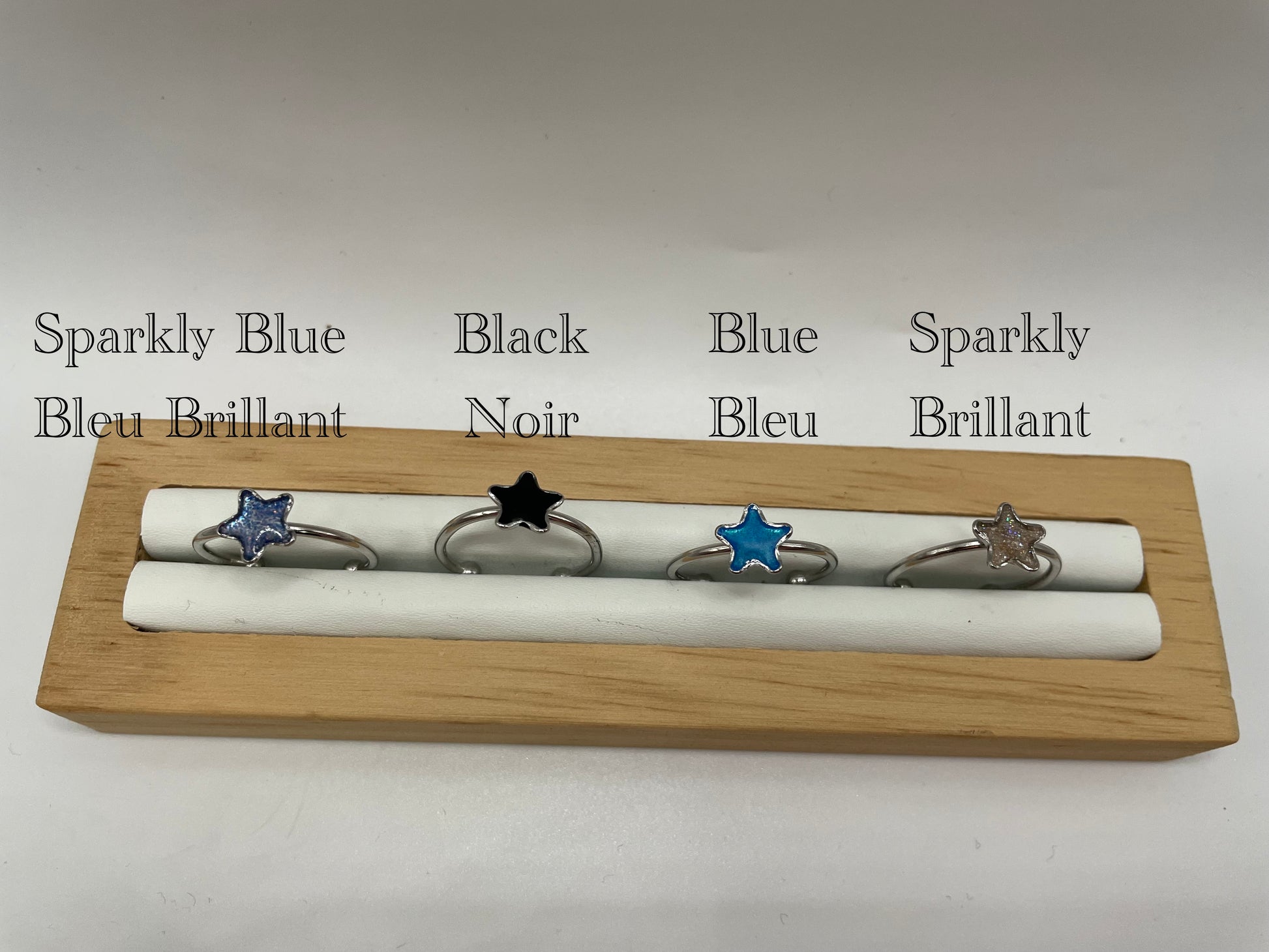 Delicate and charming, this stainless steel adjustable ring features a small star-shaped base with a glossy or sparkly finish. Available in four lovely color options, it adds a playful yet elegant touch to any outfit. Lightweight, comfortable, and perfect for everyday wear or as a thoughtful gift.