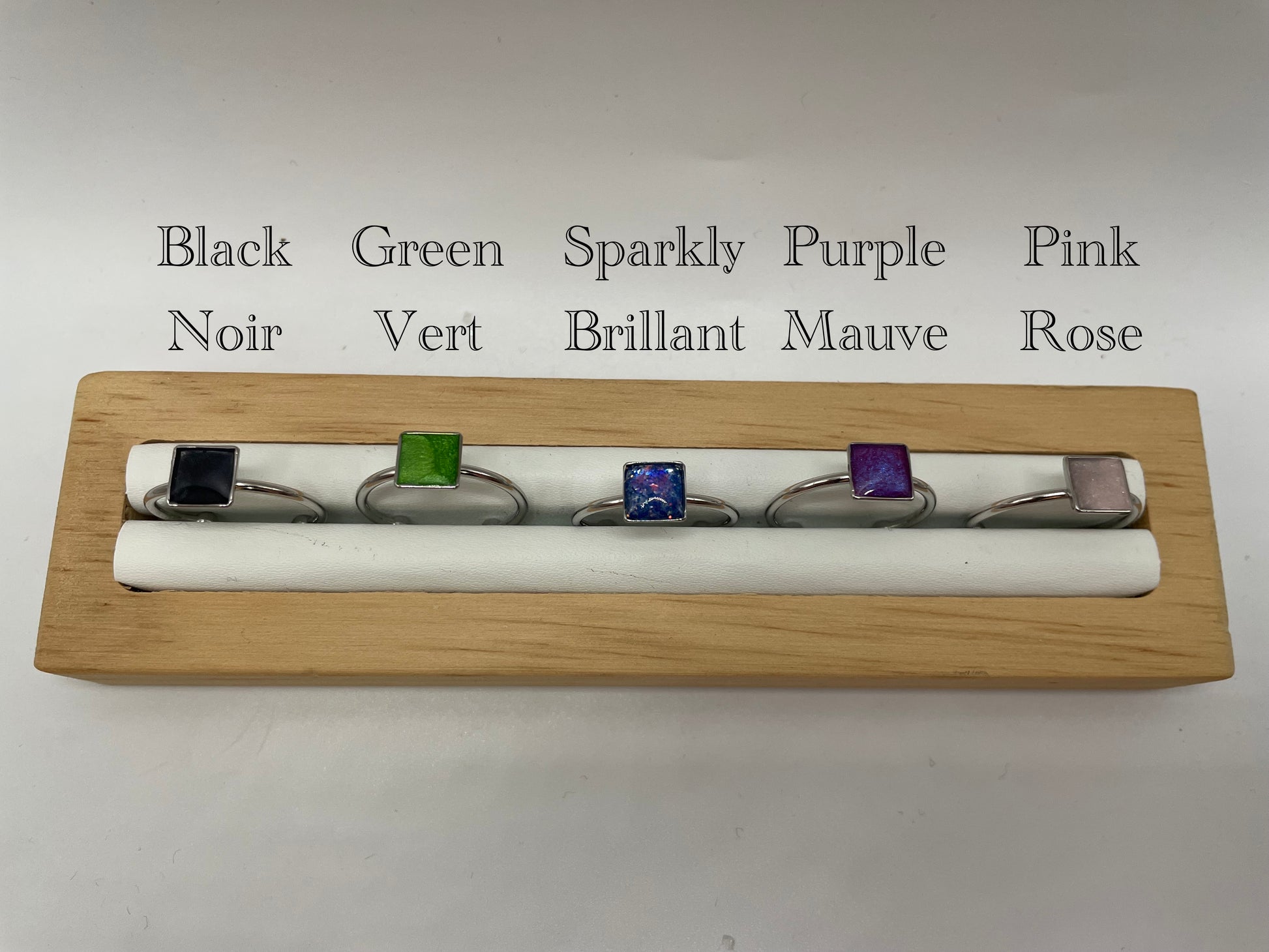 Simple and modern, this stainless steel adjustable ring features a square base with a smooth, glossy finish. Available in five beautiful colors, it’s the perfect everyday accessory — light, durable, and easy to pair with any style. Wear it alone for a minimalist look or stack it with other rings for a unique touch.
