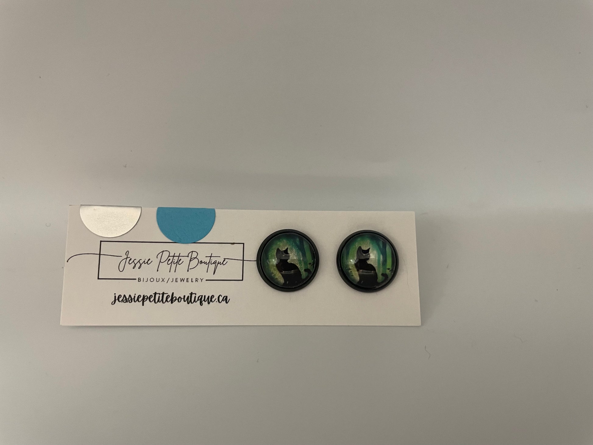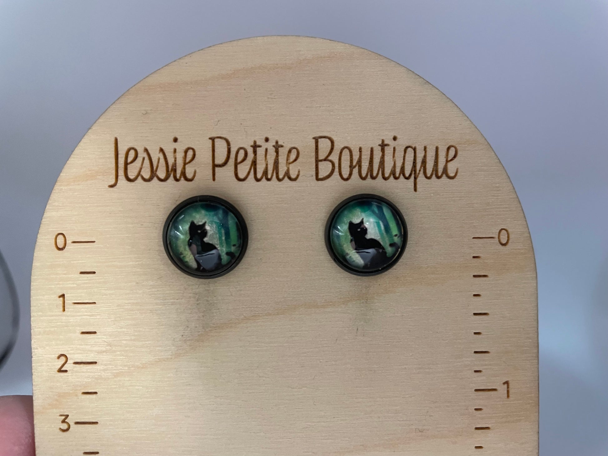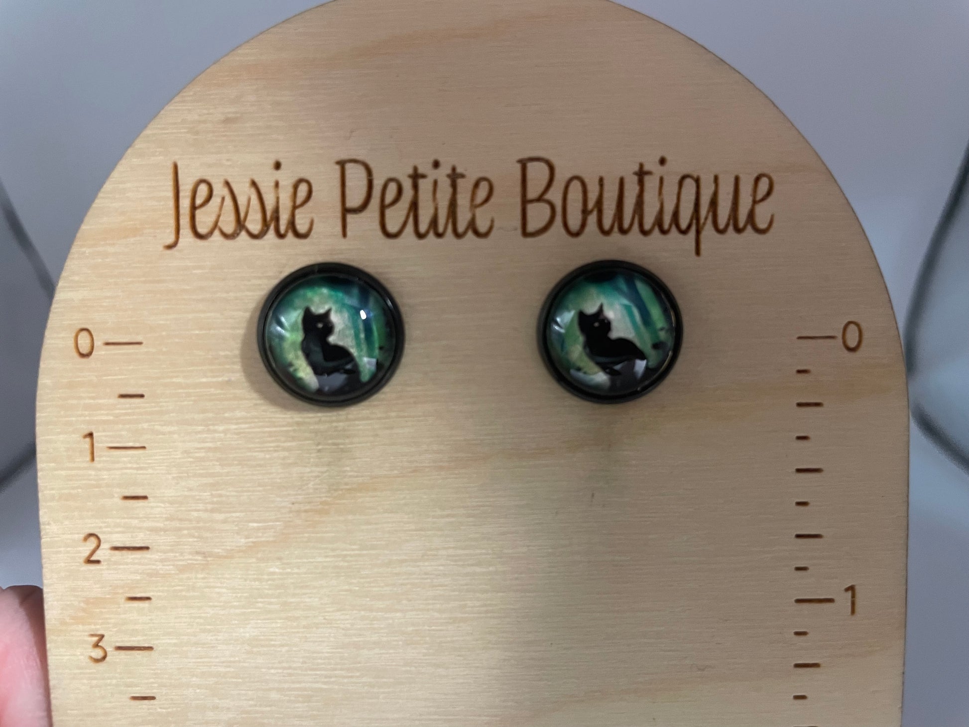 Black Cat Stud Earrings – Northern Lights Design (Nickel Free+Stainless Steel)