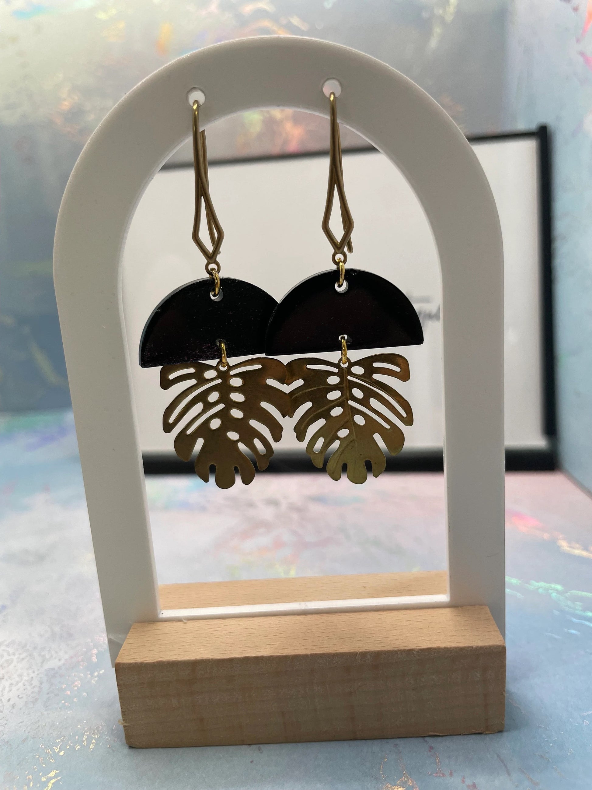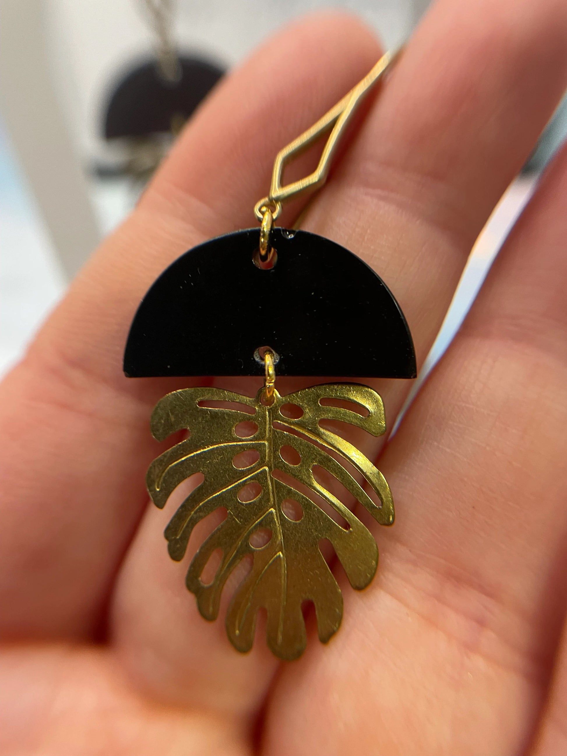 Elegant and modern with a hint of tropical flair — these Black & Gold Monstera Earrings are designed to stand out. The combination of a sleek black half-circle and a shimmering gold monstera leaf creates the perfect balance between minimalism and statement style.