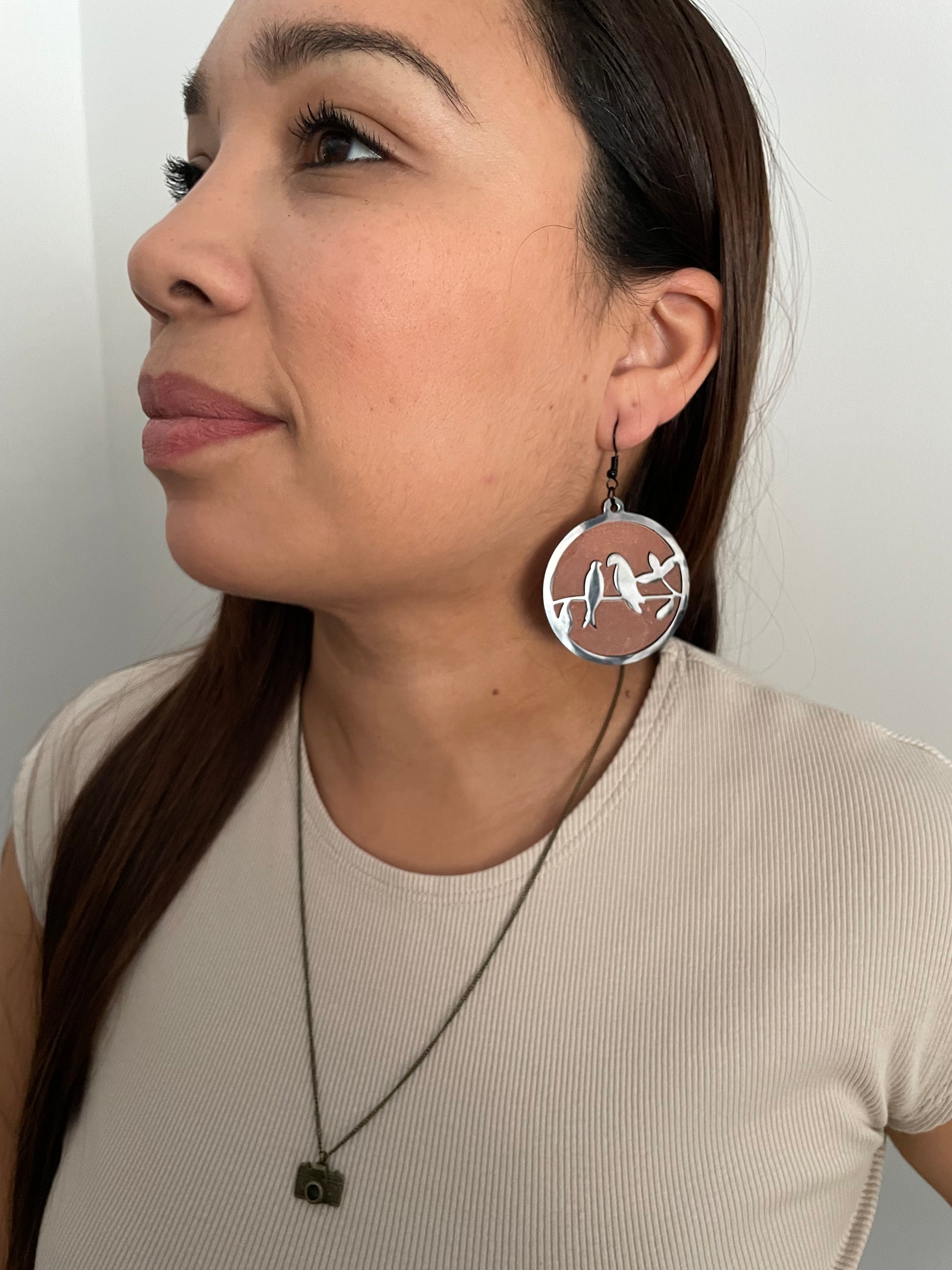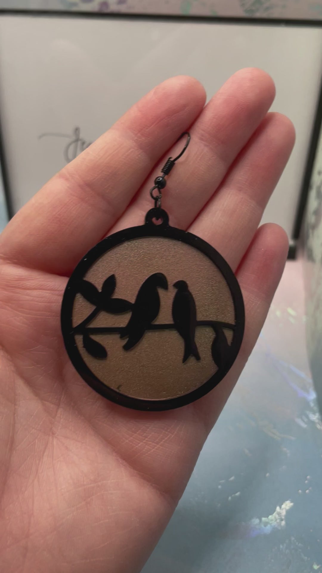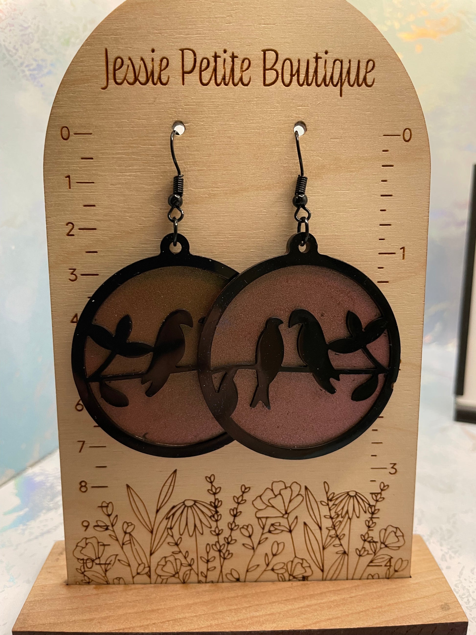 Add a touch of cosmic romance to your look with our Black Love Bird Earrings. Featuring a striking round design, these earrings showcase a beautifully detailed black love bird set against a mesmerizing backdrop, created with resin and mica powder. Those lightweight earrings design with ear wire closure ensures both style and comfort.