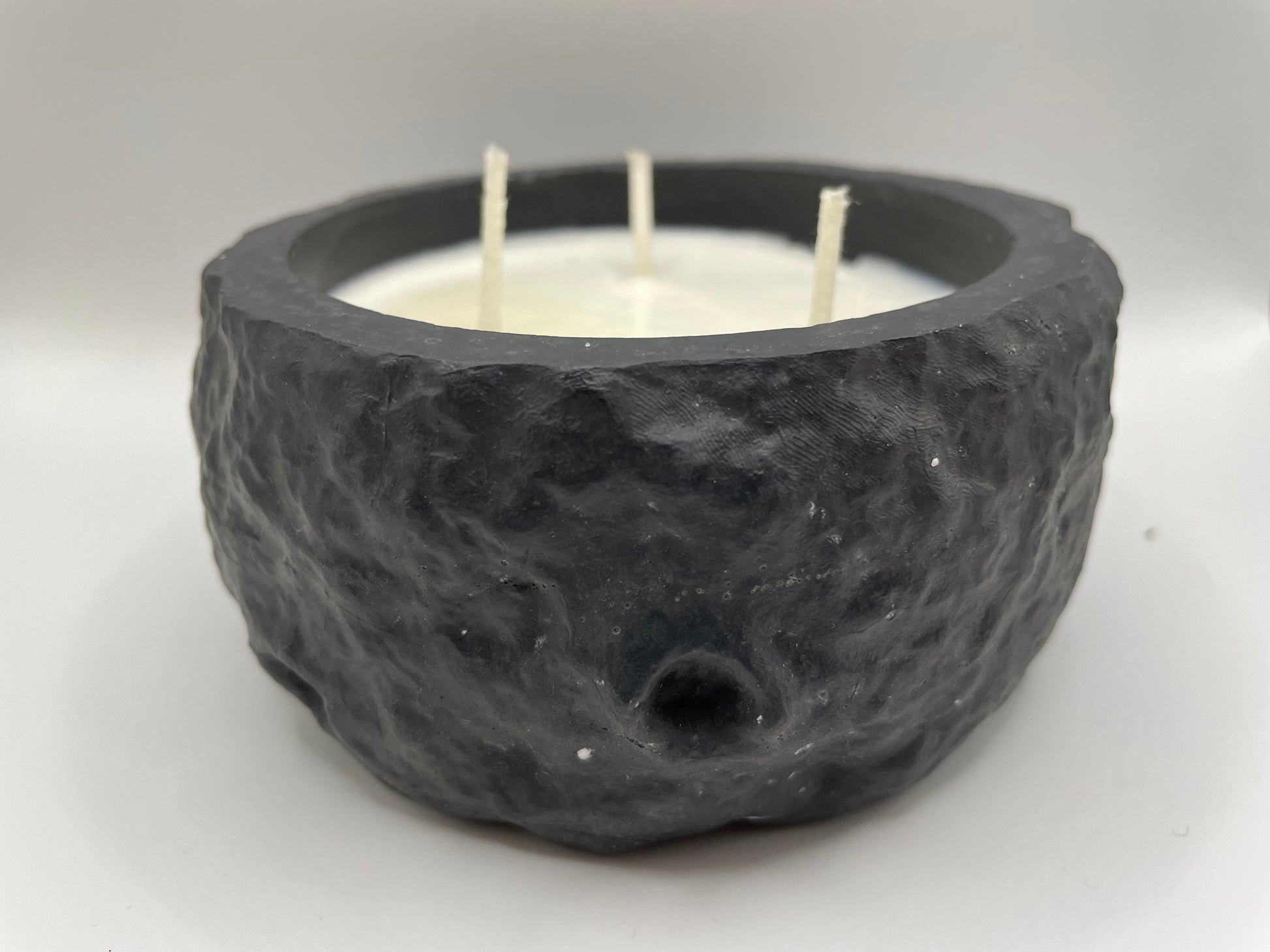 Bring a touch of cosmic charm into your home with this 100% handmade candle, beautifully crafted in a black eco-resin container shaped like a planet. Its textured surface mimics the look of craters and moonlight shadows, making it a striking décor piece even when unlit.