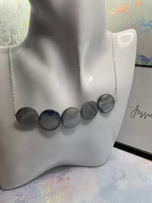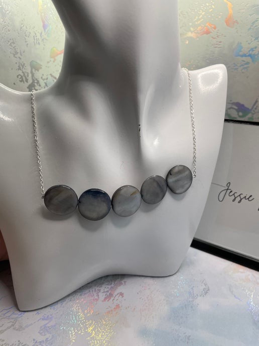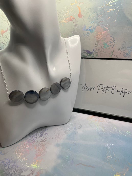 Add a touch of coastal charm to your look with this elegant round pendant necklace featuring five blue shells. Crafted with a nickel-free and stainless steel chain, this necklace combines both durability and sophistication, with a stunning natural blue shell design.