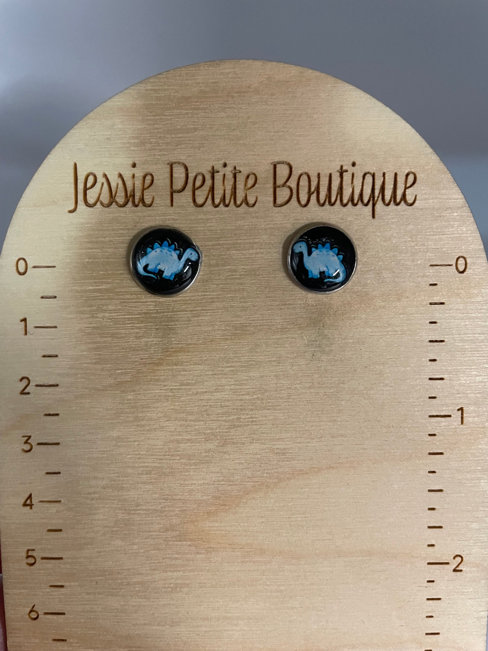 Fun, playful, and full of charm — these stainless steel stud earrings feature adorable blue dinosaur silhouettes set against a glossy black background. Perfect for adding a touch of whimsy to your everyday look or as a unique gift for dino lovers of all ages.