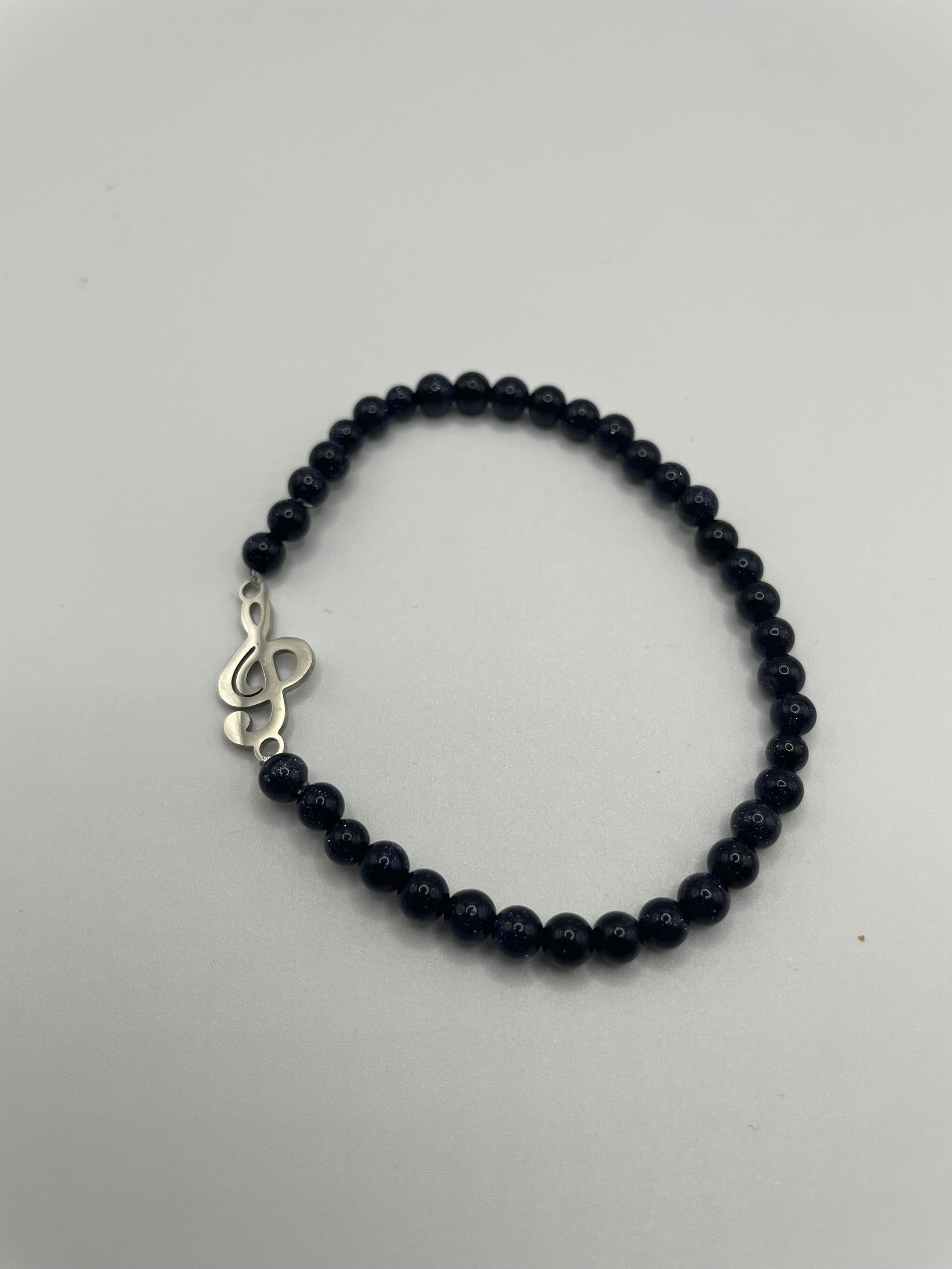 This elegant handmade bracelet features shimmering dark blue goldstone beads paired with a stainless steel treble clef charm. The subtle sparkle of the beads gives this piece a refined, musical touch — perfect for music lovers and those who appreciate minimalist elegance.