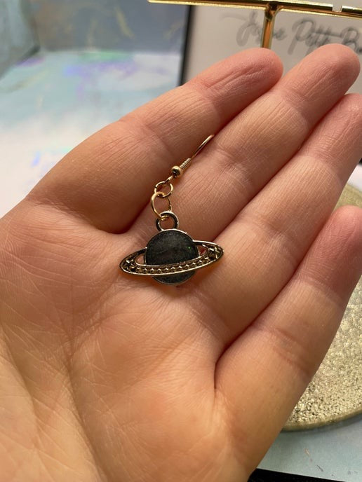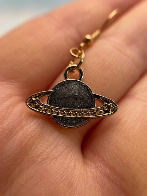 Bring a touch of celestial magic to your look with these planet-themed dangle earrings.
