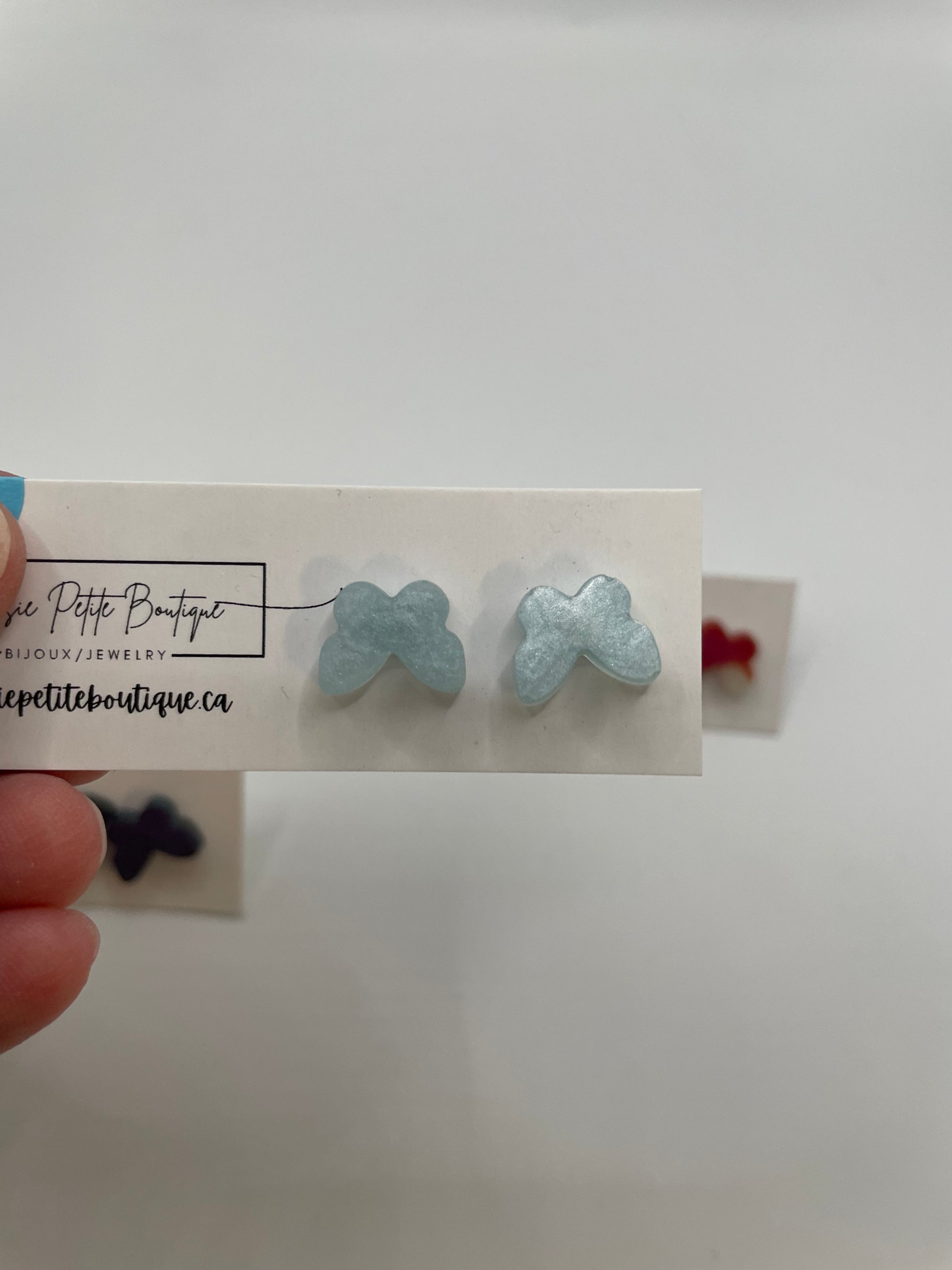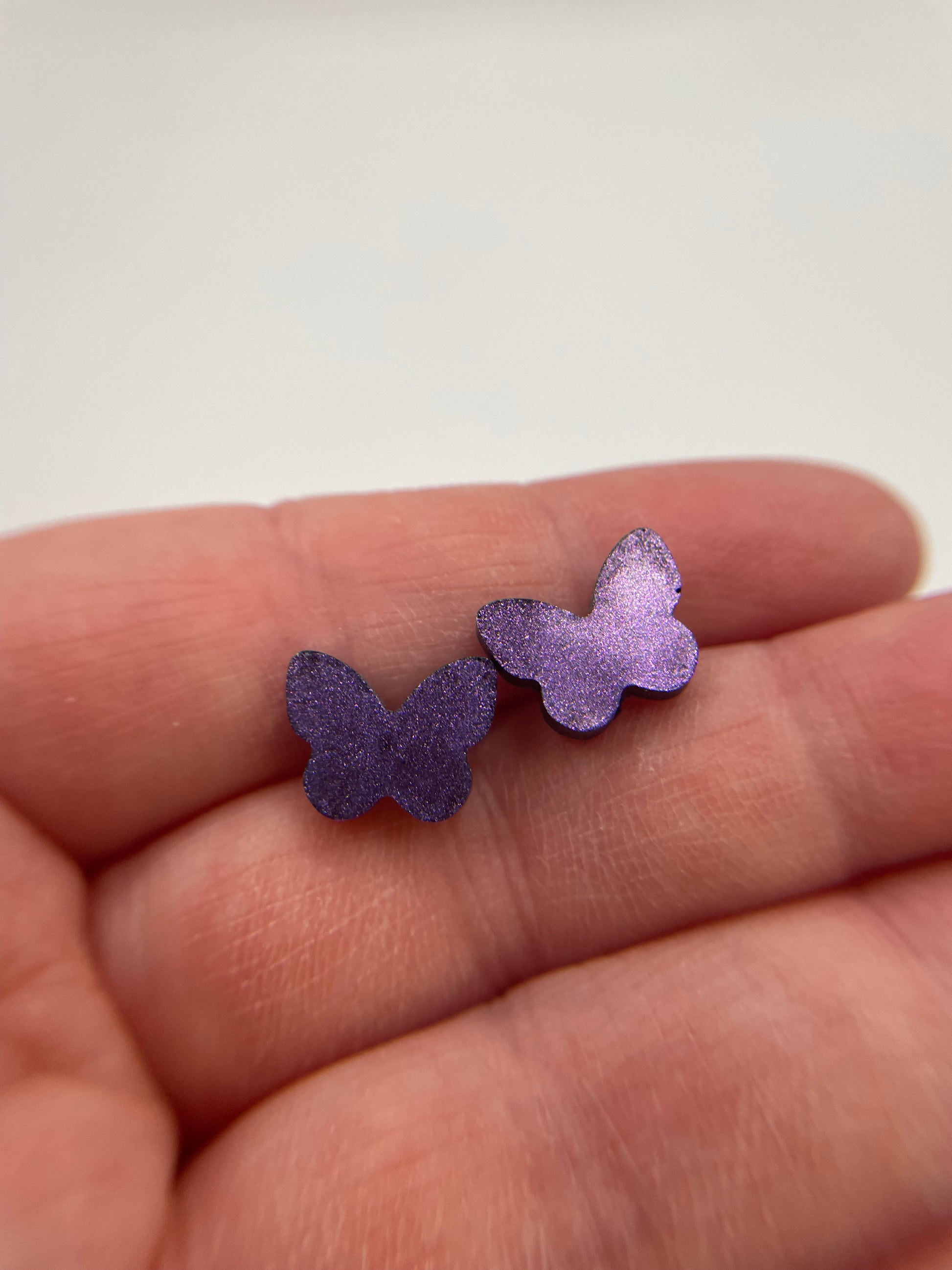 Delicate and charming, these butterfly stud earrings bring a soft shimmer to your everyday style. Handmade from resin with mica powder, they have a subtle finish that catches the light beautifully. Lightweight and comfortable, these nickel-free earrings are perfect for daily wear or as a thoughtful gift for someone who loves unique, handcrafted jewelry. Available in two lovely color options.