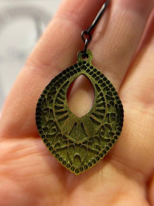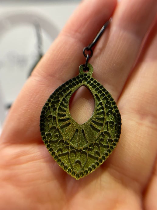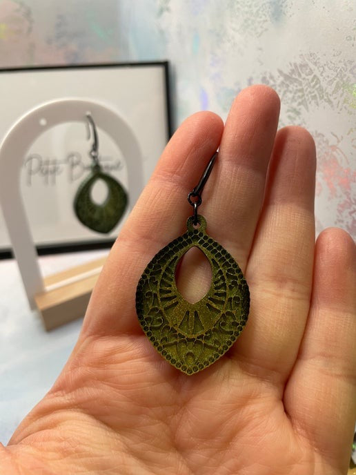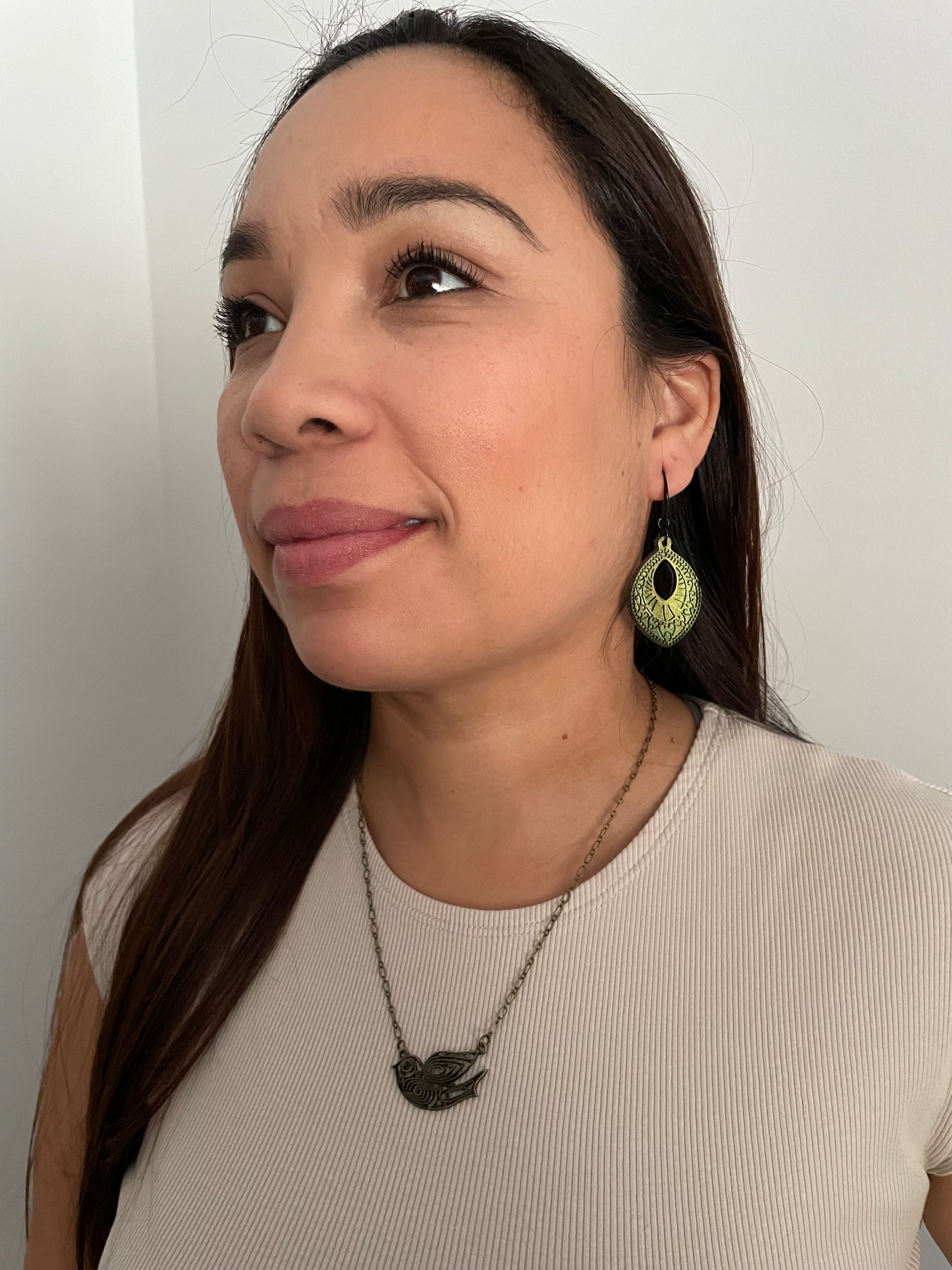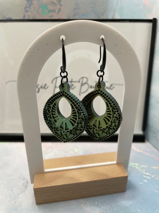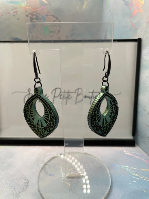 These earrings are perfect for those who love bold accessories with a hint of sophistication. Ideal for both casual and formal occasions, the chameleon green hues and intricate design will make these earrings a standout addition to your collection.