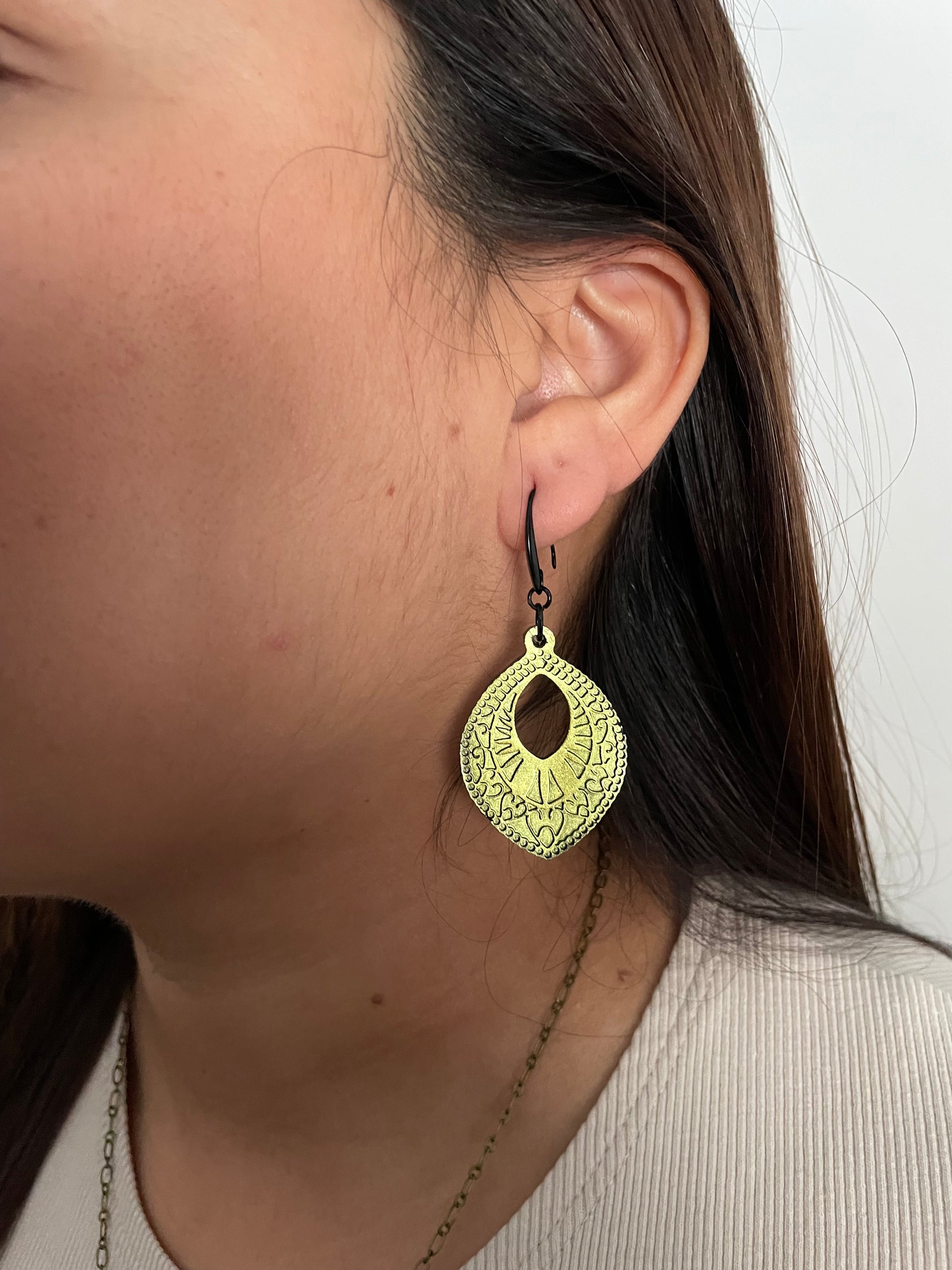 - Earring Dimensions: 3.9 cm (length) x 2.8 cm (width), with a unique and detailed pointy oval shape.