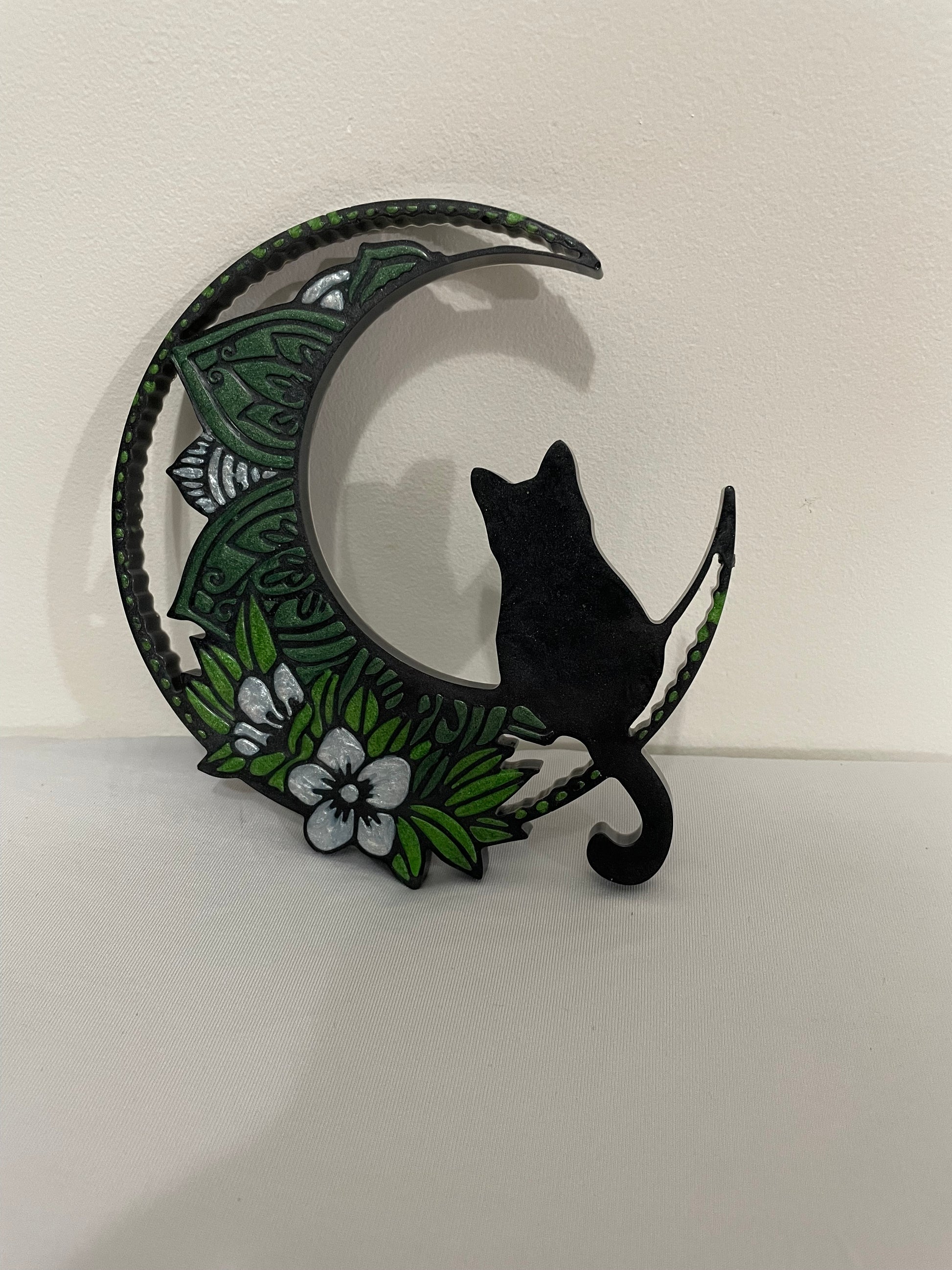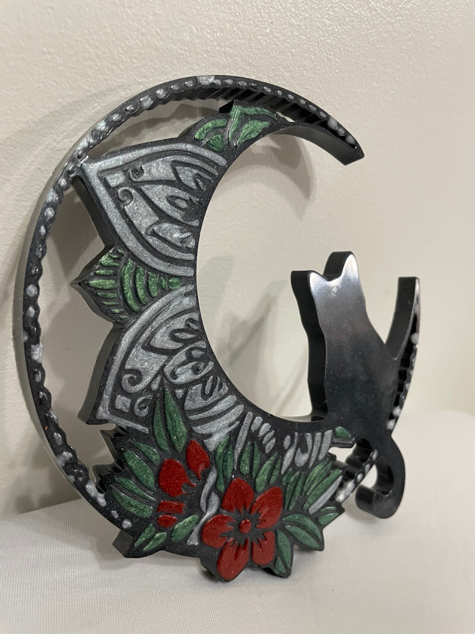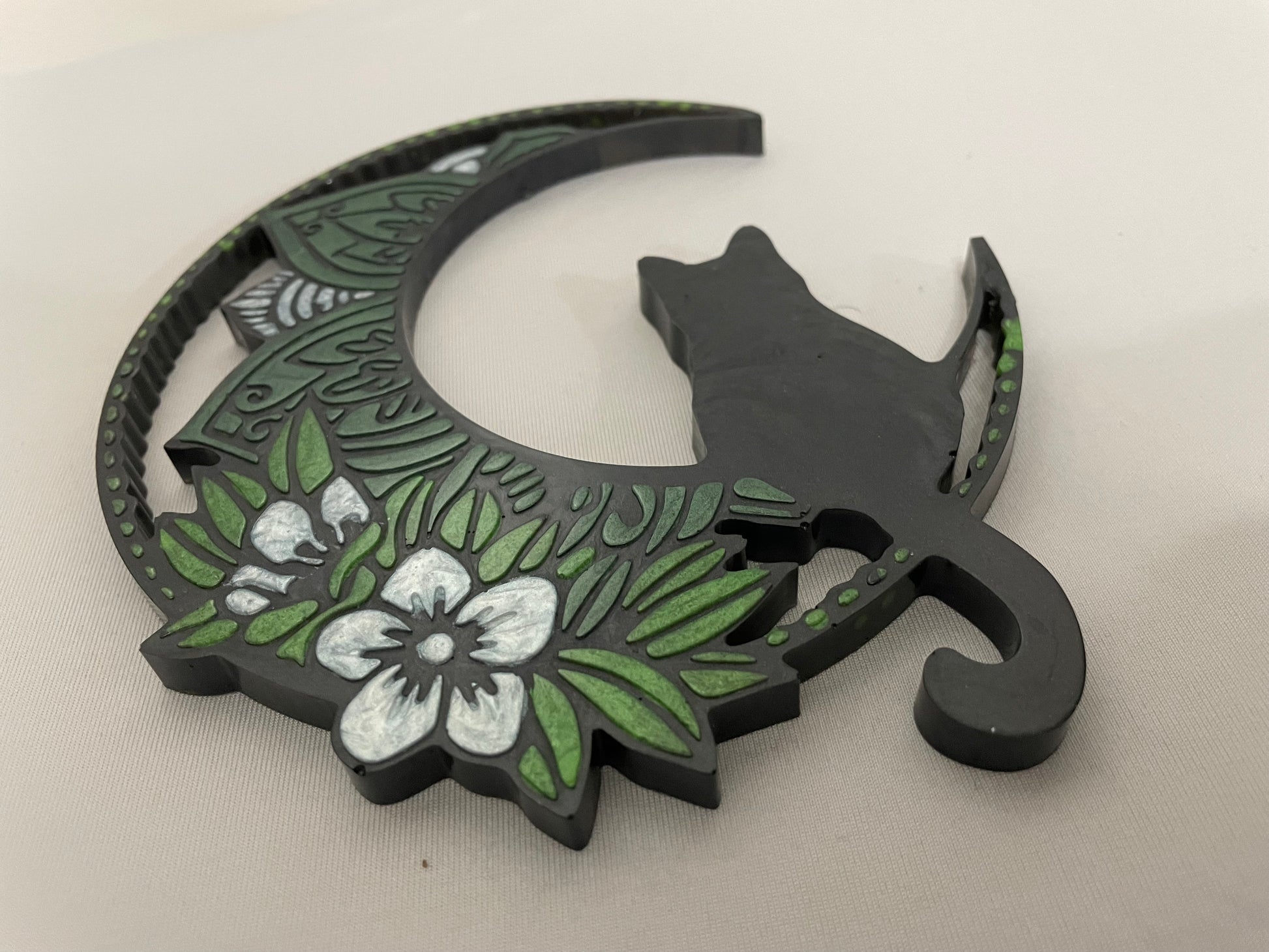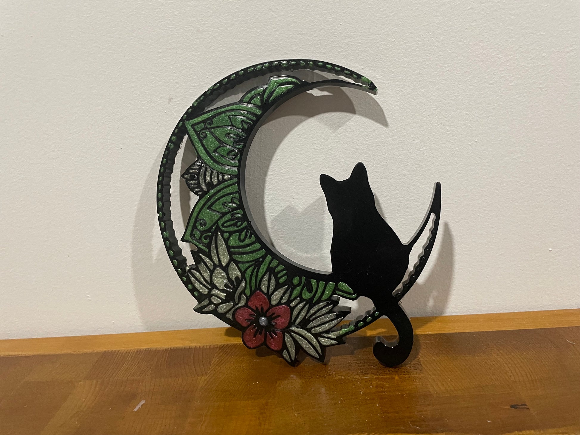 Let your walls reflect your love for the moon, flowers, and feline grace with this one-of-a-kind decoration.