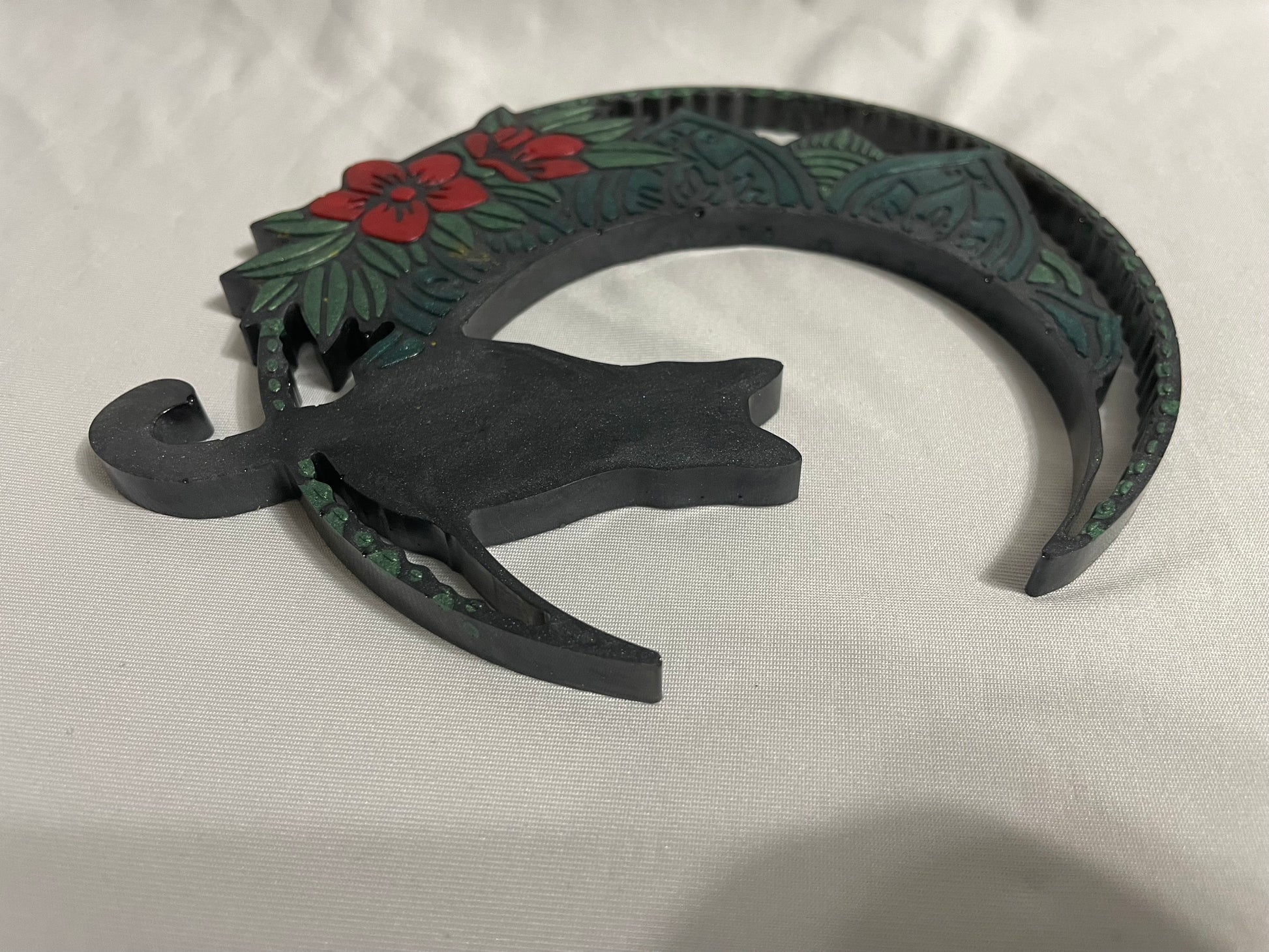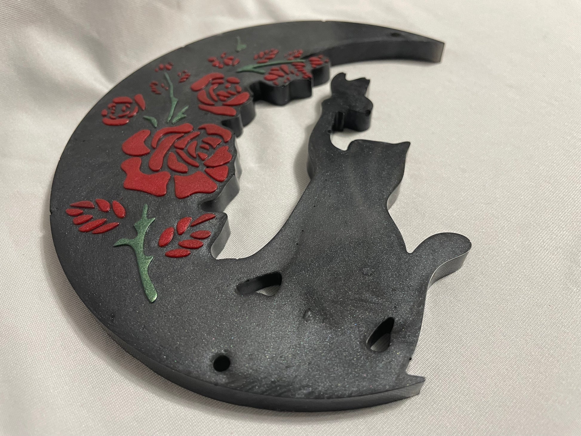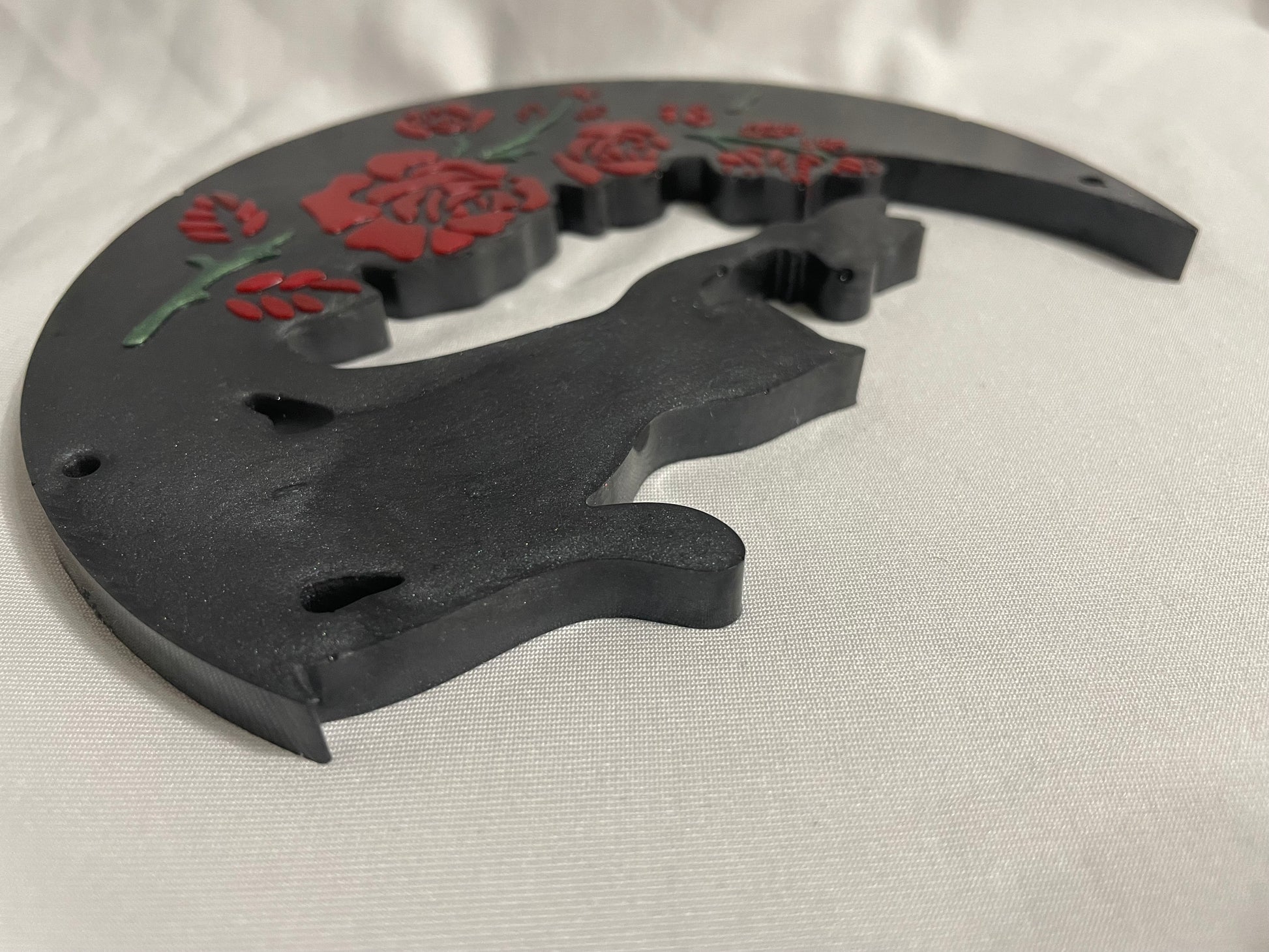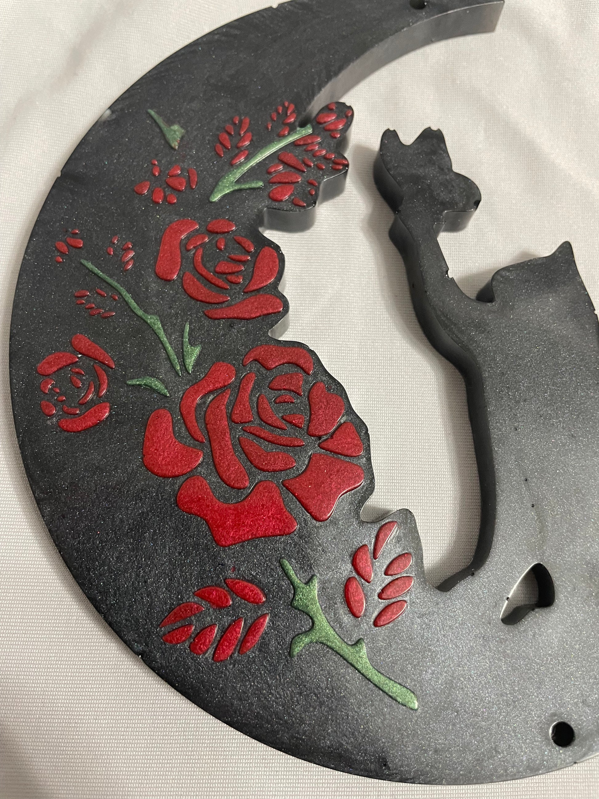 Let your walls reflect your love for the moon, flowers, and feline grace with this one-of-a-kind decoration.
